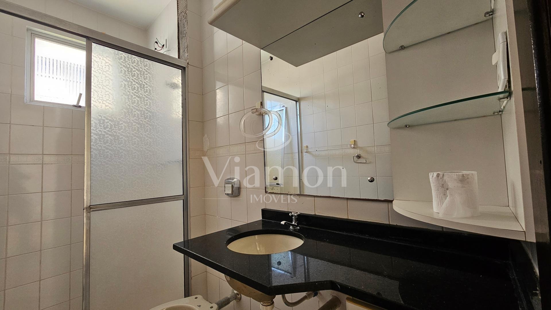 Banheiro social com ventilação natural, garantindo conforto e higiene.