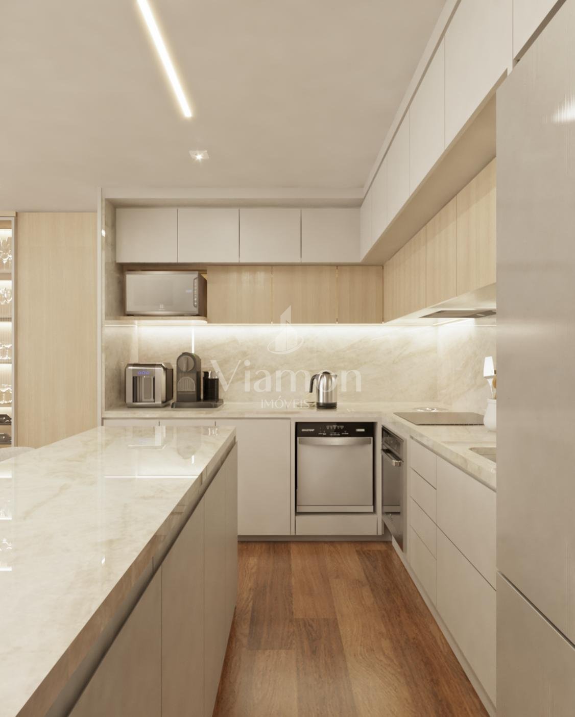 Cozinha com ilha e acabamentos premium