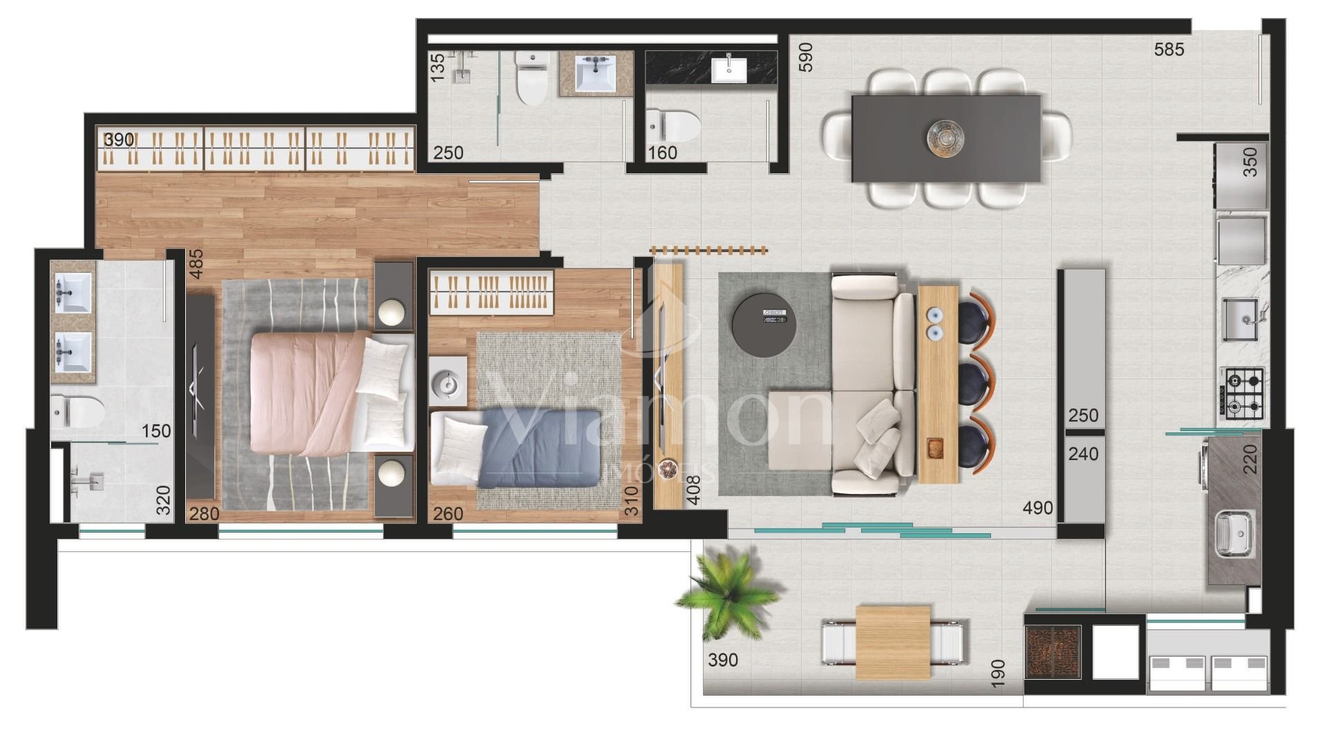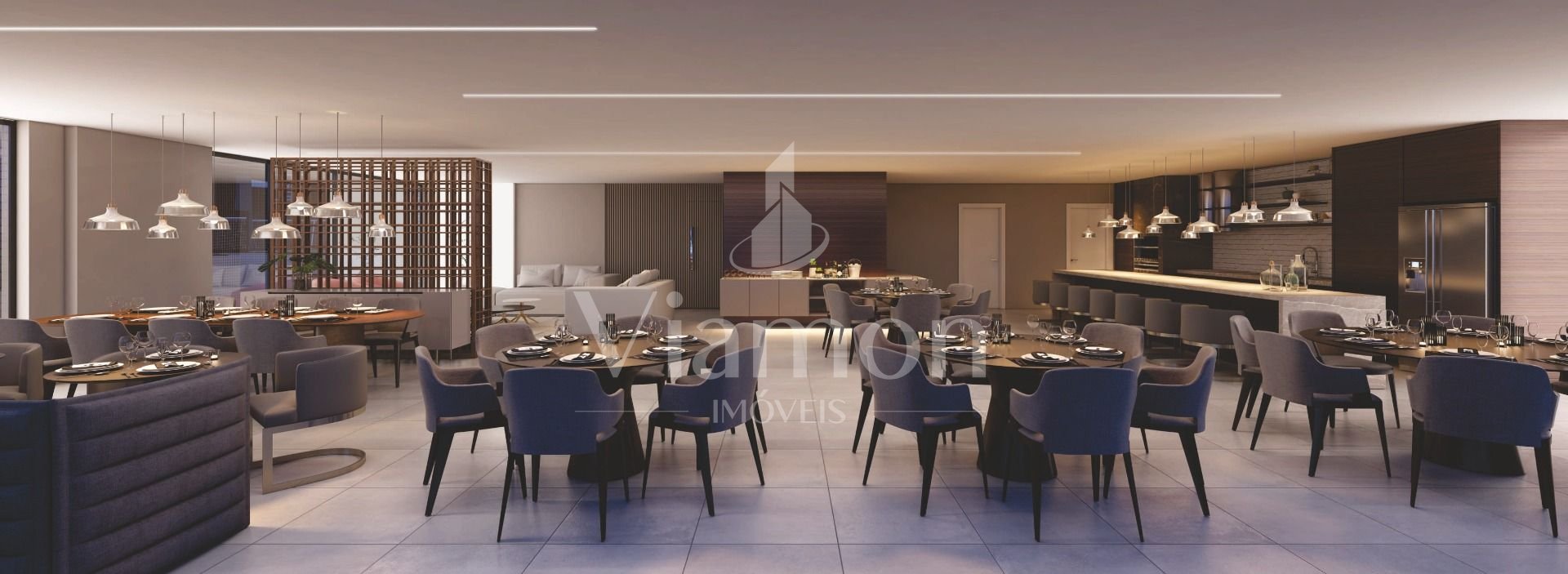 Salão de festas, espaço gourmet com churrasqueira, espaço fitness, brinquedoteca, salão de jogos, lounge, piscina coberta, playground, quadra poliesportiva e piscinas adulto e infantil ao ar livre.