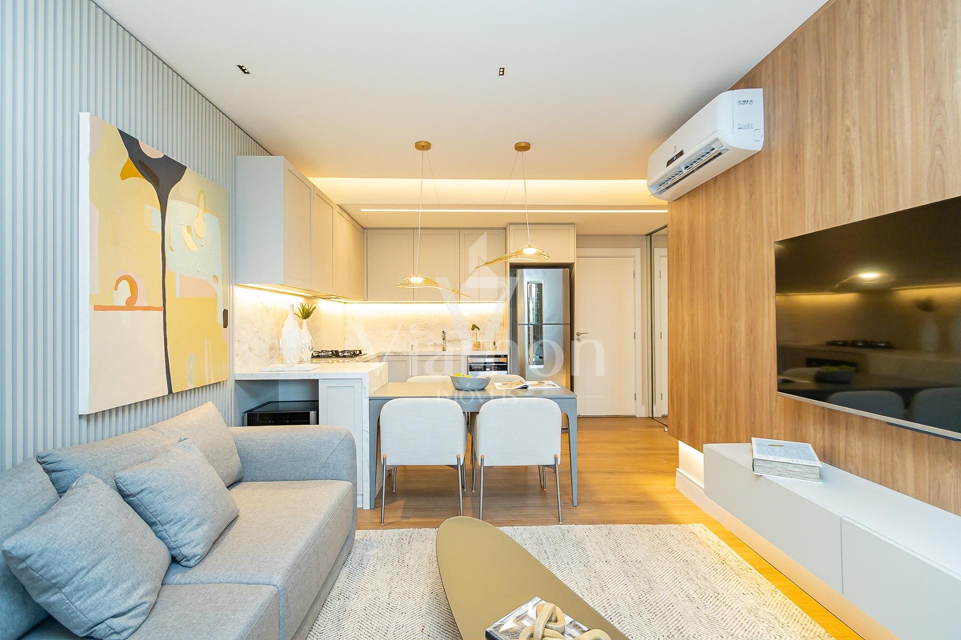 * Ambiente integrado, proporcionando um espaço abrangente e acolhedor