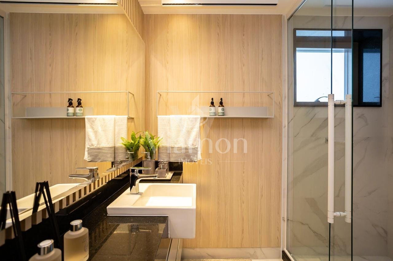 * Banheiros com cubas de semi-encaixe e metais monocomando e piso aquecido