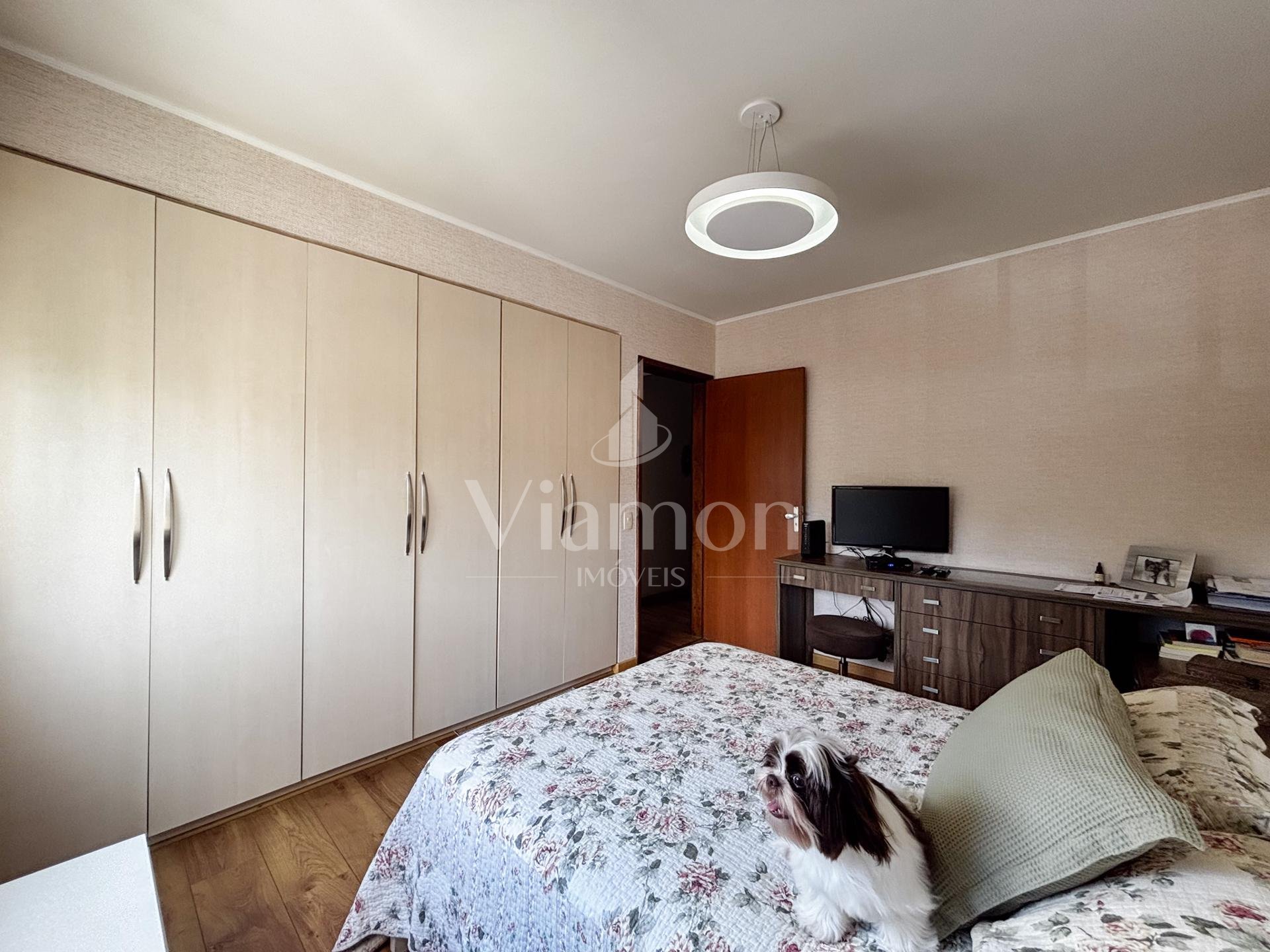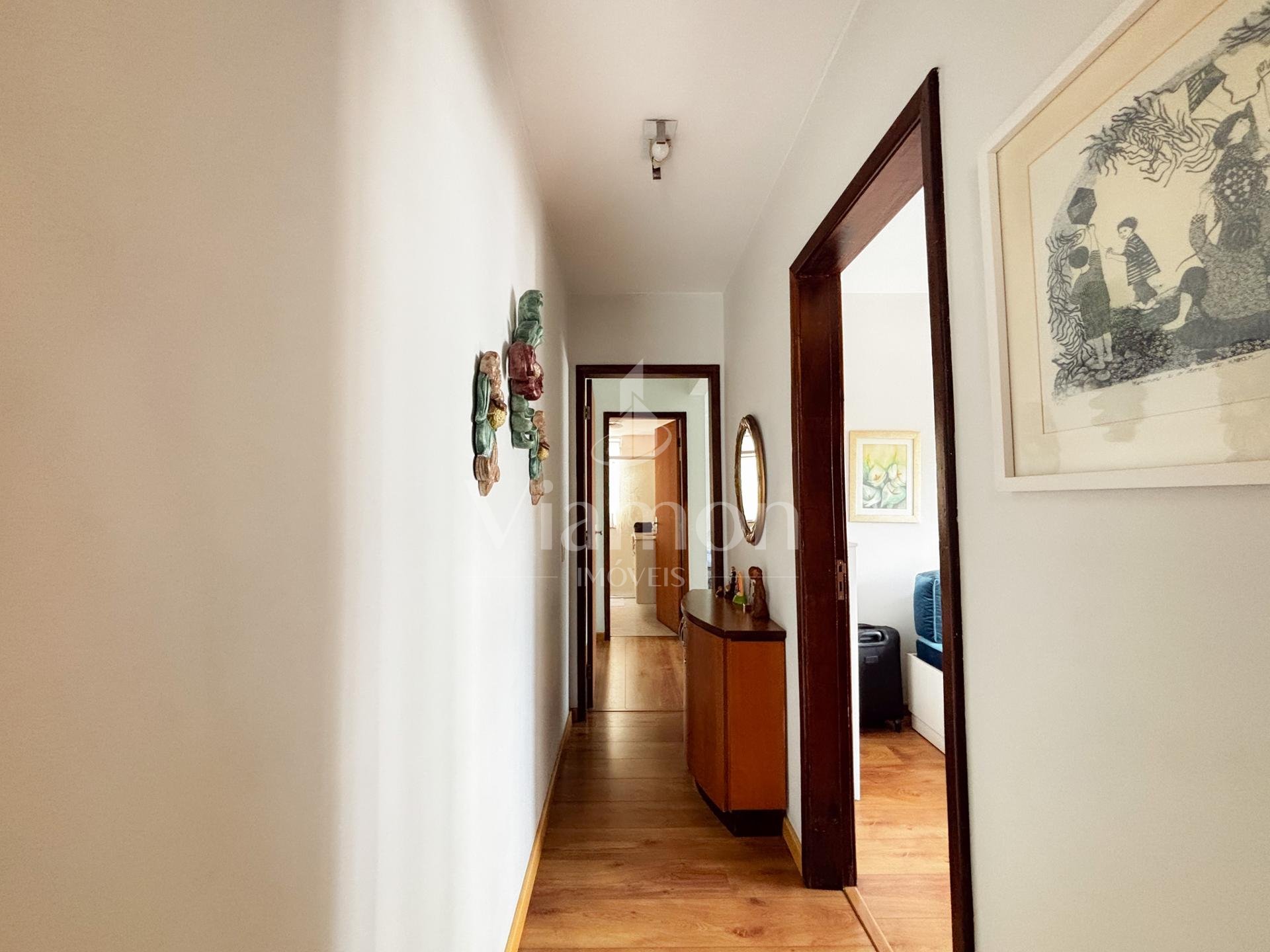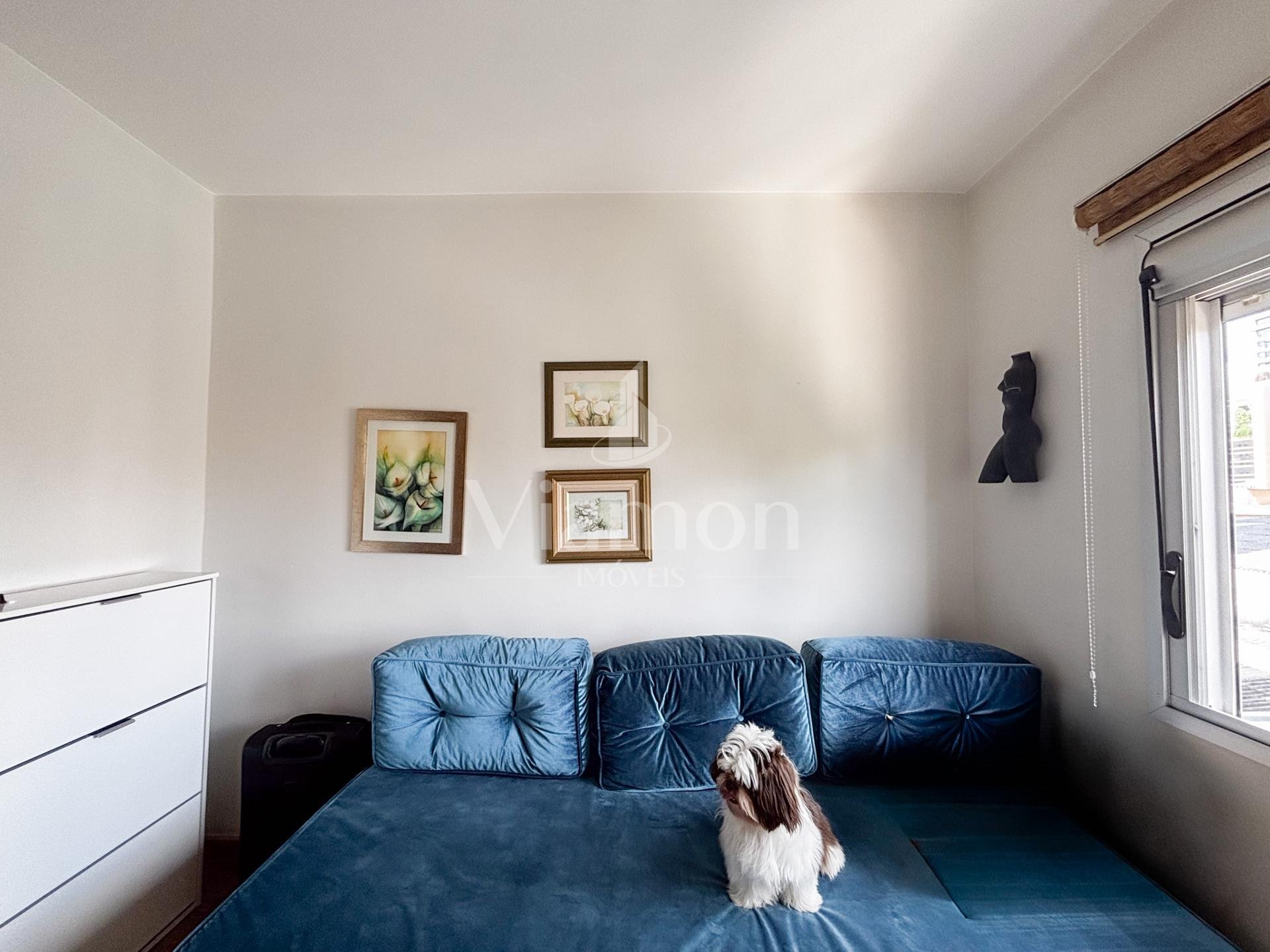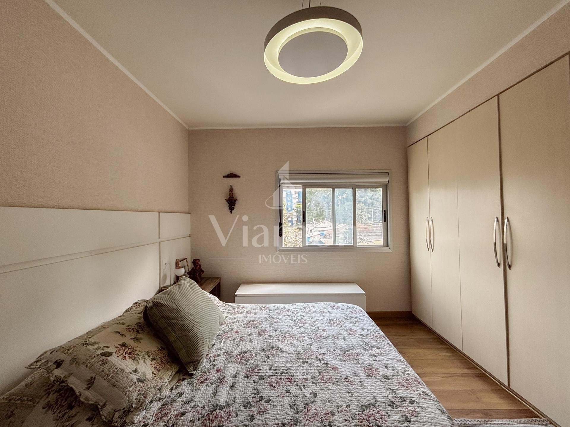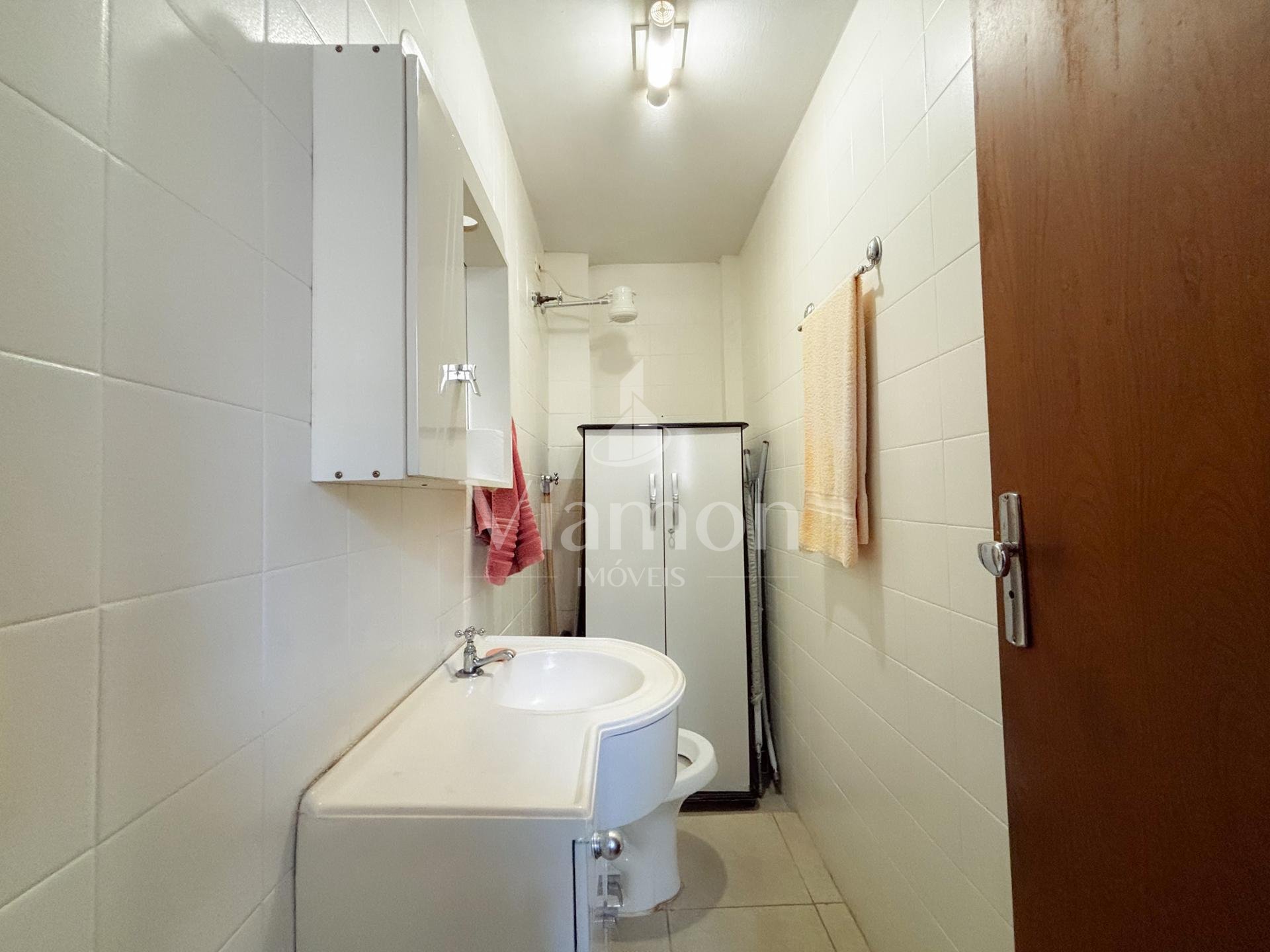 Na área íntima, são 3 dormitórios, sendo 1 suíte. Dois quartos contam com armários embutidos, e o banheiro da suíte dispõe de armário e box.