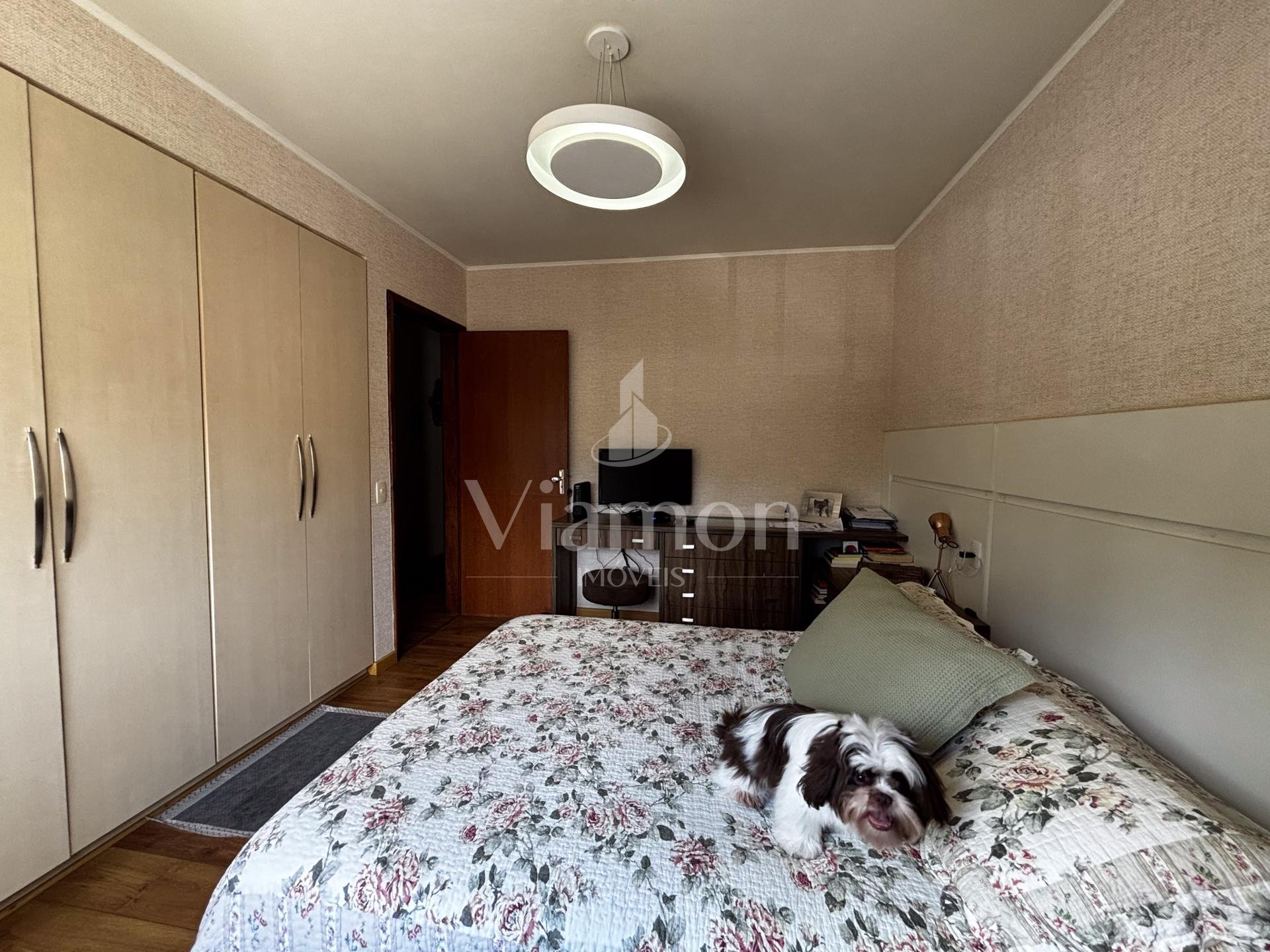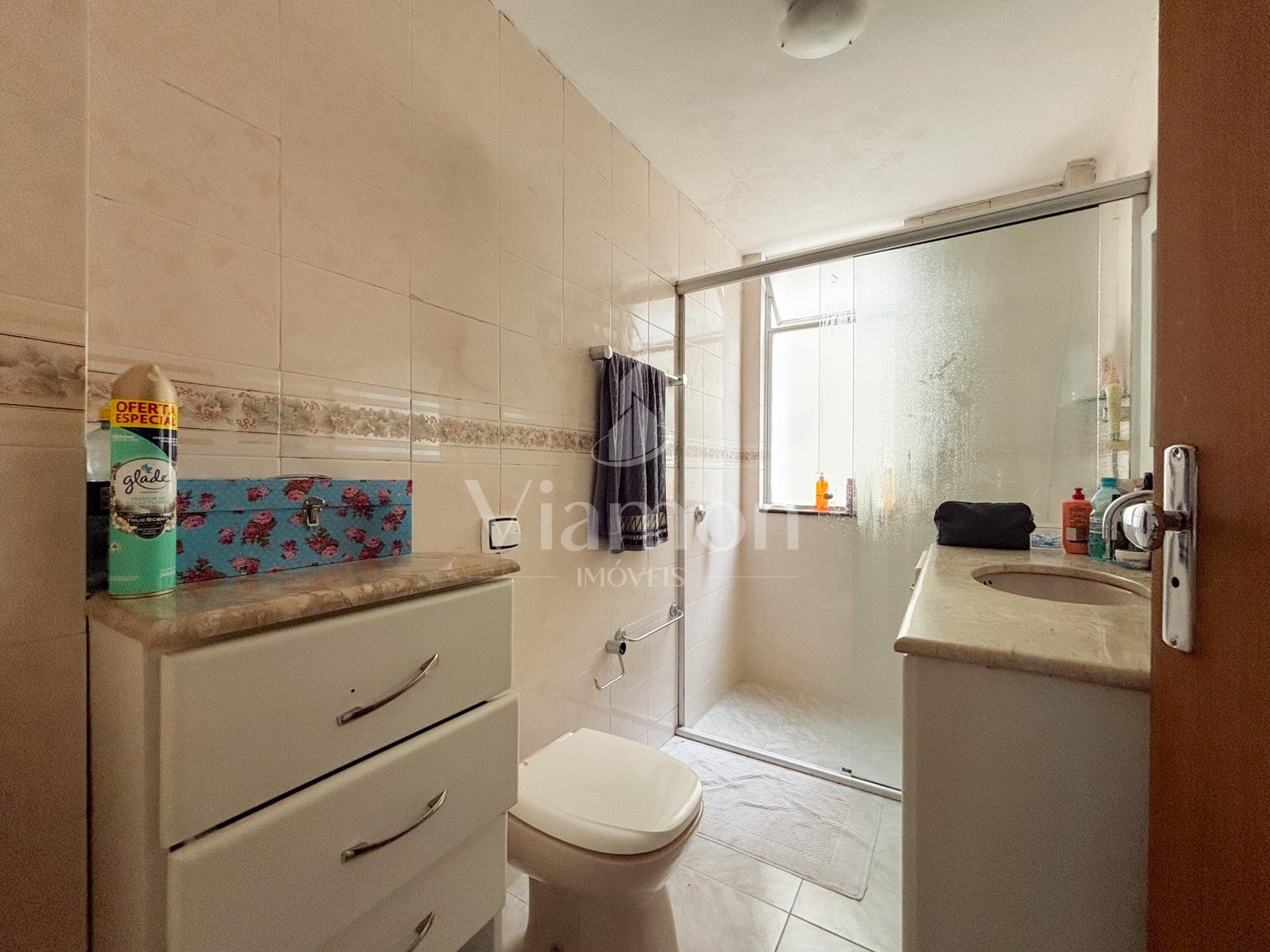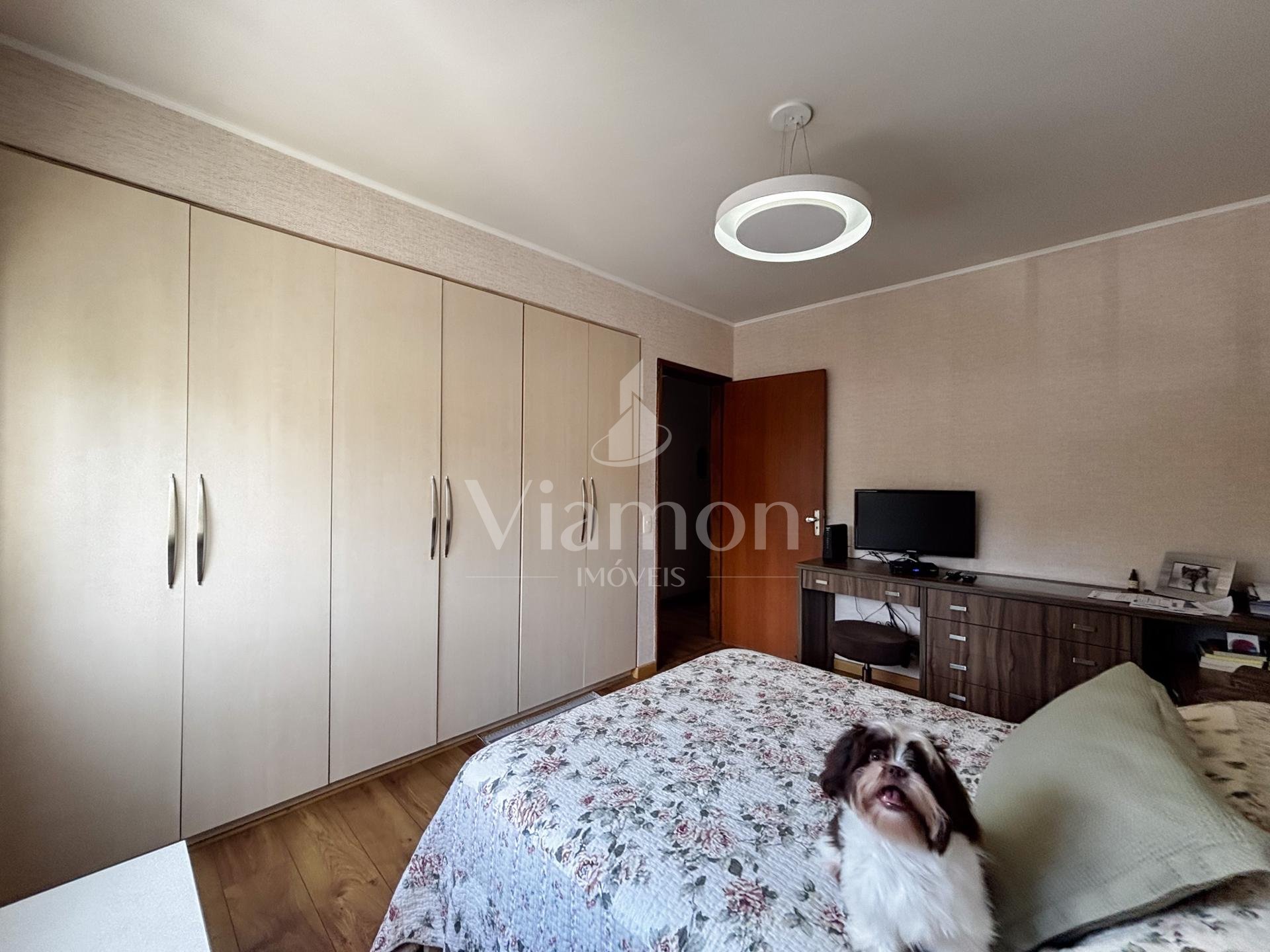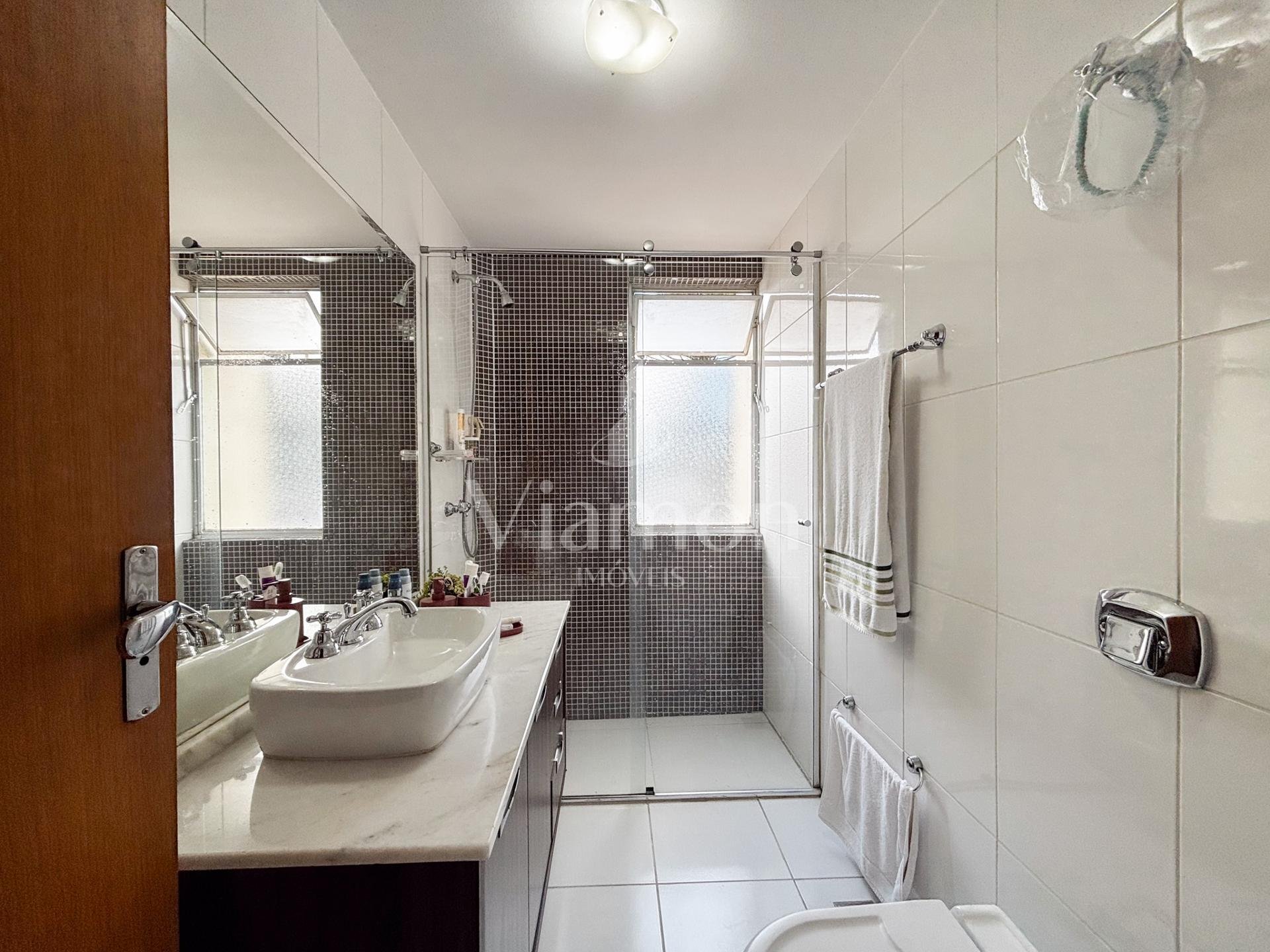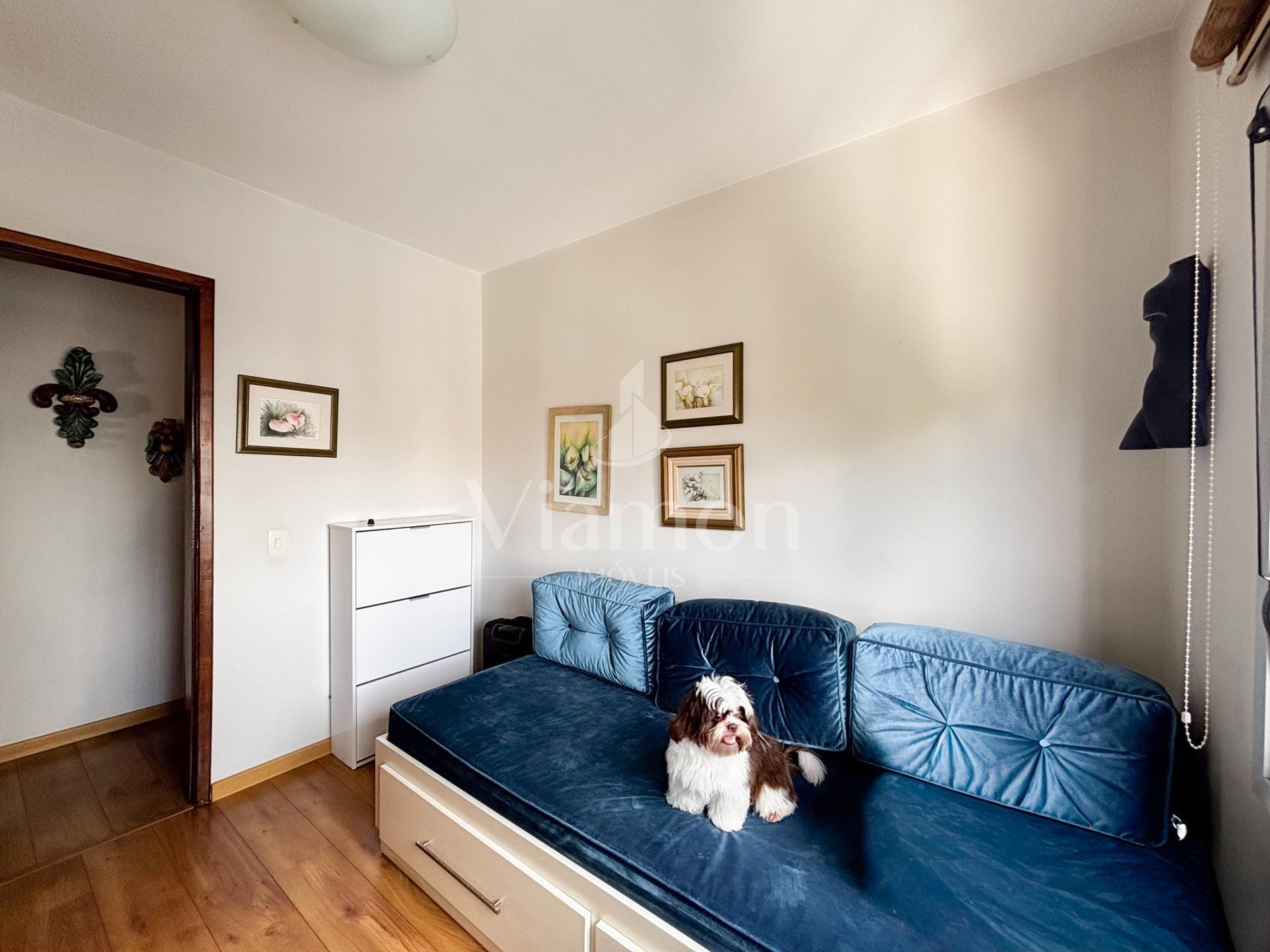 Na área íntima, são 3 dormitórios, sendo 1 suíte. Dois quartos contam com armários embutidos, e o banheiro da suíte dispõe de armário e box.