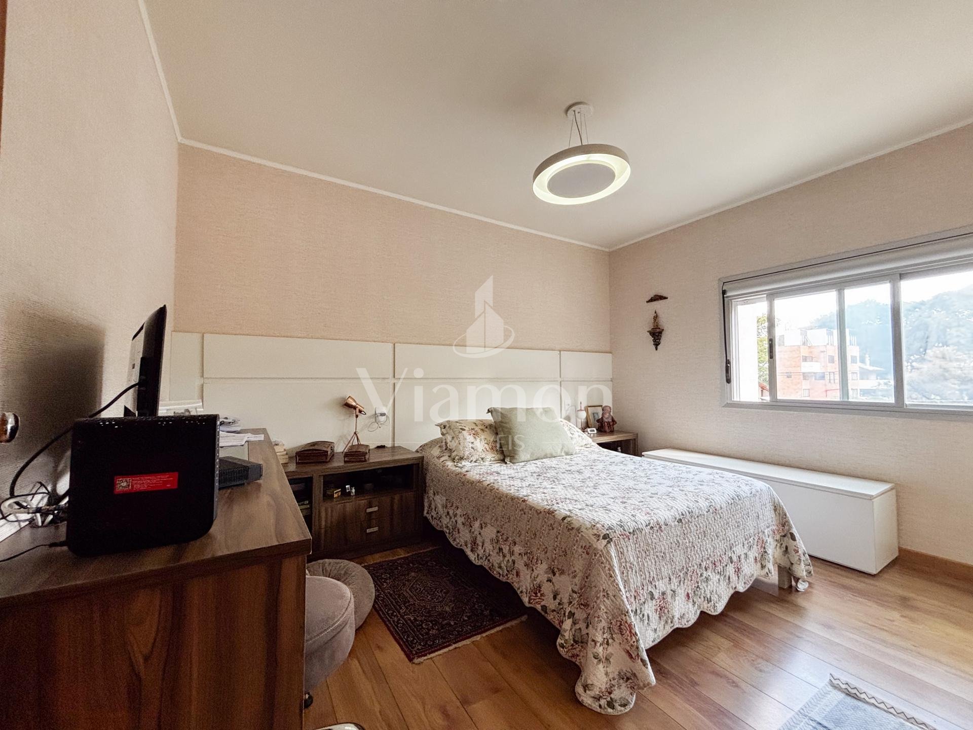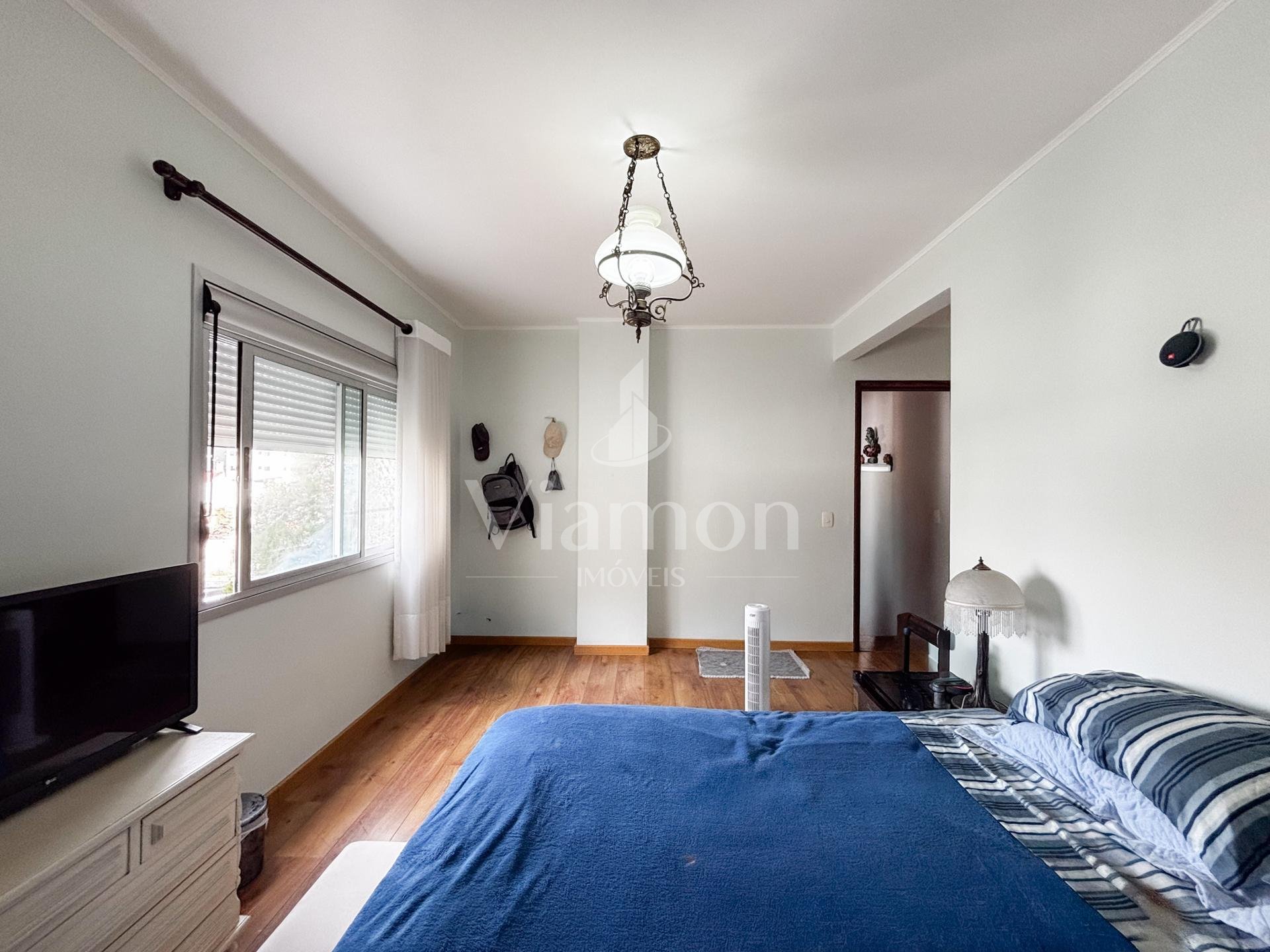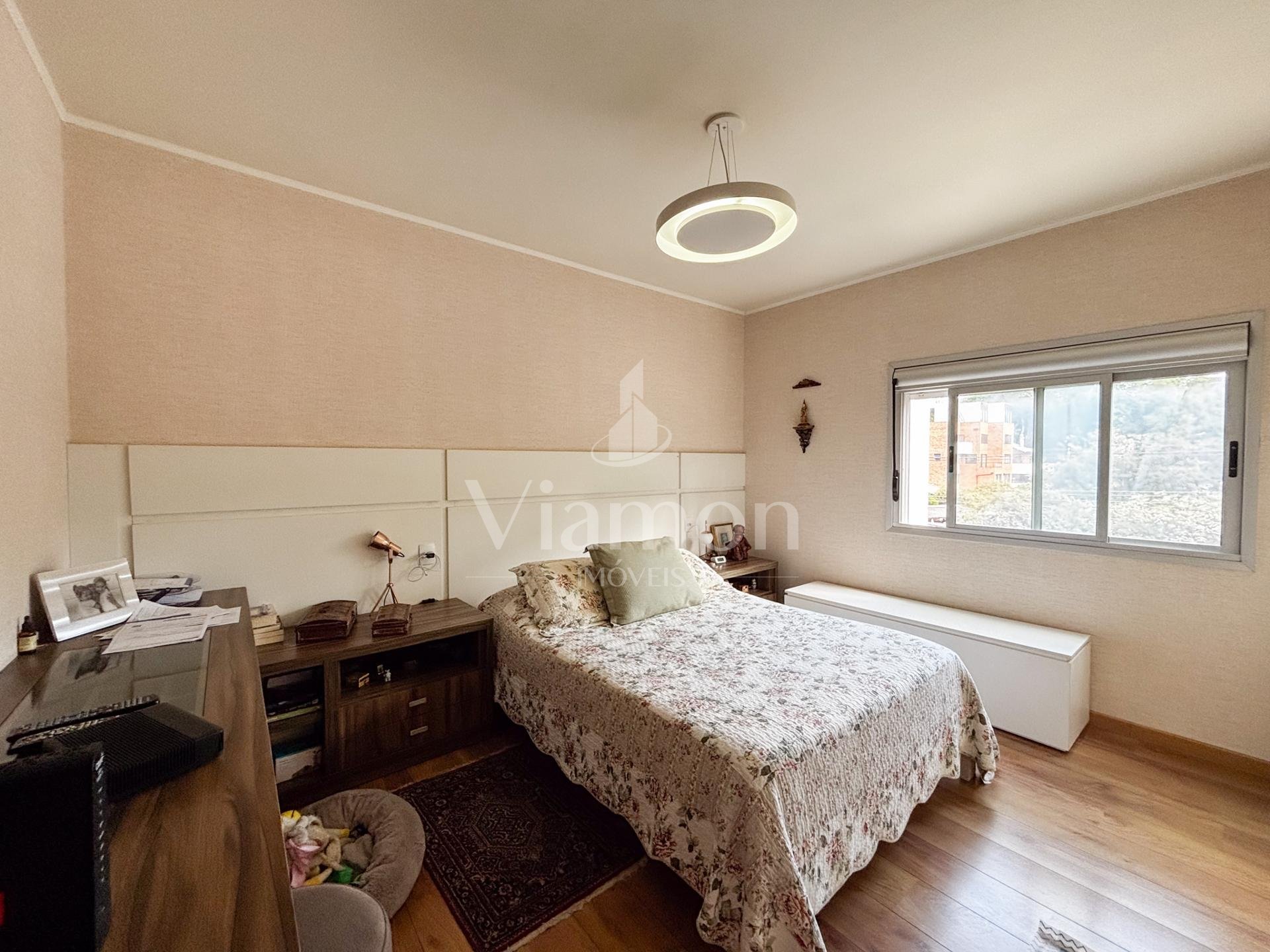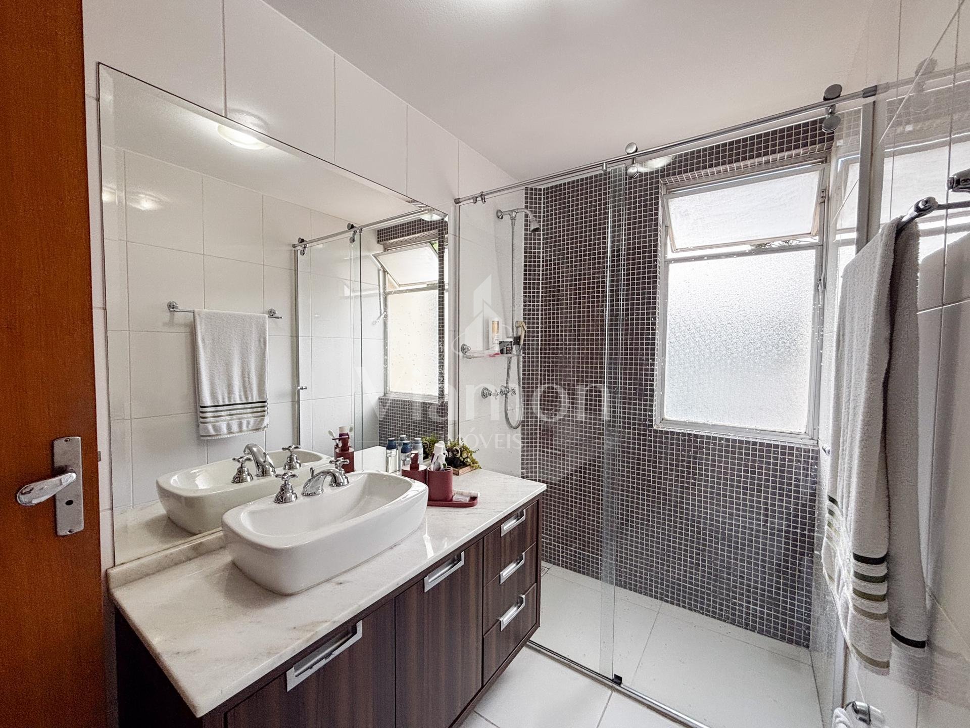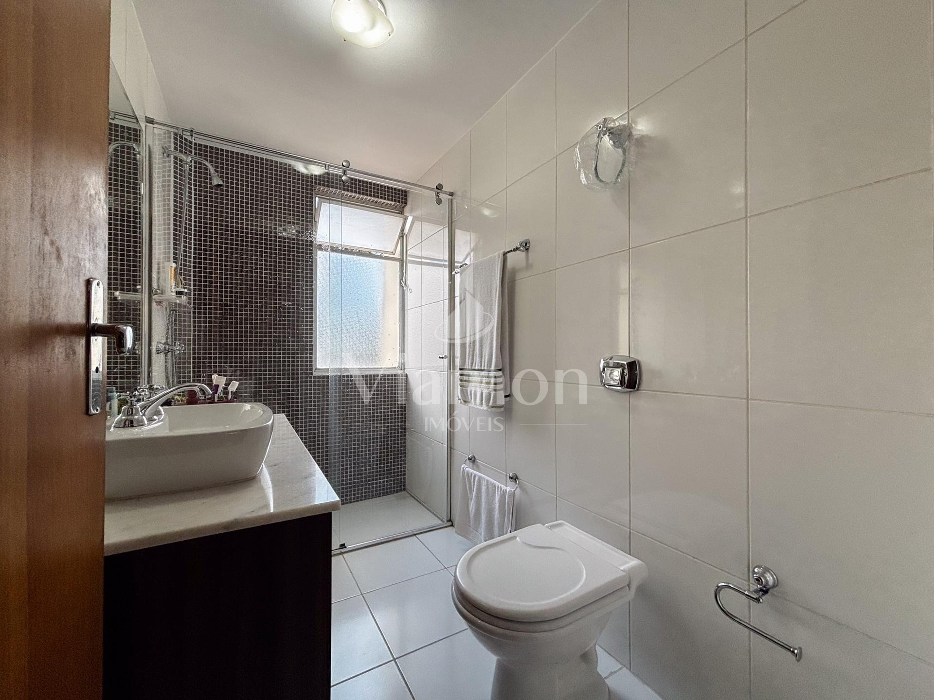 Na área íntima, são 3 dormitórios, sendo 1 suíte. Dois quartos contam com armários embutidos, e o banheiro da suíte dispõe de armário e box.