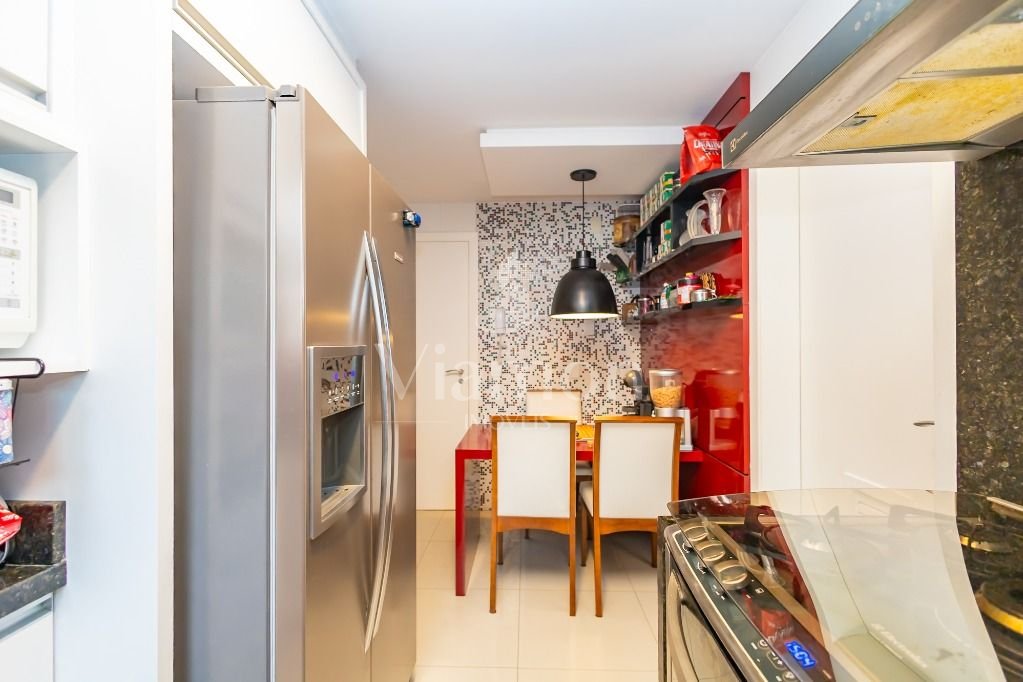 Este apartamento possui quatro quartos, sendo 2 suites, sacada com churrasqueira a carvão integrada com a sala, lareira, cozinha, área de serviço. Ar condicionados instalados nos quartos e na sala para maior conforto. 3 vagas de garagem.