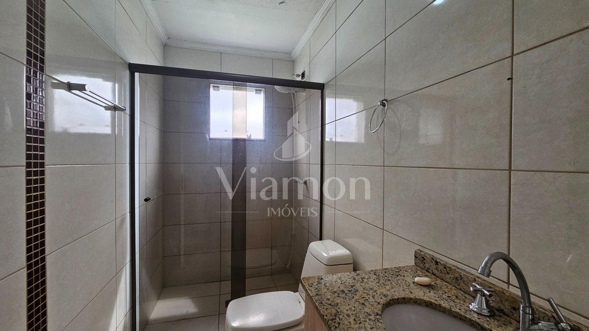 Banheiro social: com armário e acabamento funcional, garantindo conforto e praticidade.