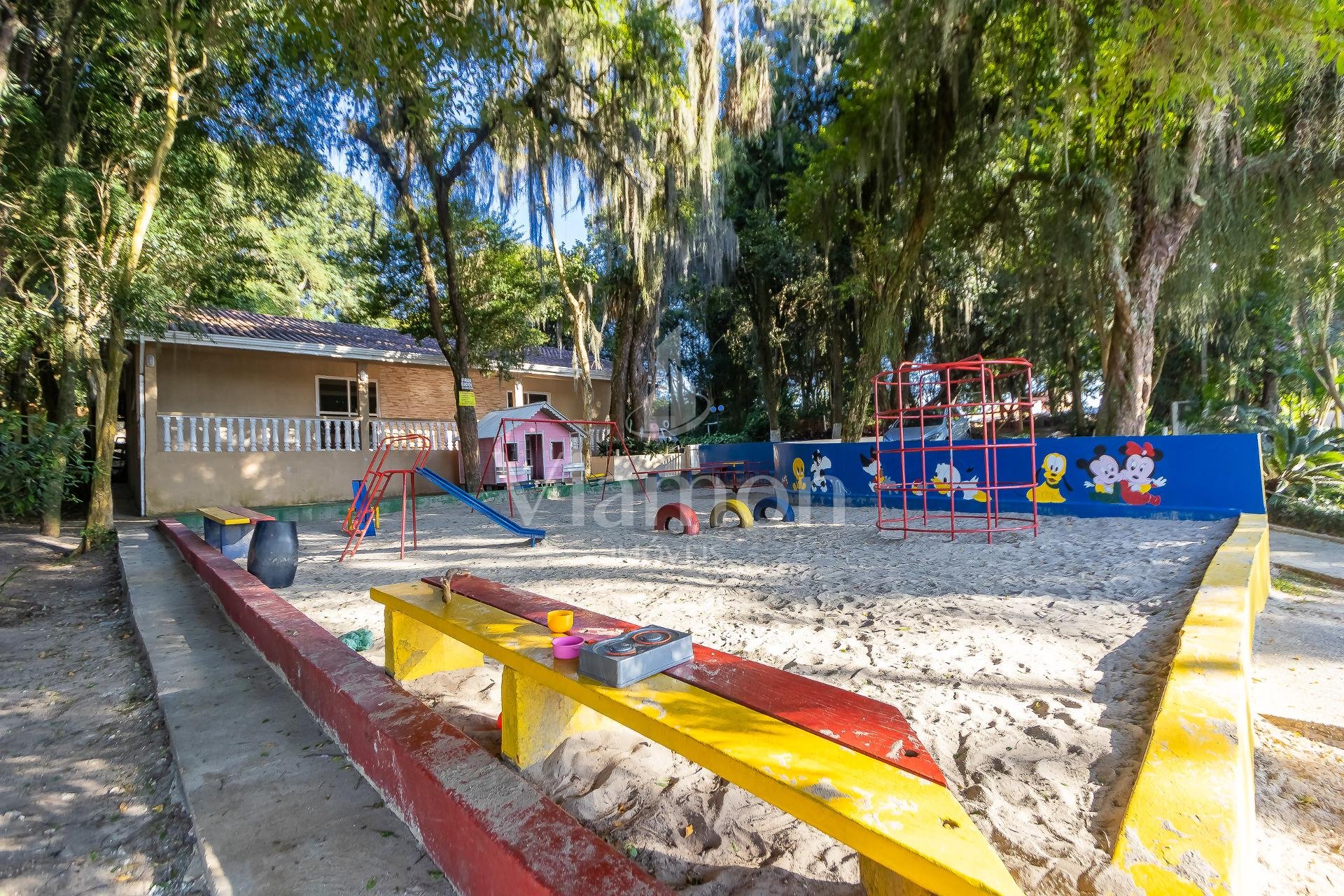 Bosque com quiosques, salão de festas, poço artesiano.