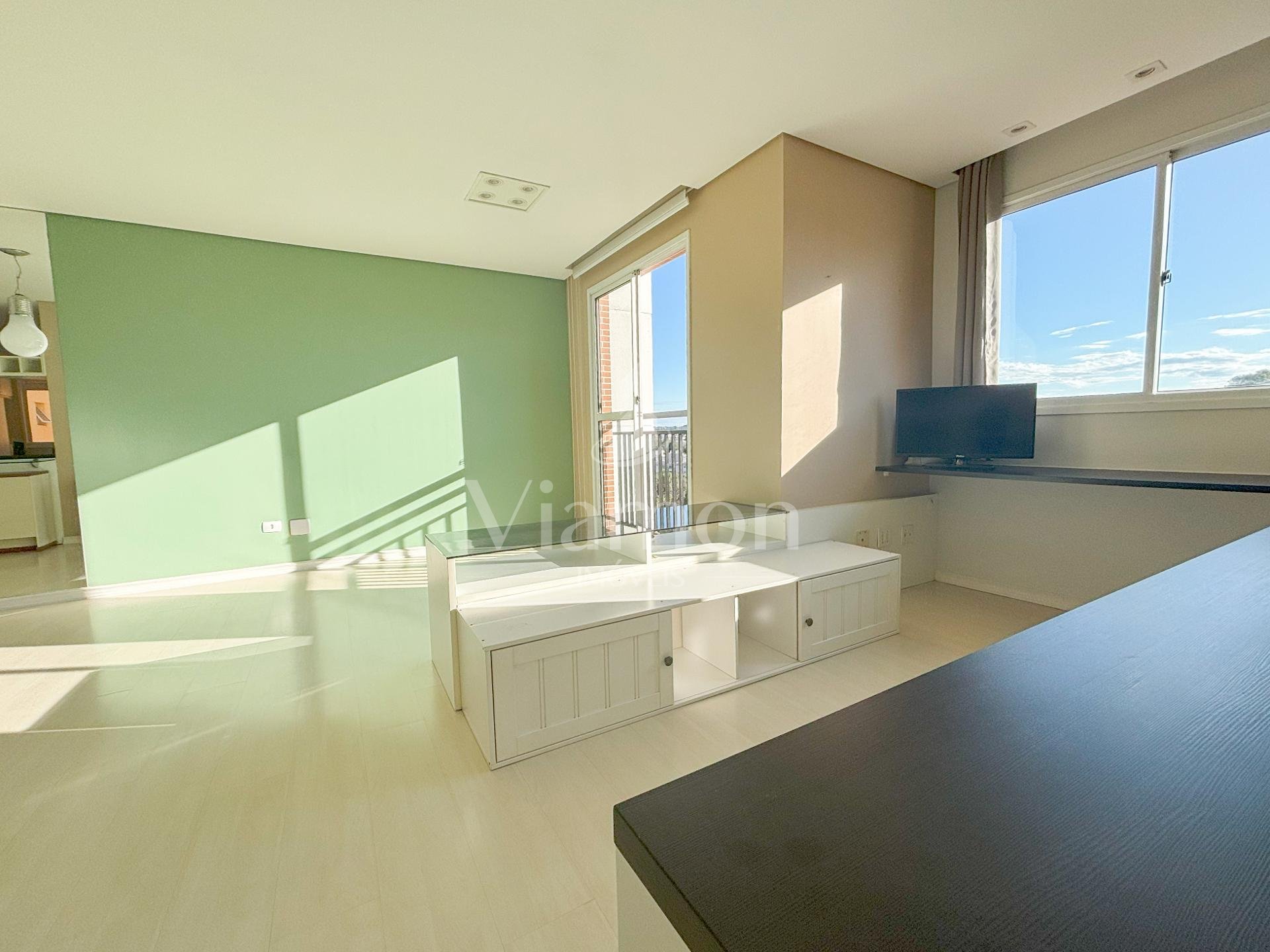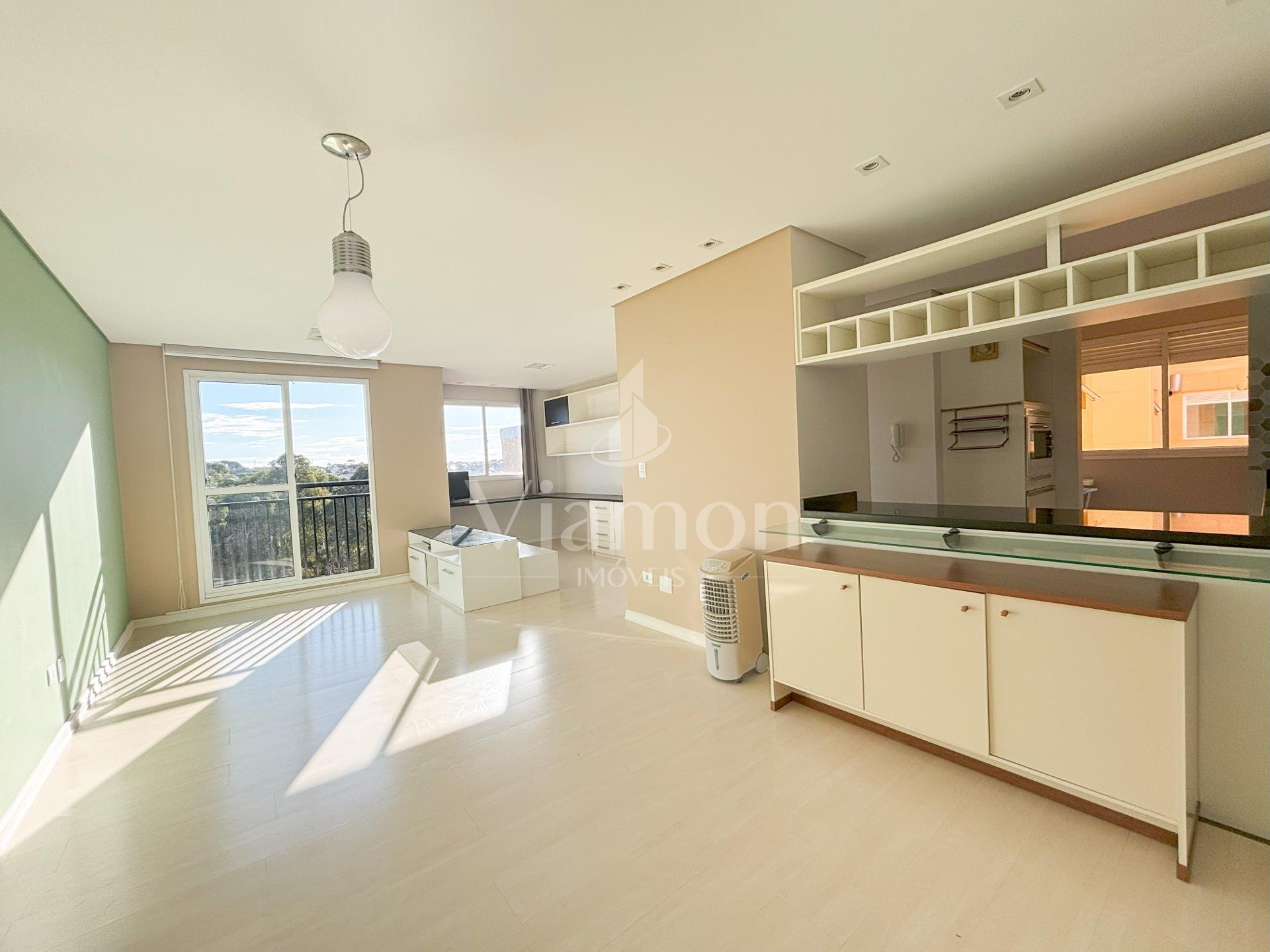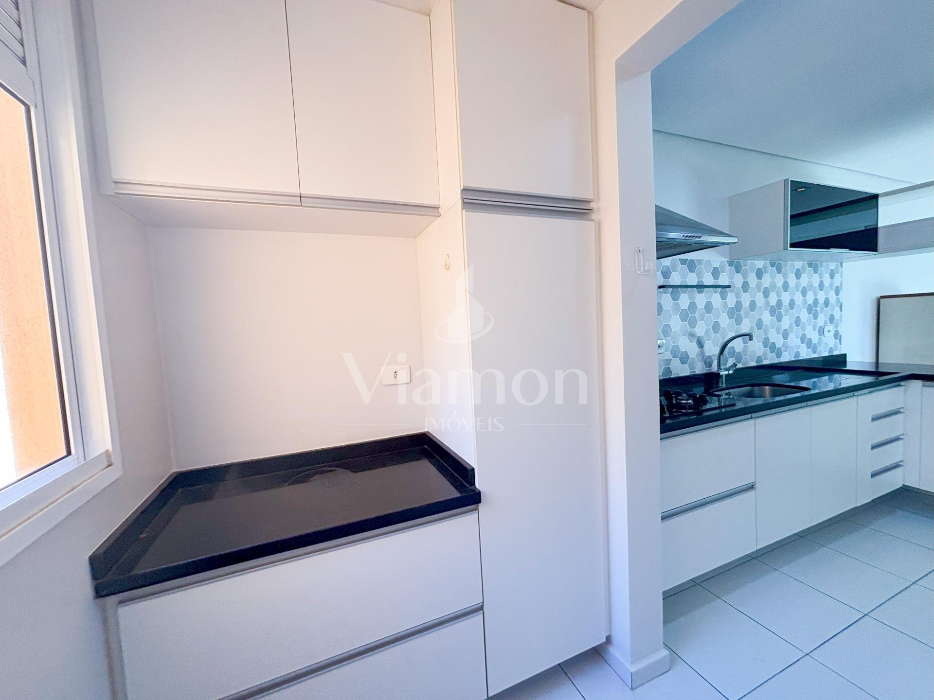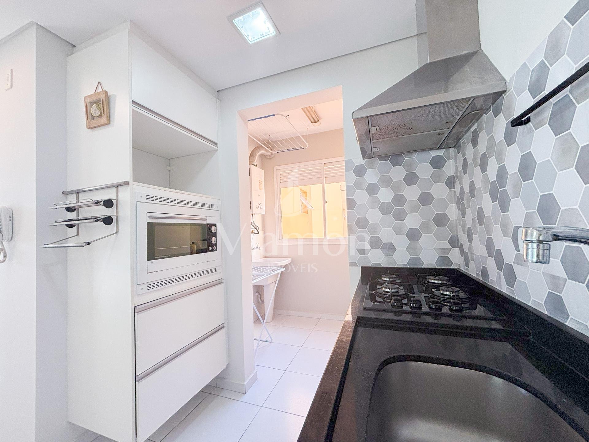 Com móveis planejados na cozinha e dormitórios, cooktop, forno e coifa, o imóvel está pronto para morar. A vaga de garagem e o ambiente semi-mobiliado completam a praticidade.