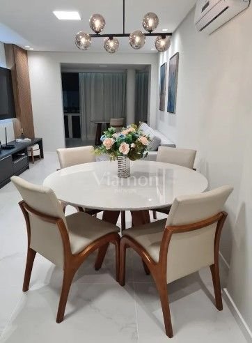 Sala de estar e jantar integradas à cozinha, proporcionando amplitude e fluidez entre os ambientes