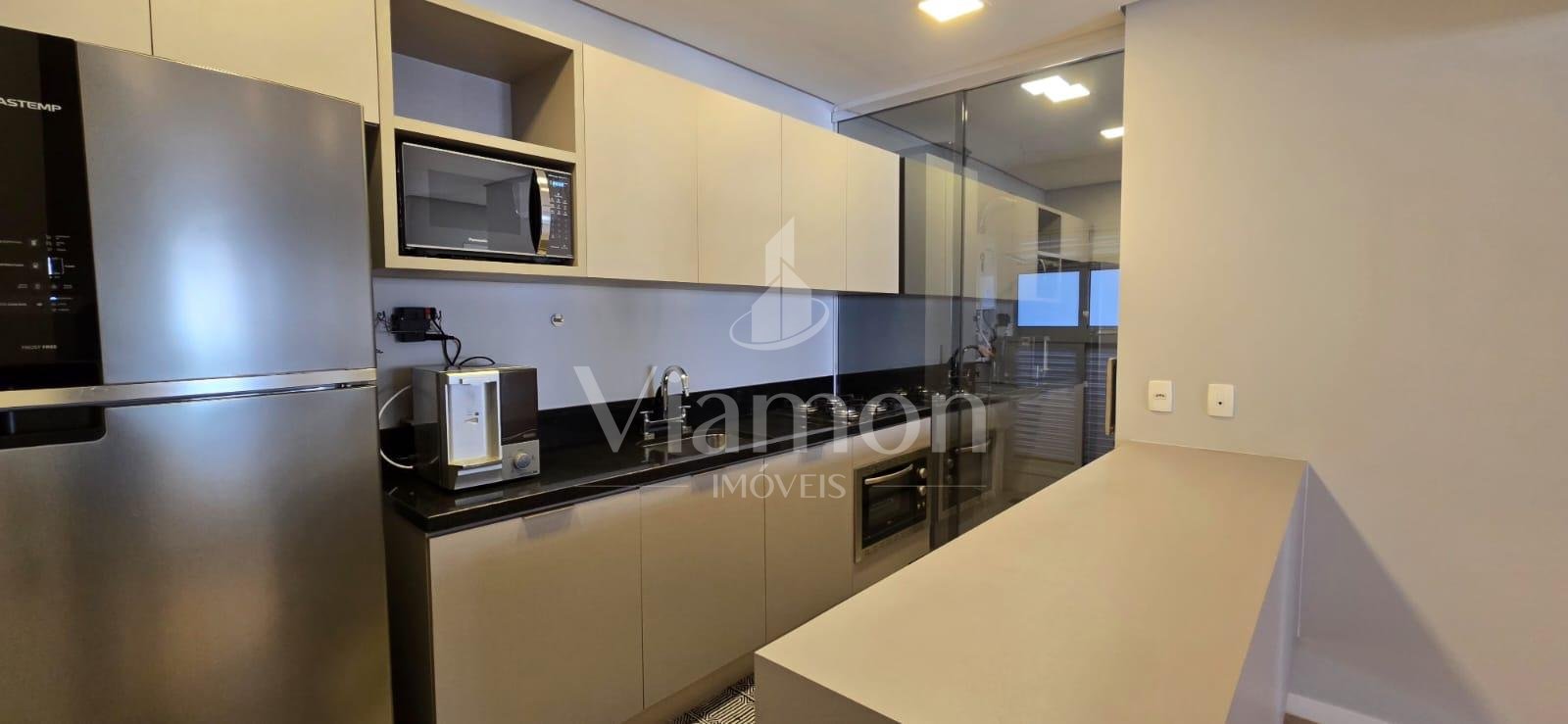 Cozinha equipada com cooktop e forno embutido, perfeita para preparar suas receitas favoritas.