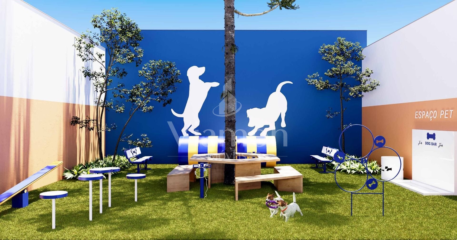 Lounge interno e externo, Gourmet externo, Hall Mercado para socialização e encontros