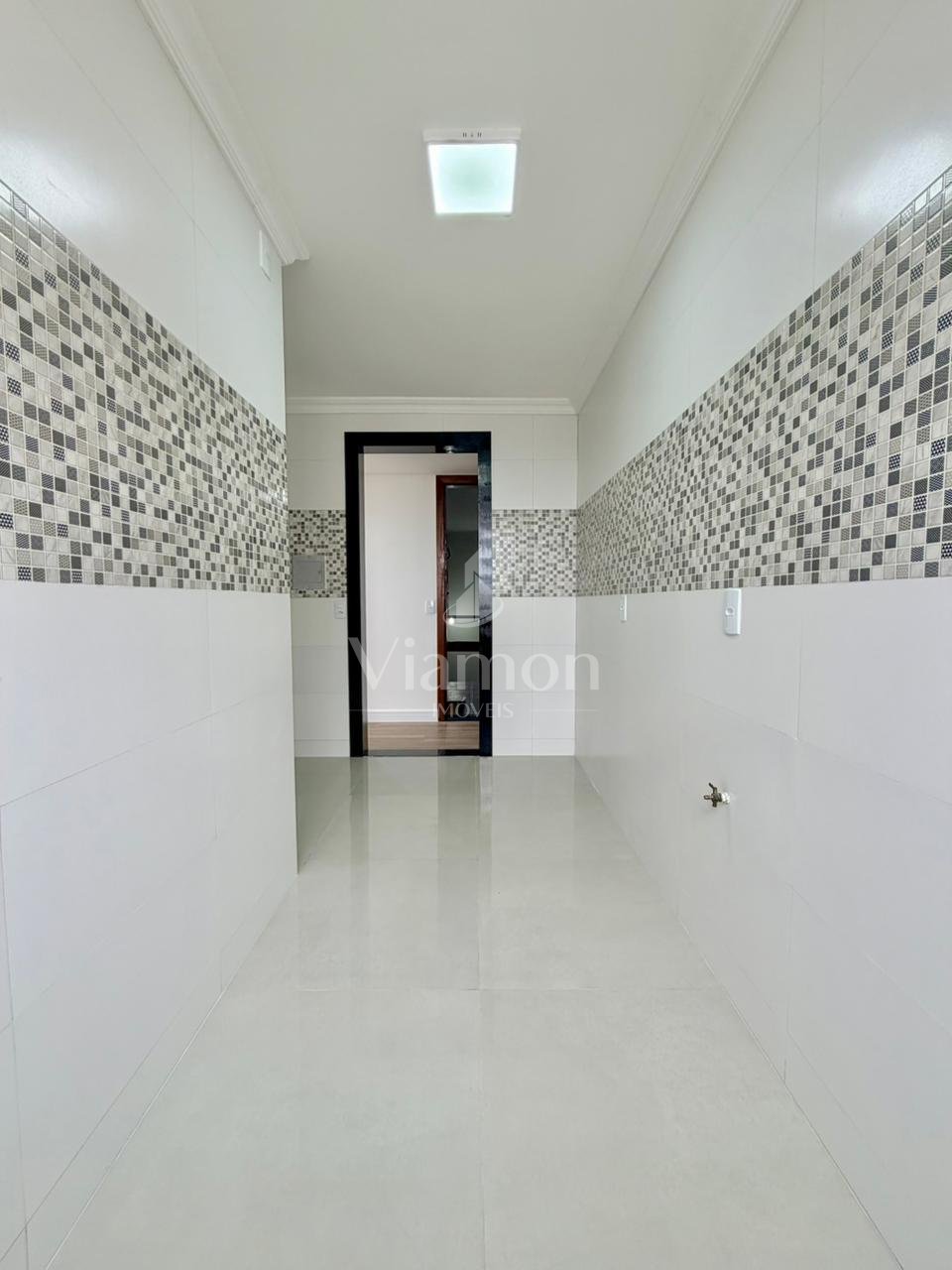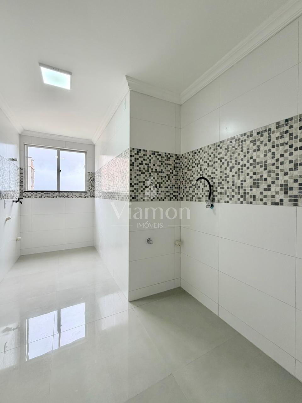 A cozinha é integrada à área de lavanderia, oferecendo praticidade no dia a dia e um bom aproveitamento do espaço. O ambiente é funcional e bem ventilado, facilitando as atividades domésticas.