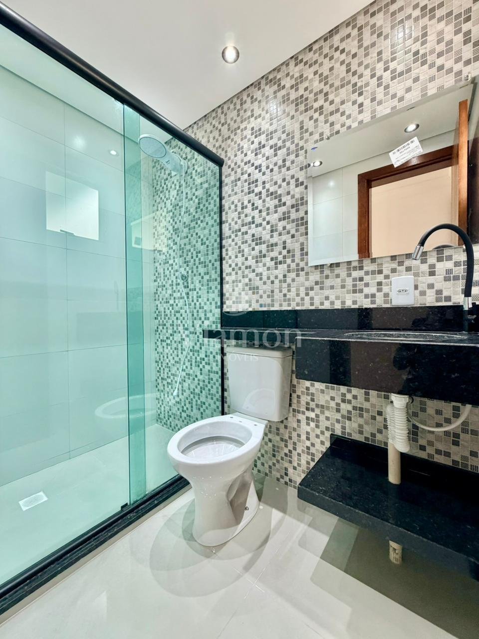 O banheiro social também foi reformado e conta com box em vidro, trazendo mais modernidade, organização e facilidade na limpeza.