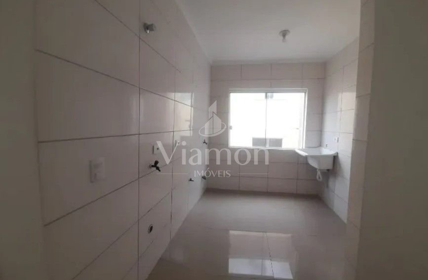Cozinha funcional com espaço para armários planejados e área de serviço anexa, garantindo praticidade no dia a dia