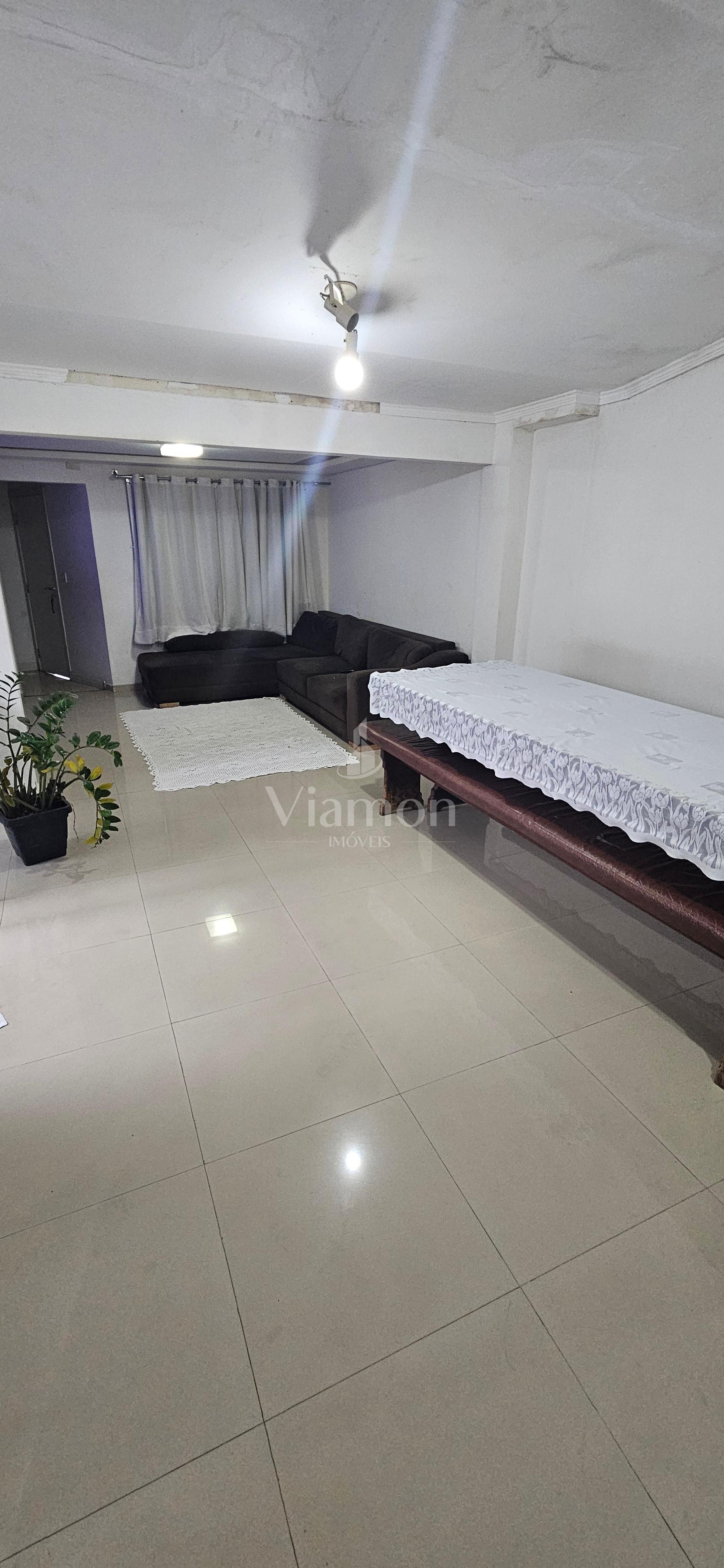 Imóvel não averbado, com piso porcelanato e teto em laje.