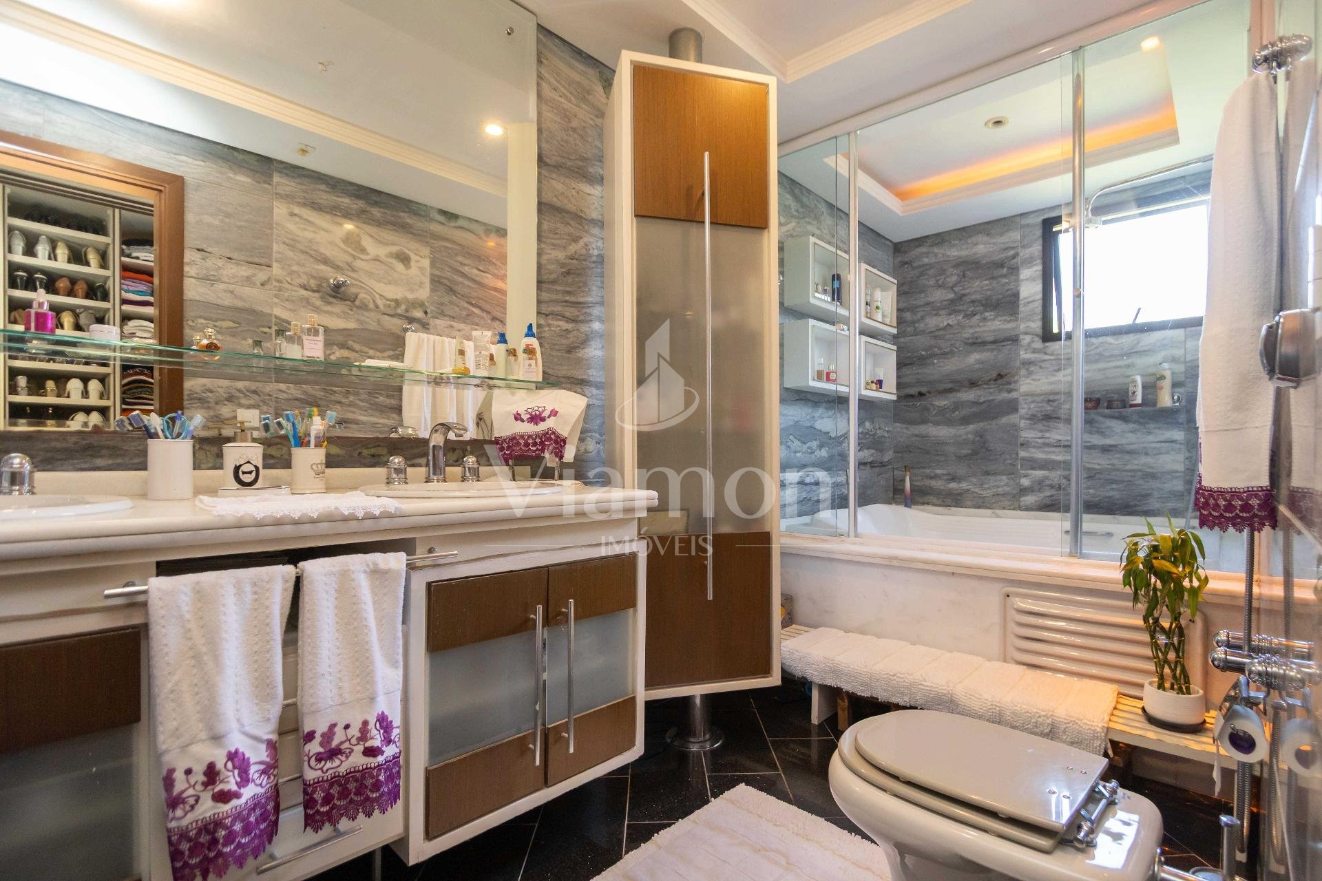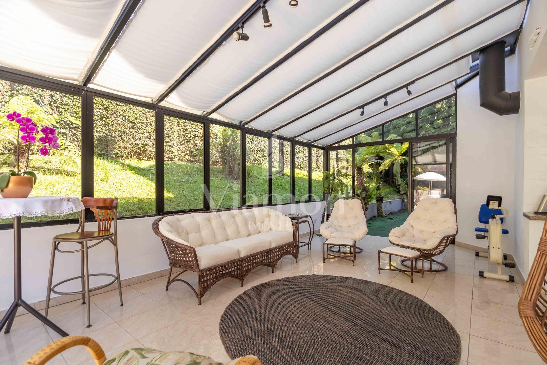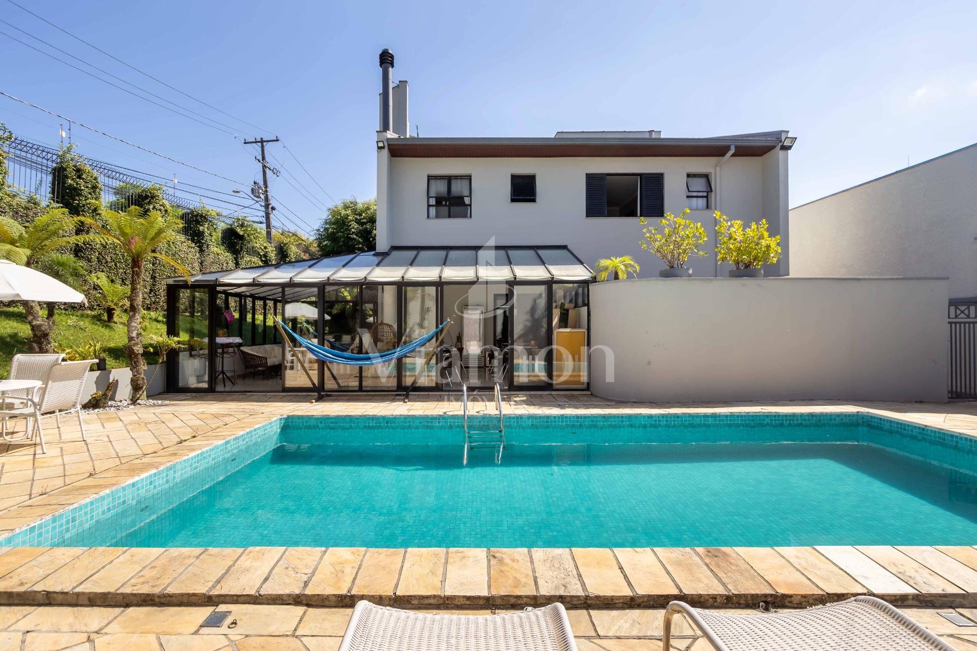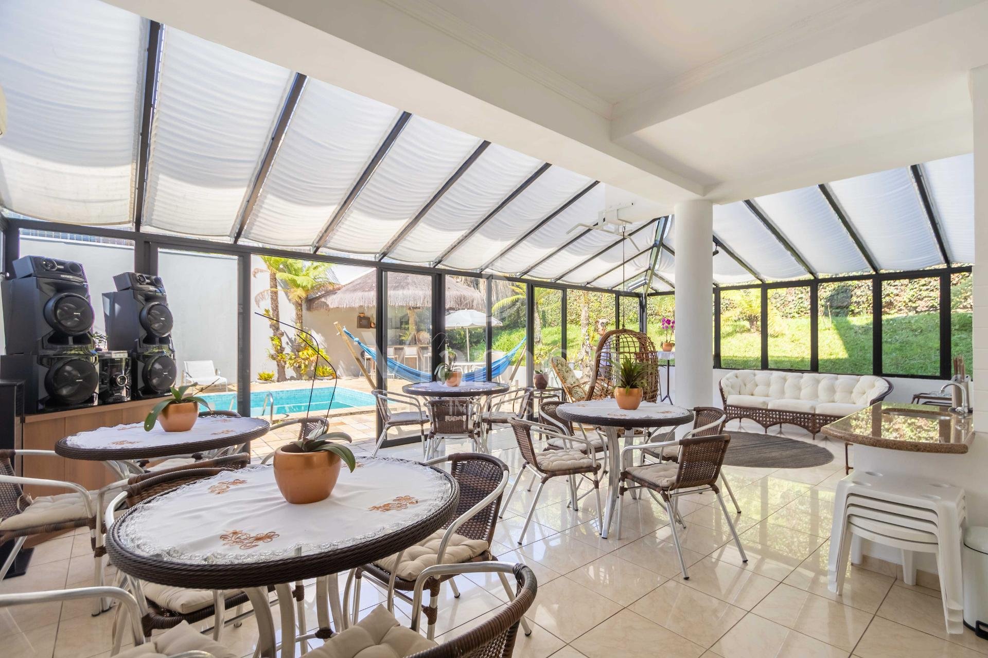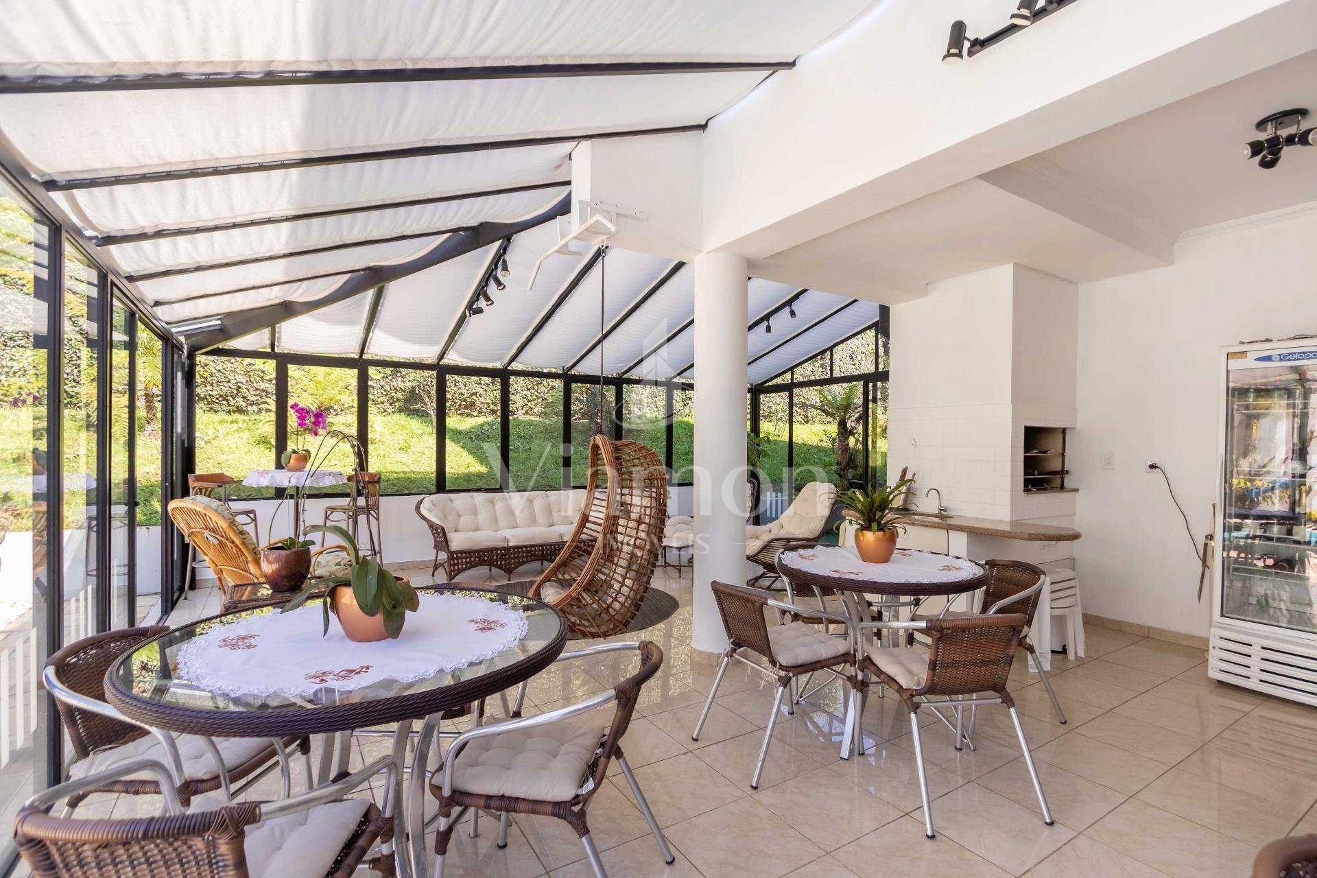 A residência conta ainda com 5 banheiros, 4 vagas de garagem, vestiário completo com chuveiro para atender com praticidade momentos de lazer e piscina, além de acabamentos de altíssimo padrão incluindo pisos de porcelanato premium, esquadrias amplas e infraestrutura pronta para climatização e automação residencial.