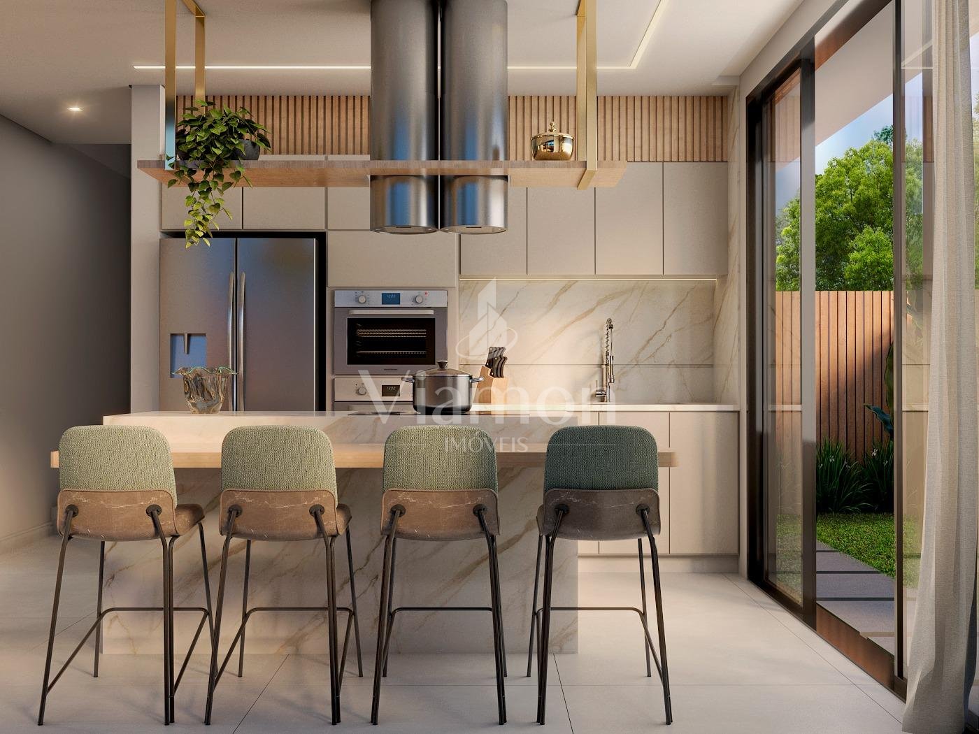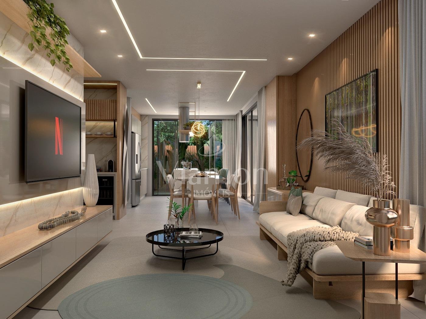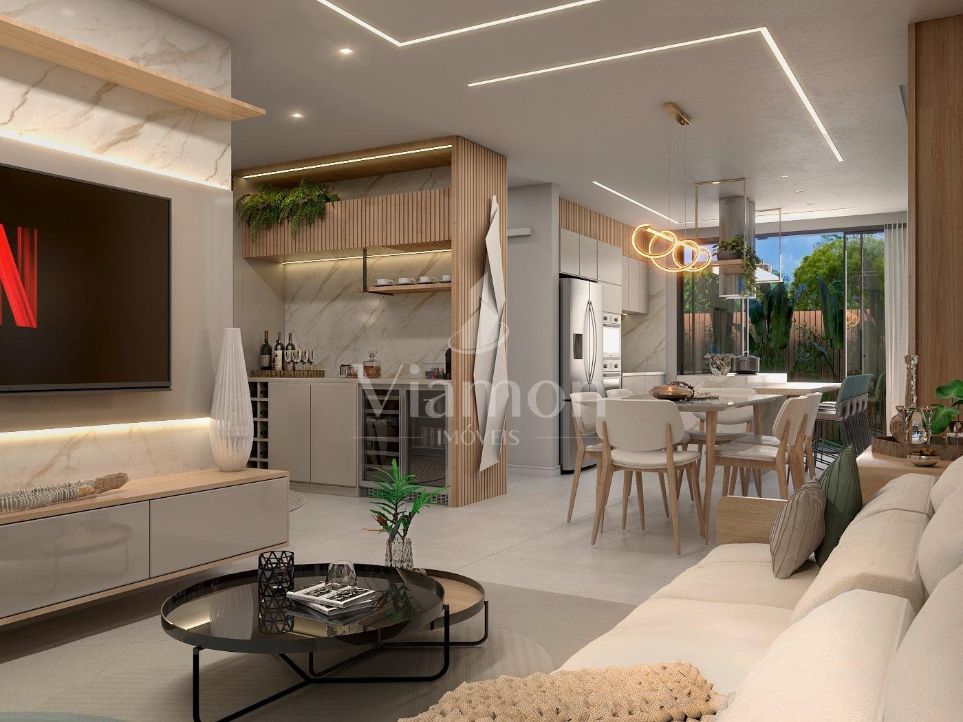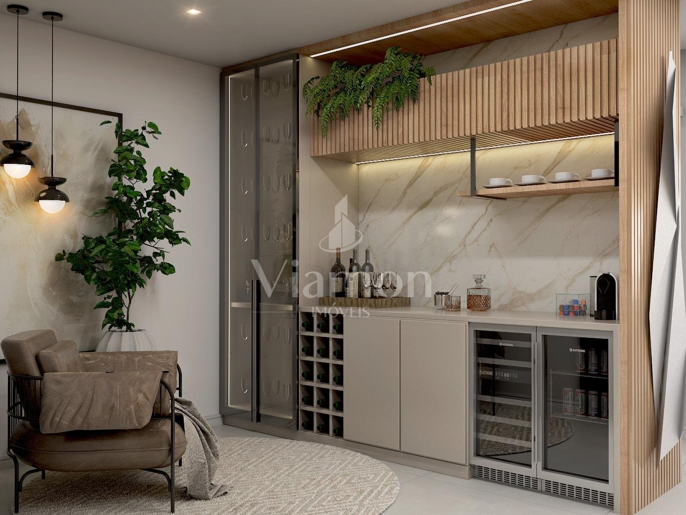 Hall de entrada com adega, sala de estar jantar e cozinha integradas.3 suites, I