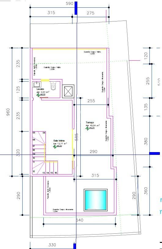 160m² area construida + 50m²terraço descoberto