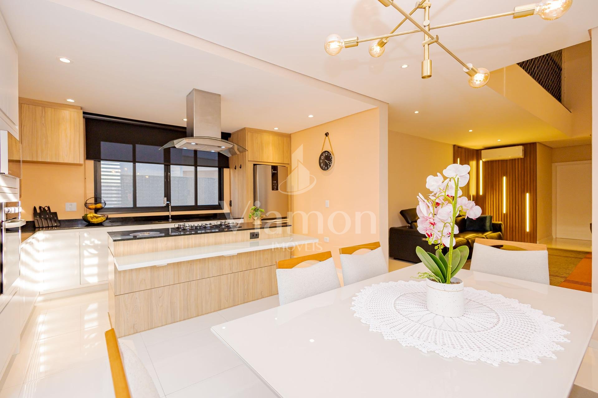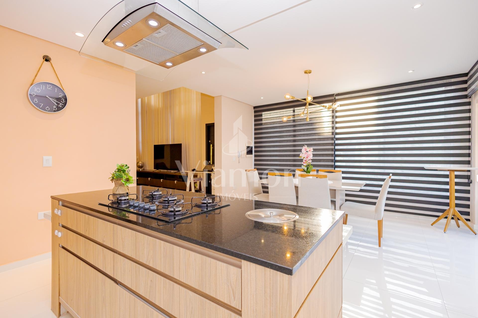 * A área da cozinha em conceito aberto com ilha, conta com acesso à varanda gourmet integrada à sala de jantar