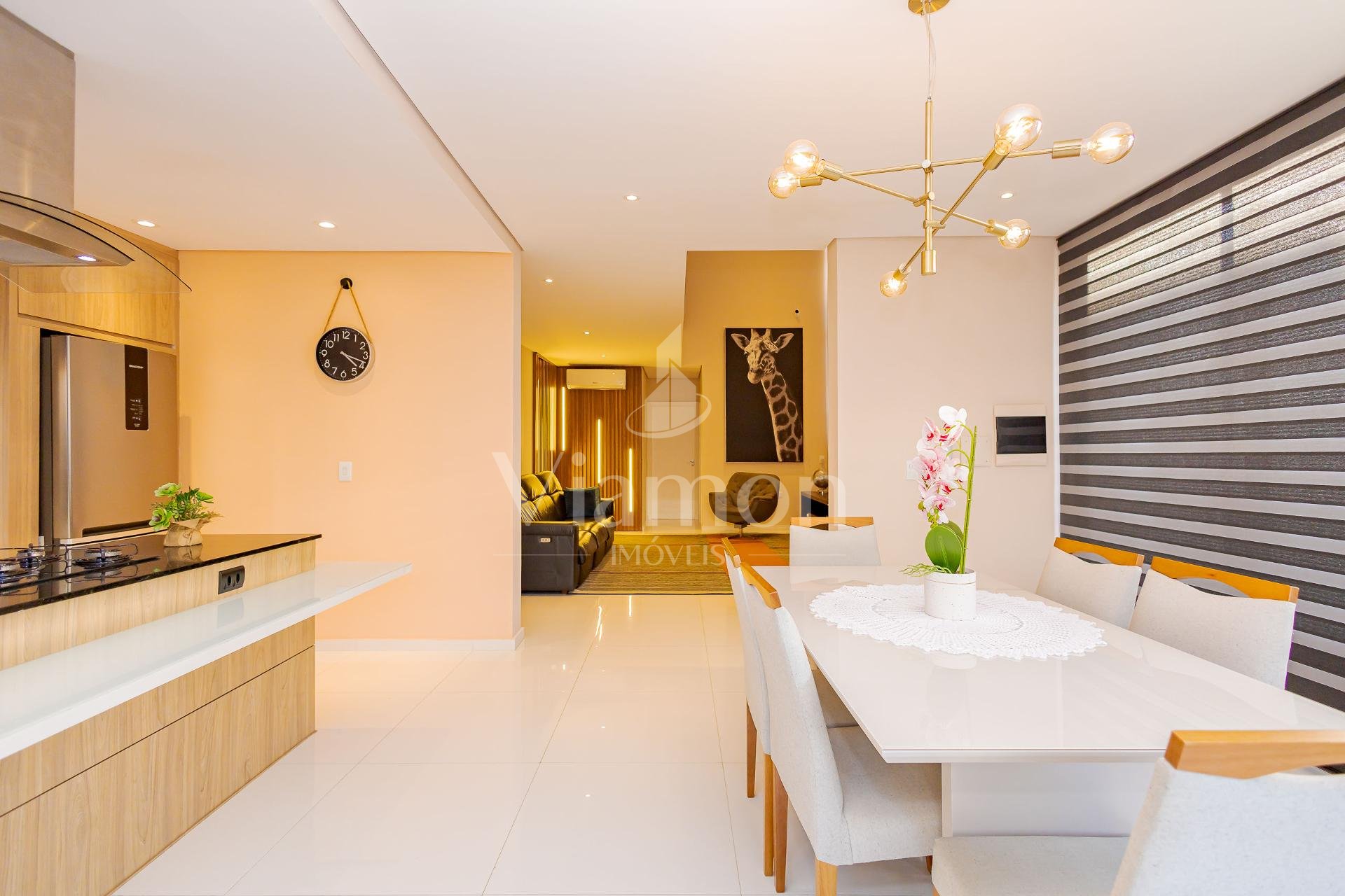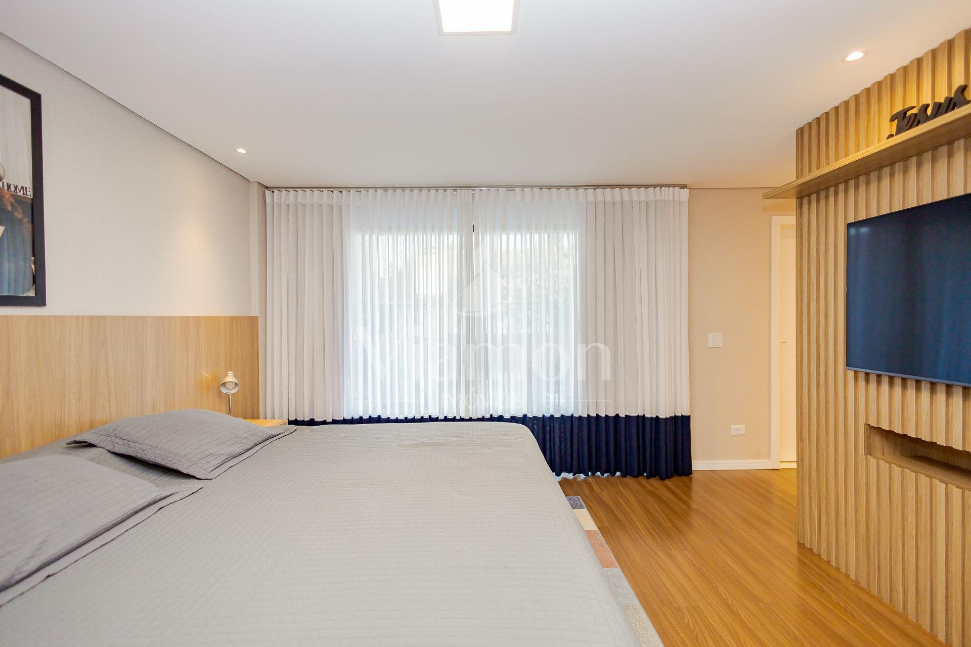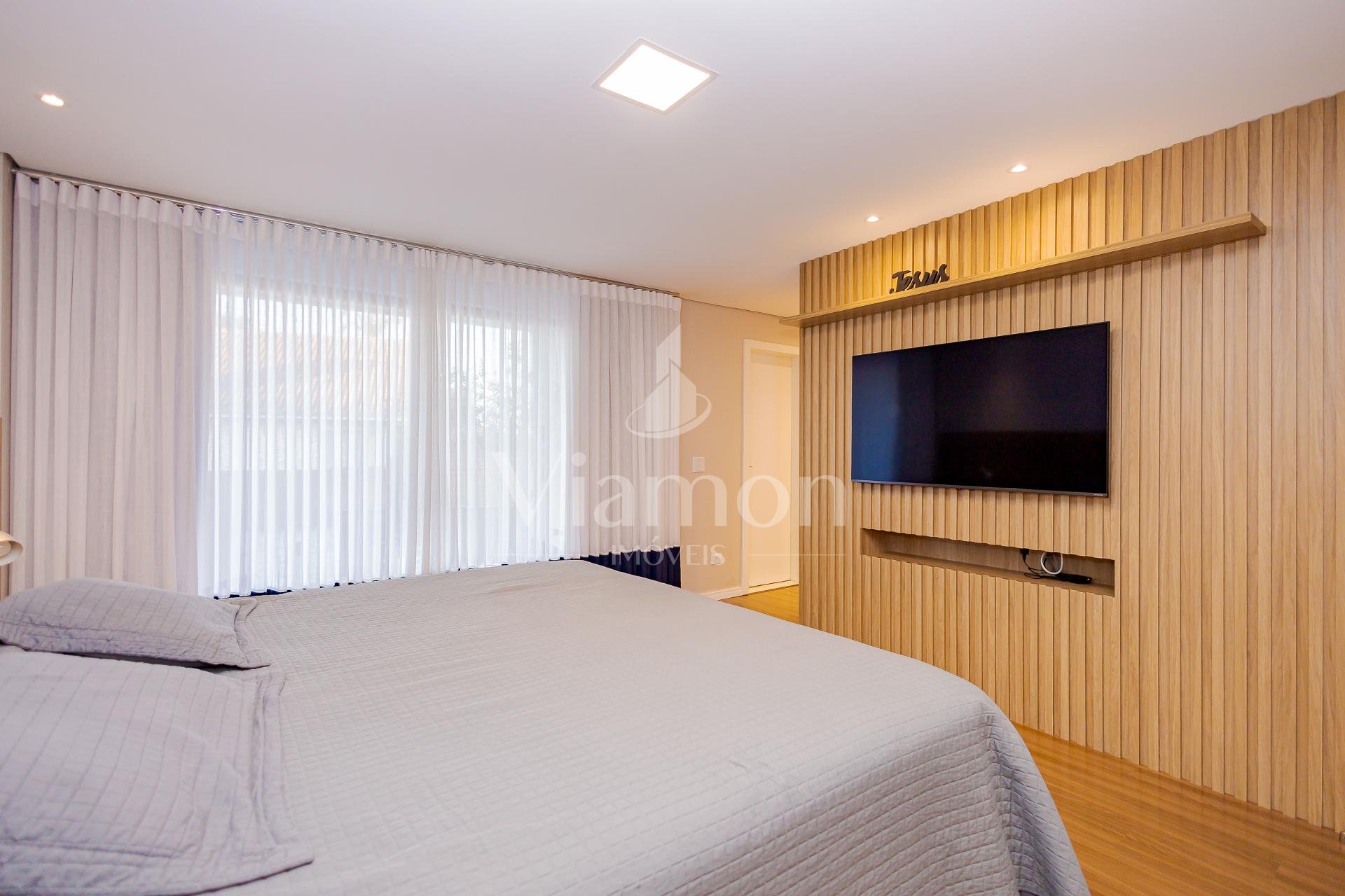 * A casa será entregue com todos os móveis planejados fixos, eletros fixos de cozinha, aparelhos de ar-condicionado, além de gesso e projeto luminotécnico, piso porcelanato e laminado, blackouts, persianas e cortinas