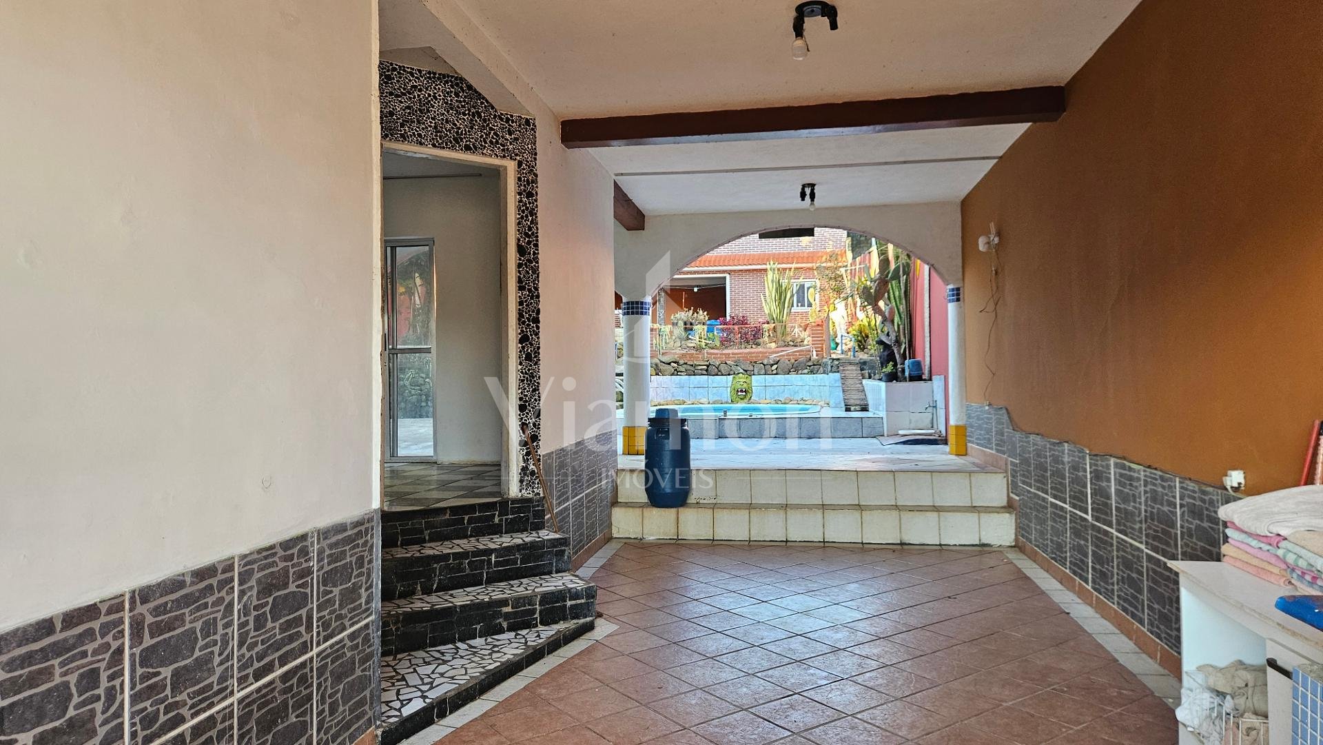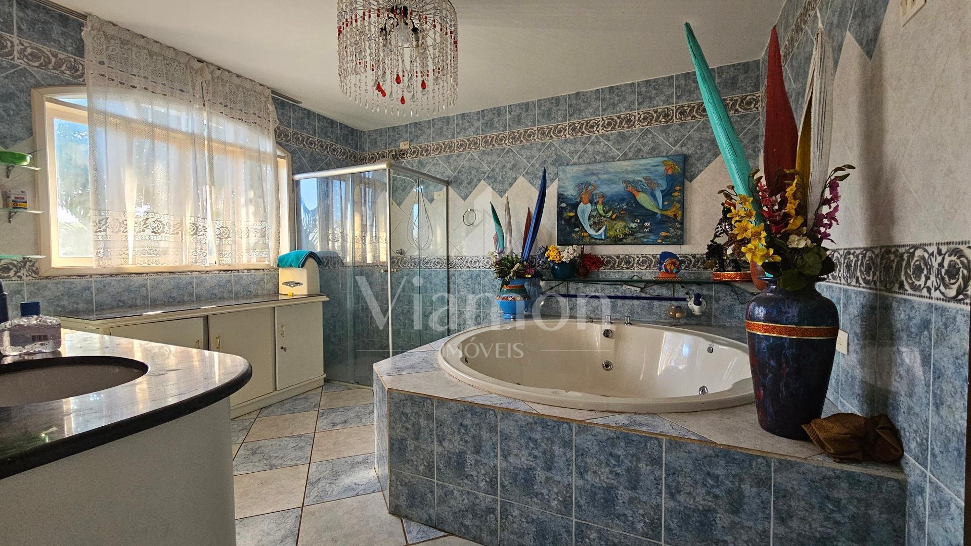 Residencia principal com 03 dormitórios, sendo um uma ampla suíte com hidromassagem, sala para 2 ambientes, cozinha, banheiro social e lavabo.