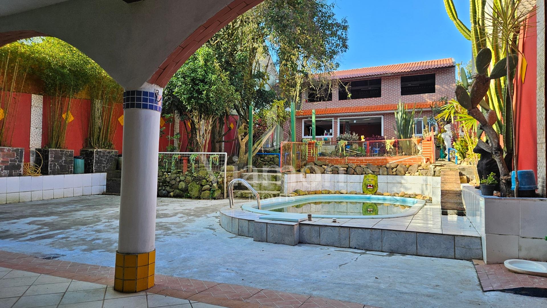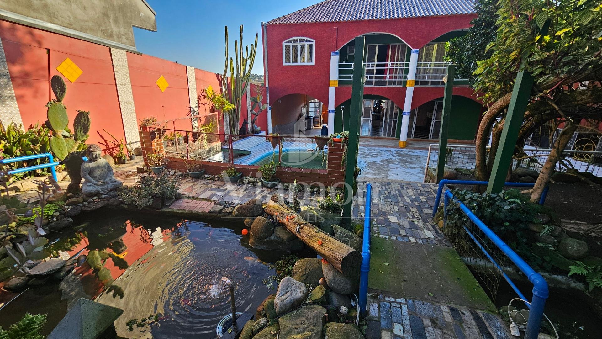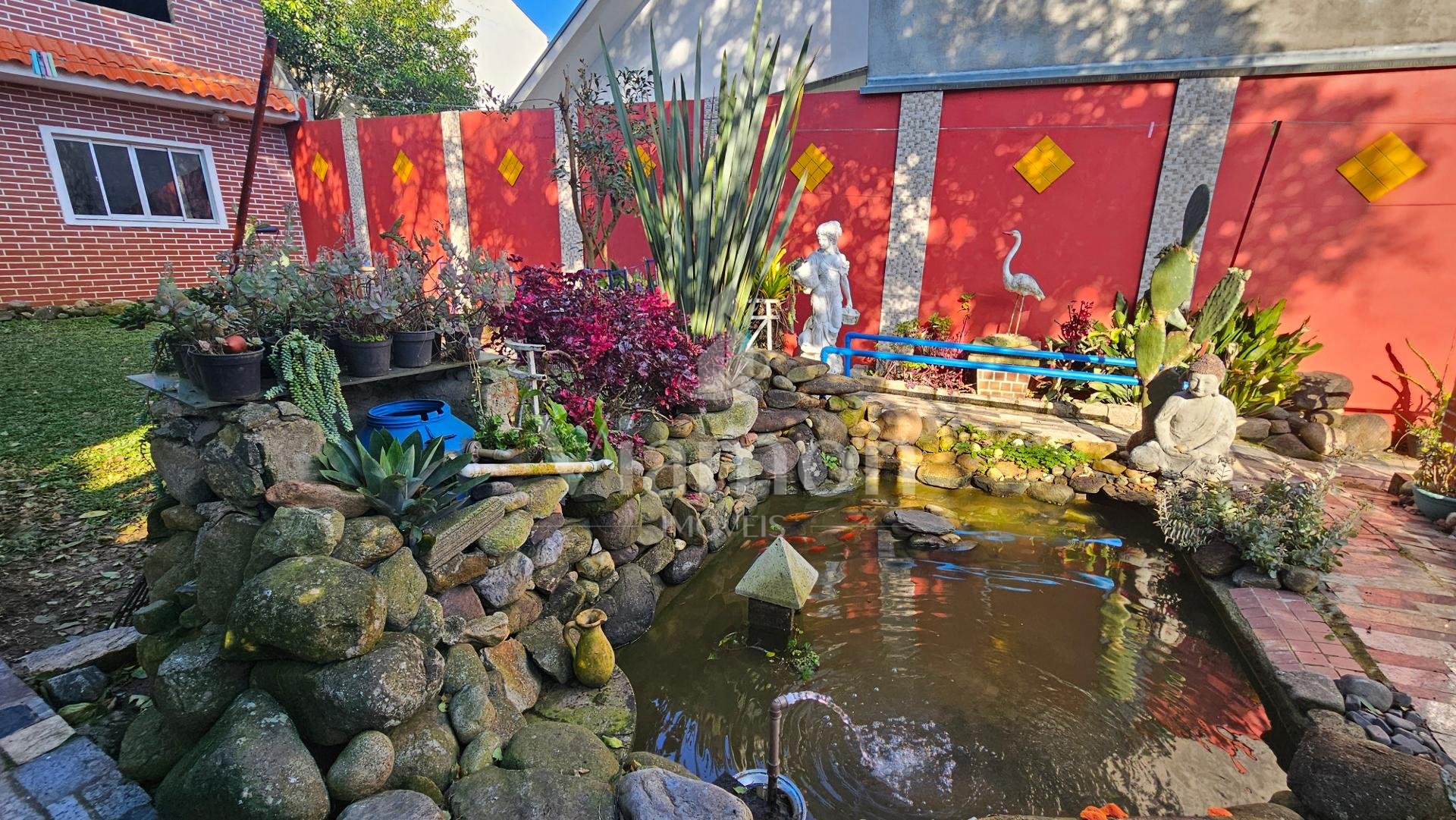Muito espaço externo com piscina, lago ornamental cercado de muitas plantas que traz tranquilidade e ar puro ao ambiente.