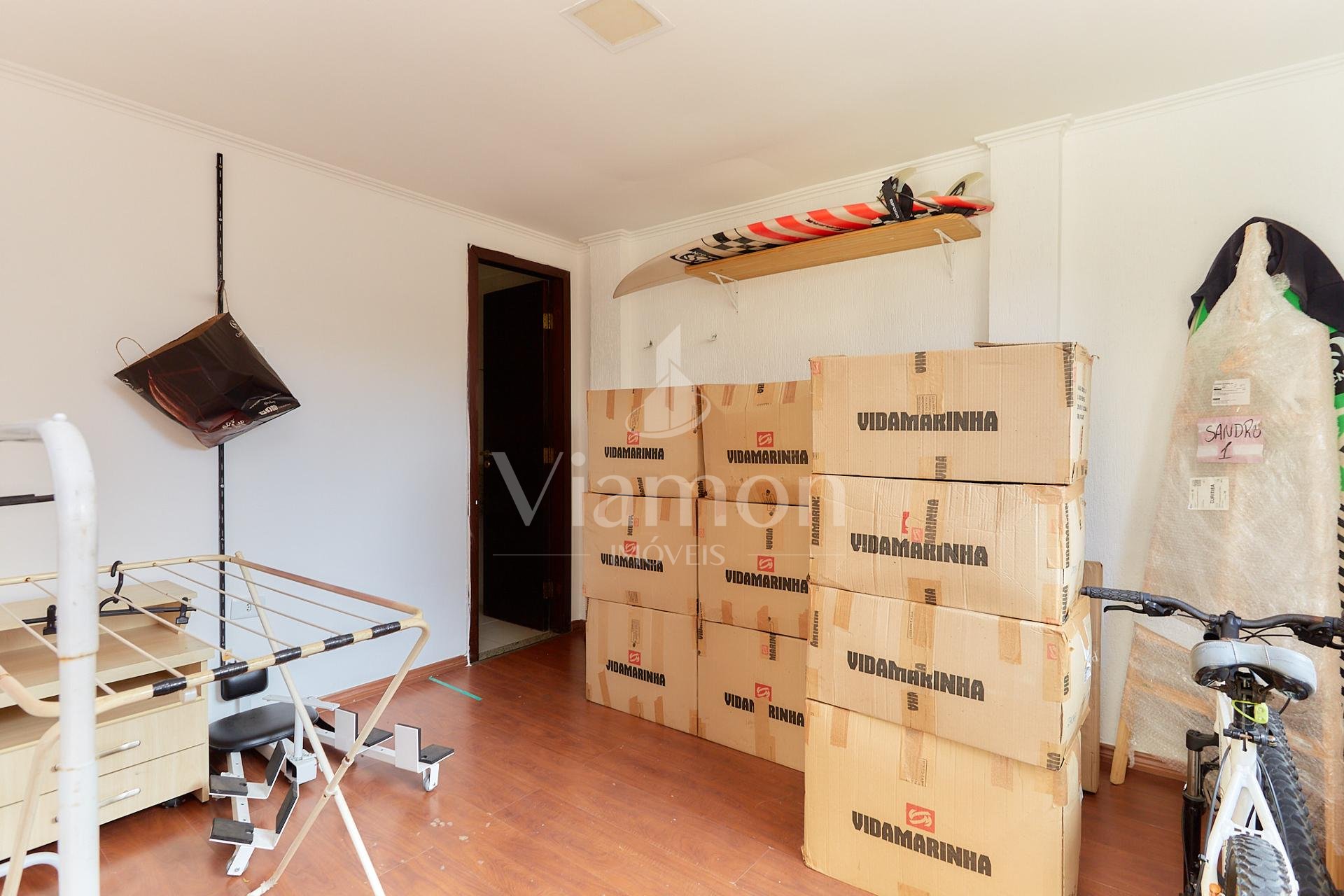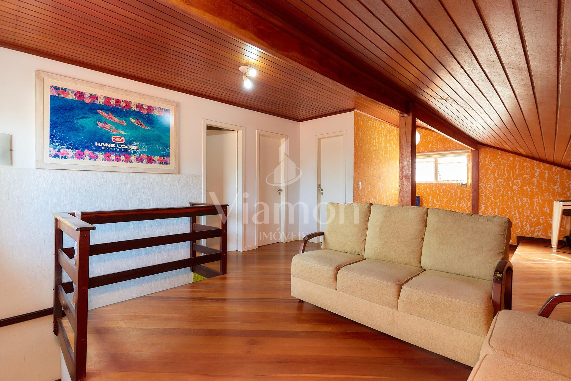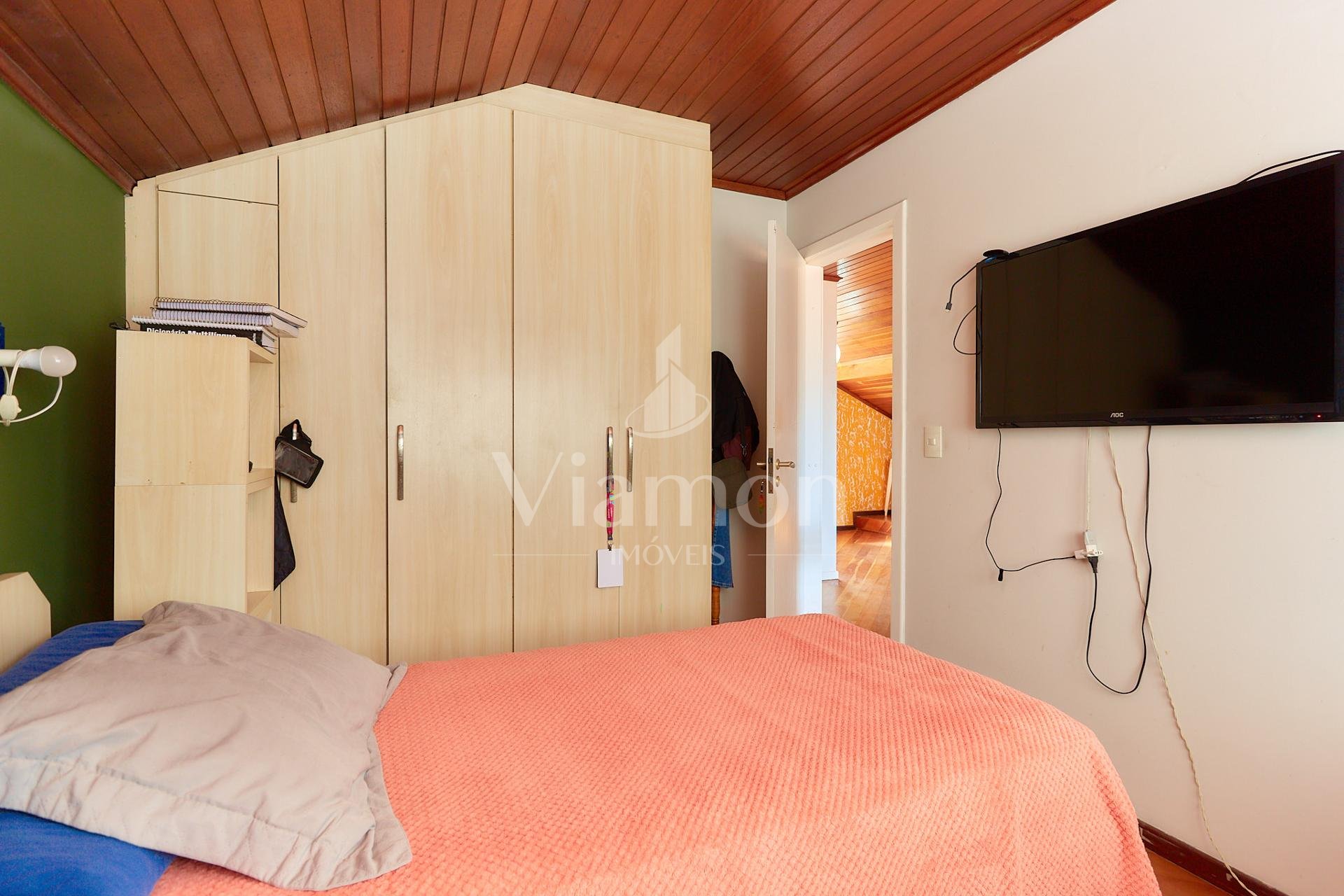 Parte superior: 2 quartos, banheiro social e sala de TV