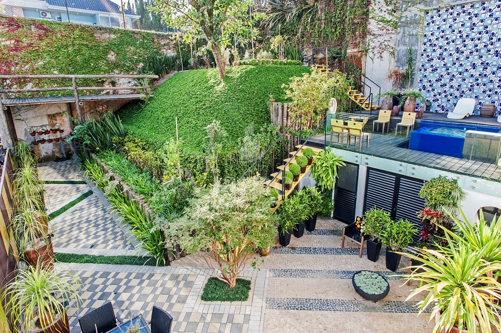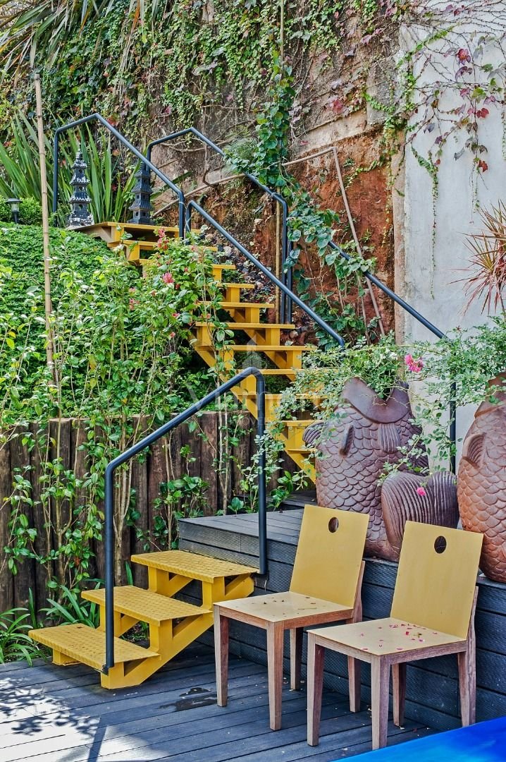 Jardim com árvores frutíferas e horta caseira, perfeito para cultivar alimentos frescos e se conectar com a natureza.