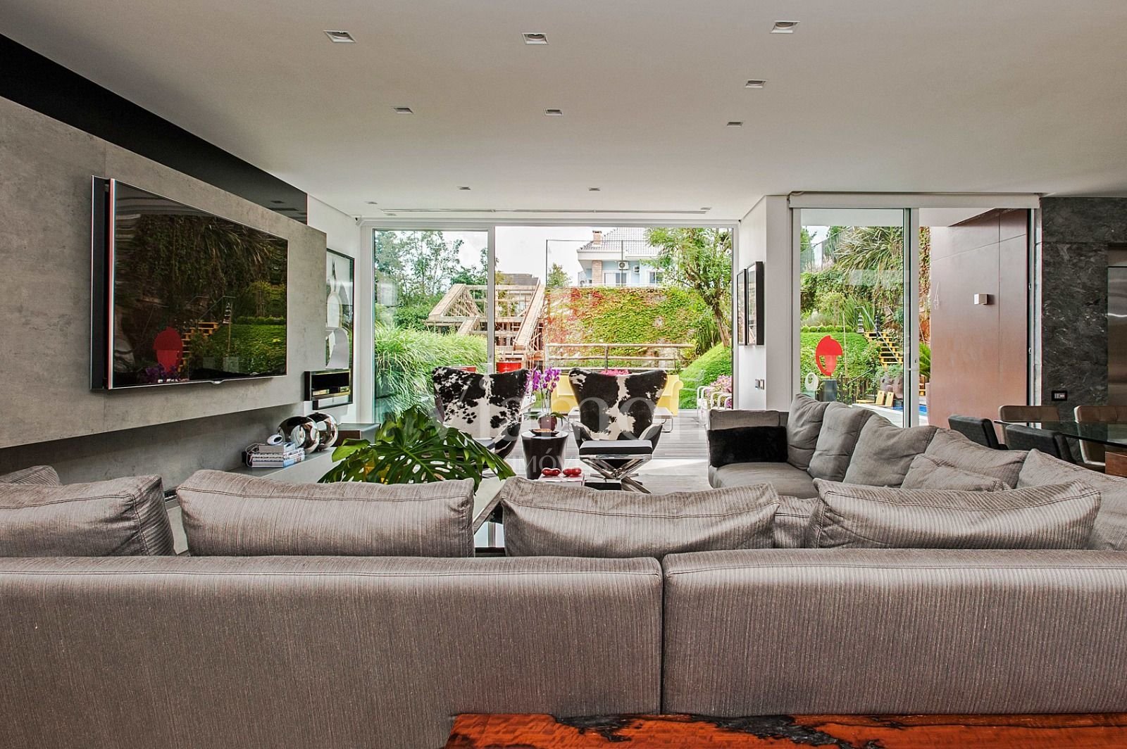 Grandes aberturas proporcionam luz natural abundante e integração com o verde ao redor.