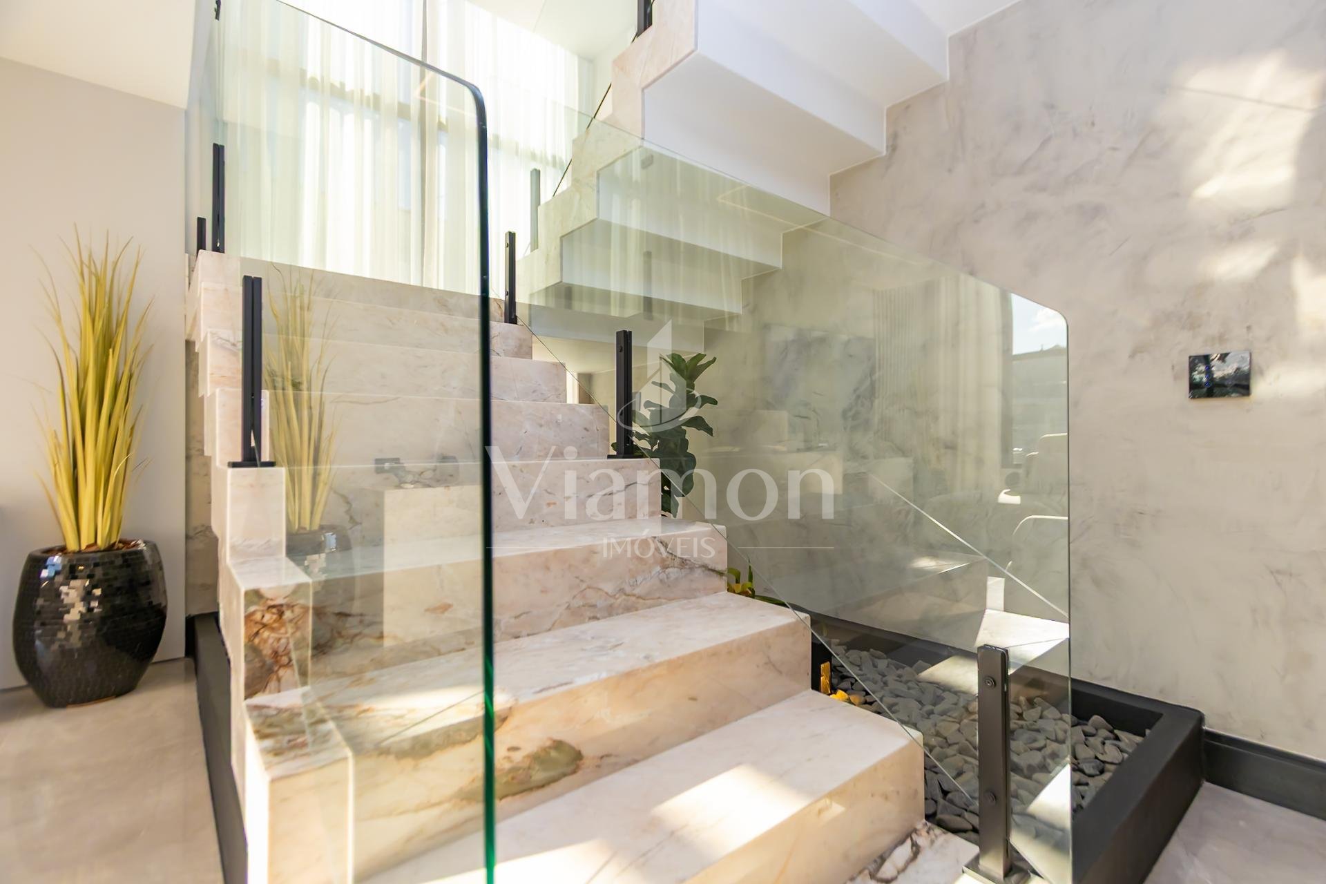 - Escada imponente em mármore + lavabo elegante