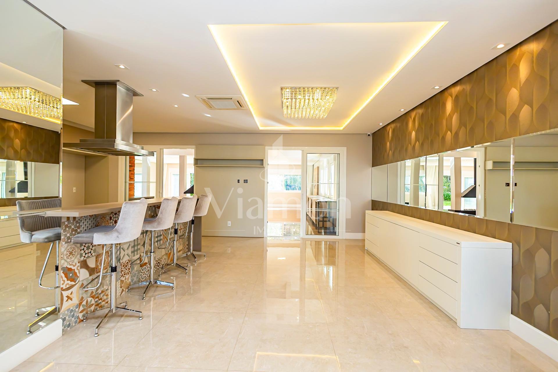 O espaço gourmet é gigante, equipado com churrasqueira a carvão e totalmente integrado ao quintal perfeito para receber amigos e família. A casa também conta com uma adega com capacidade para mais de 100 garrafas, ideal para apreciadores.