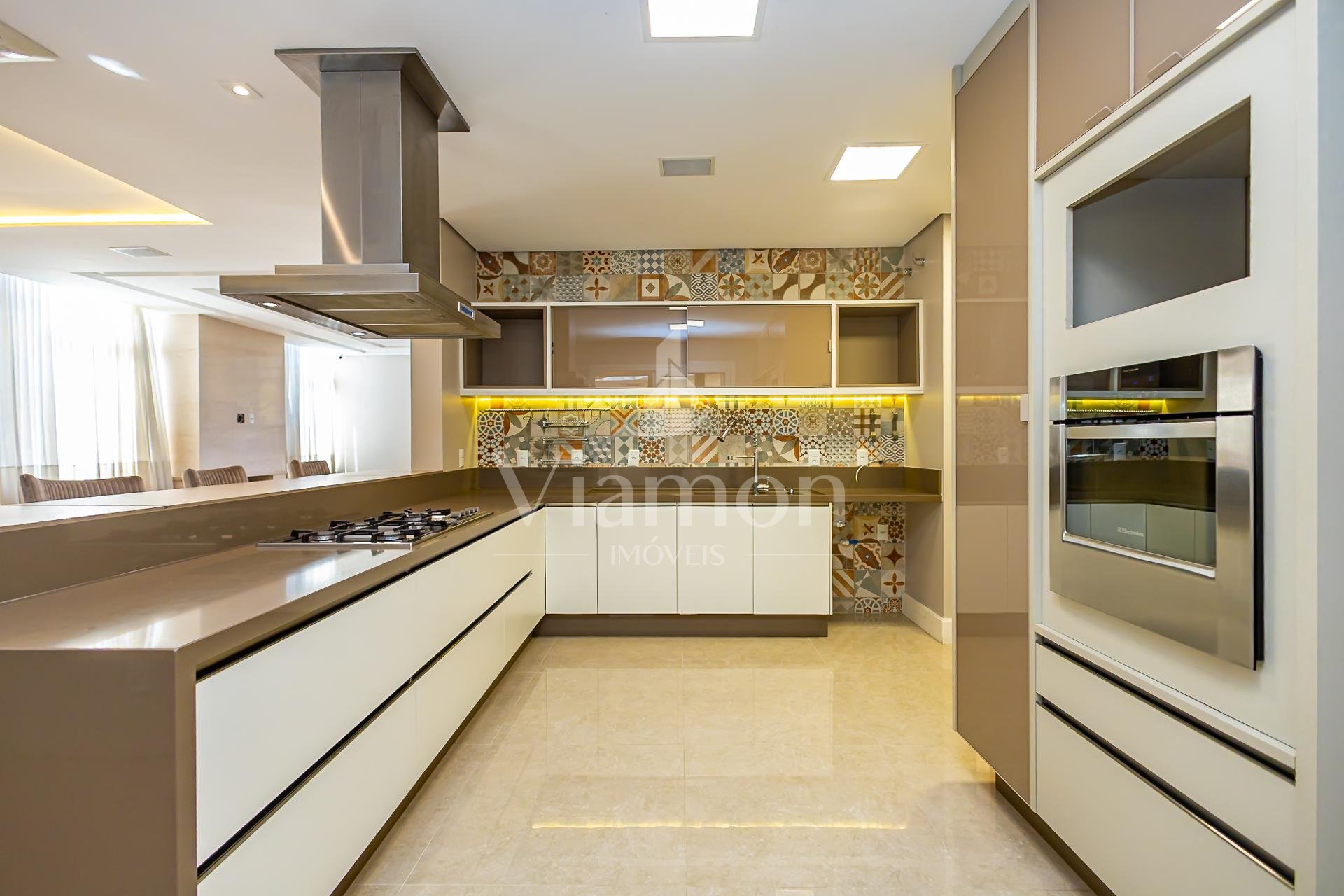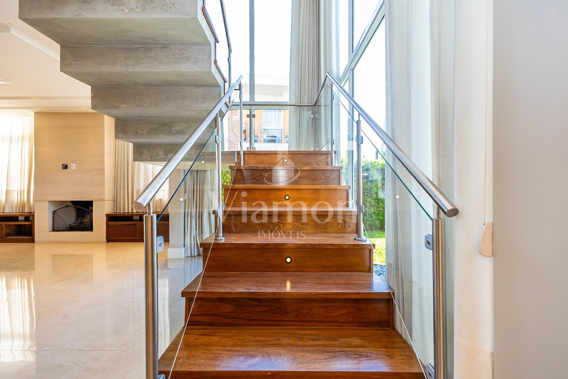No pavimento térreo, o hall de entrada conecta-se à sala de estar em um ambiente aconchegante e naturalmente iluminado. A cozinha planejada, com marcenaria Bontempo, integra-se à sala de jantar, trazendo fluidez e praticidade ao cotidiano.