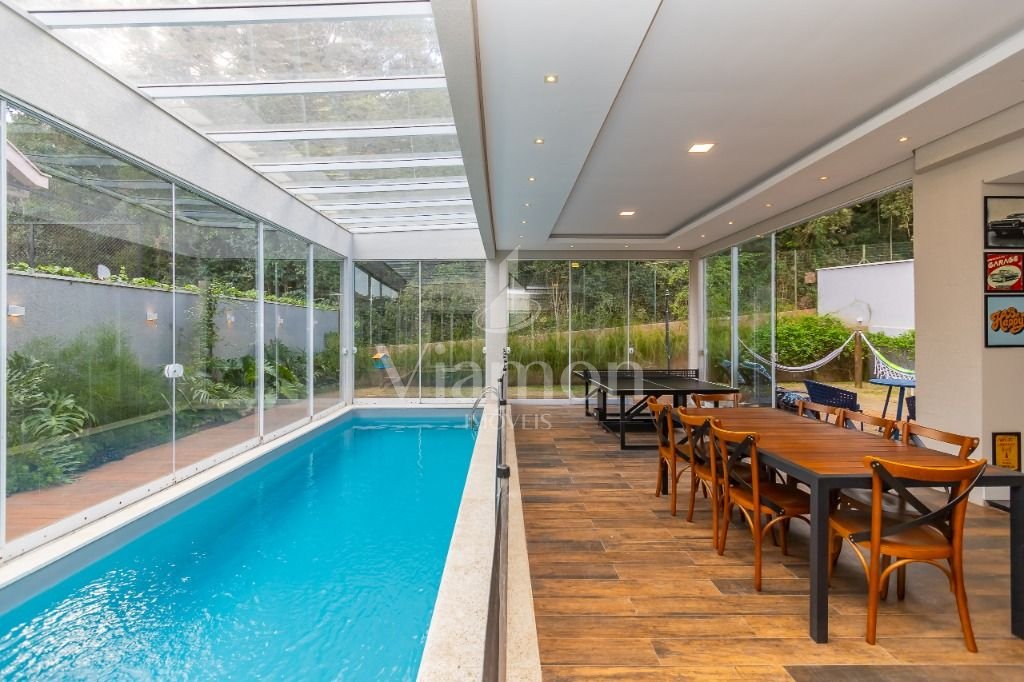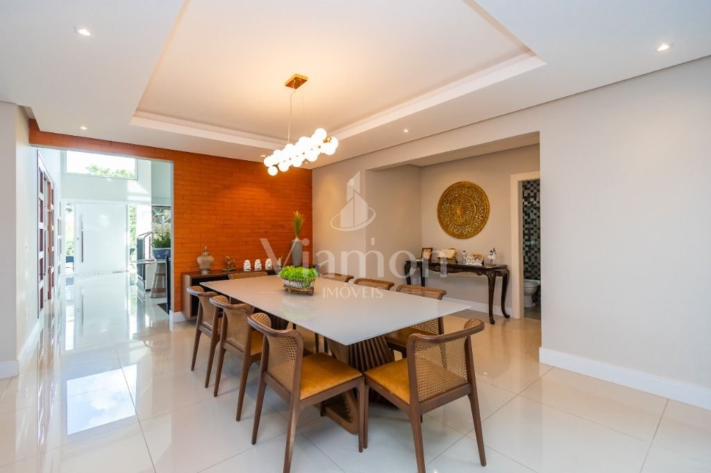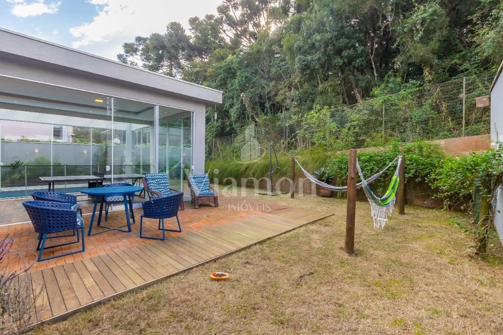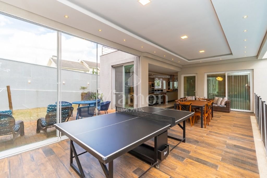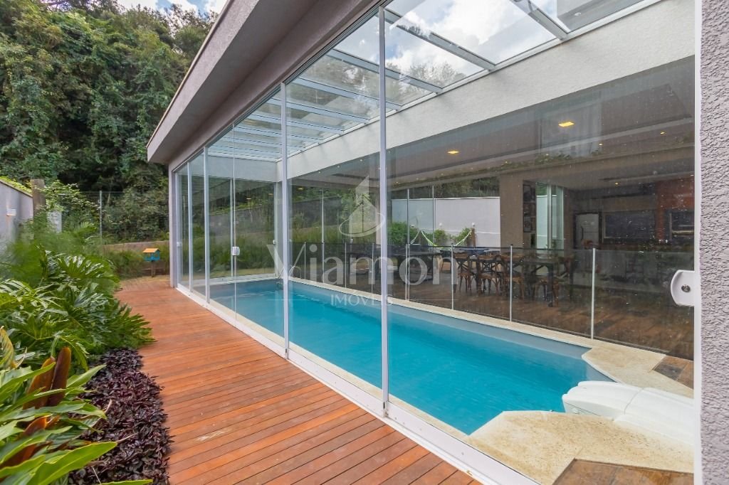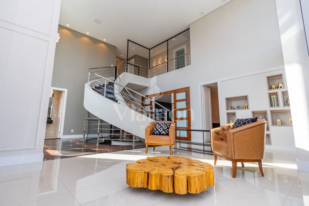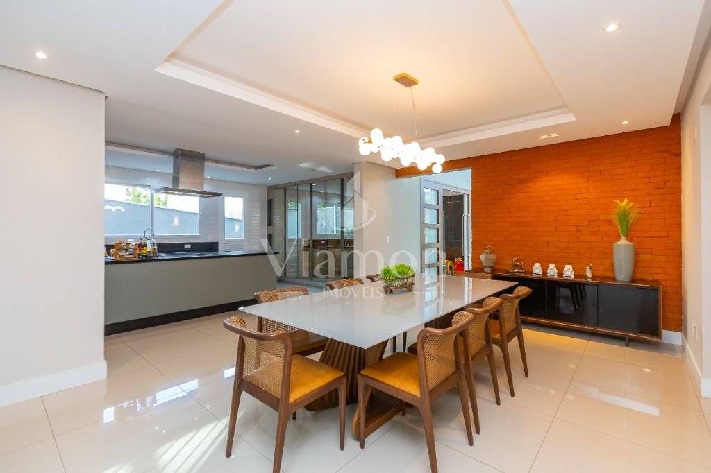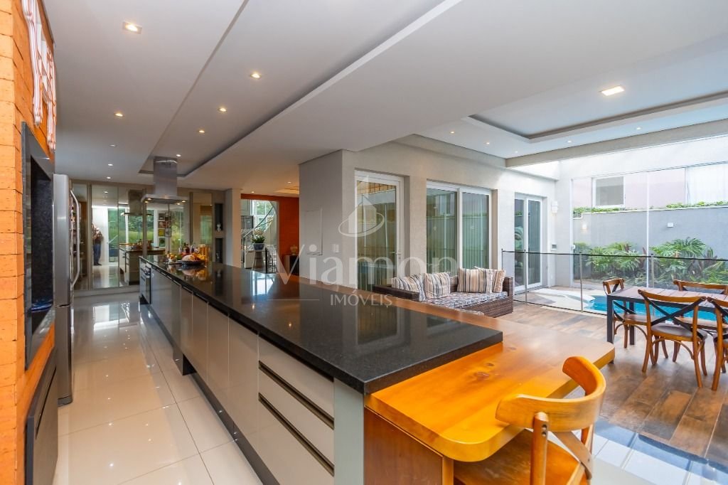 O pé direito da sala é muito elegante e imponente. A escada complementa o ambiente como se fosse uma obra de arte. Nesta casa a piscina Desjoyaux com tratamento sem cloro, é ideal para você!!! A cozinha, o espaço gourmet e a piscina tem uma integração perfeita!Outro diferencial desta casa é que os quartos tem piso aquecido para conforto térmico nos dias frios de Curitiba.