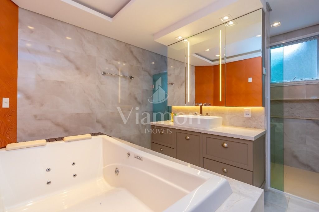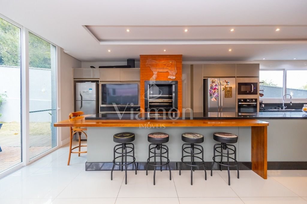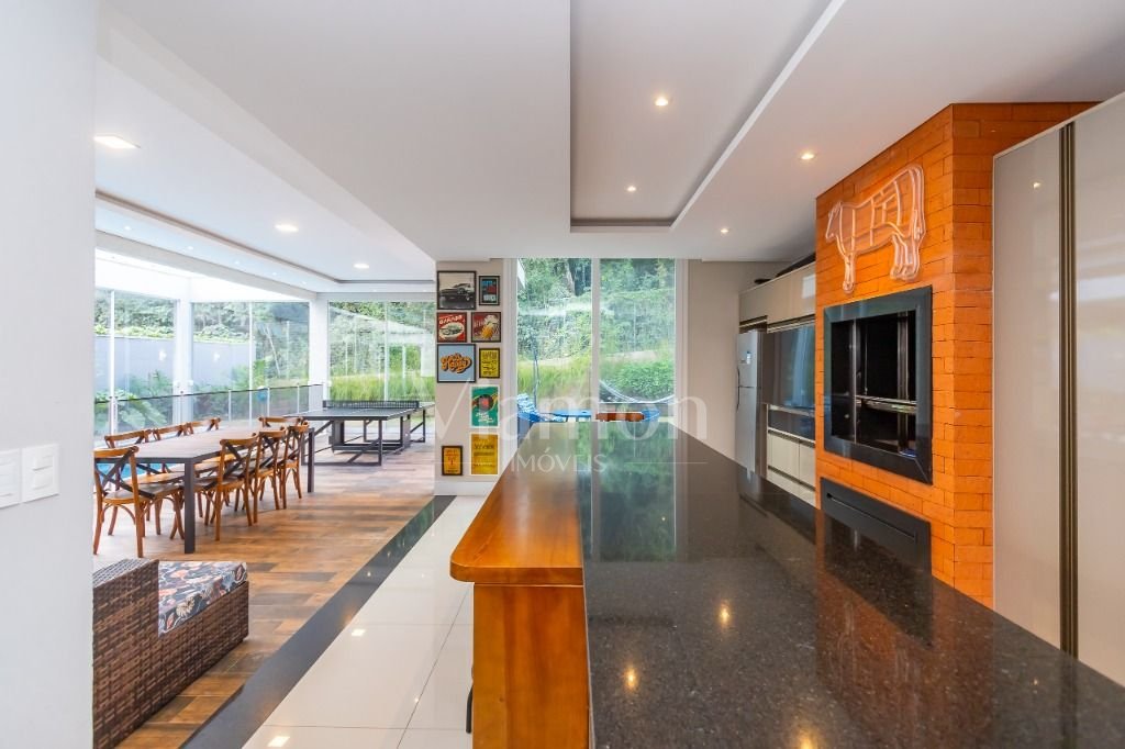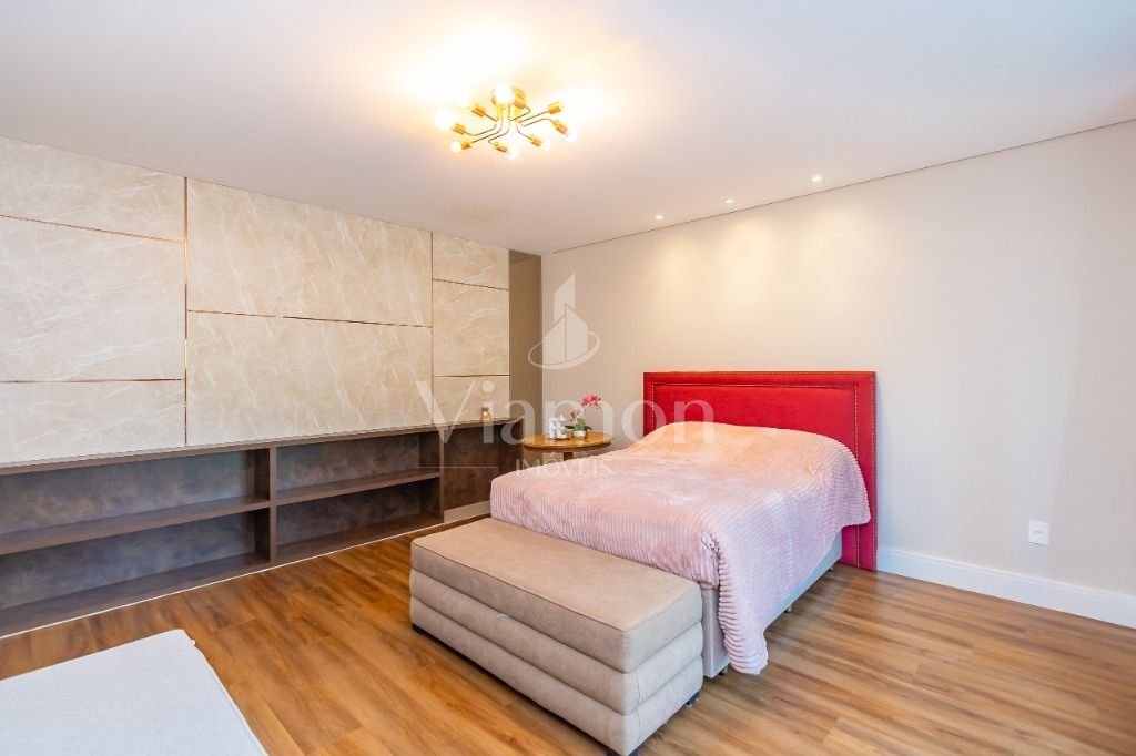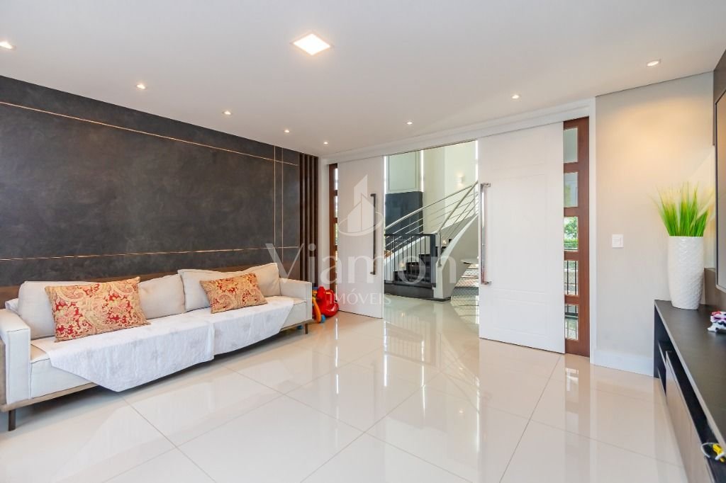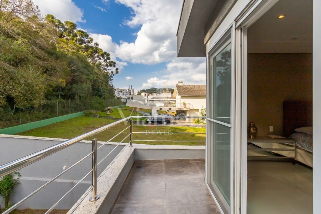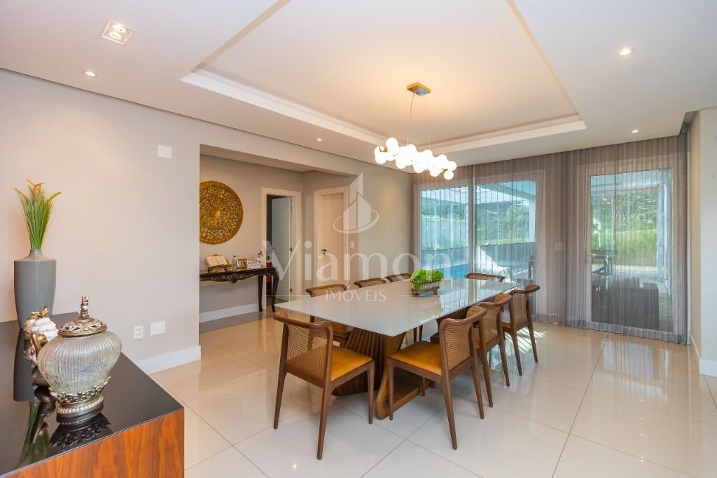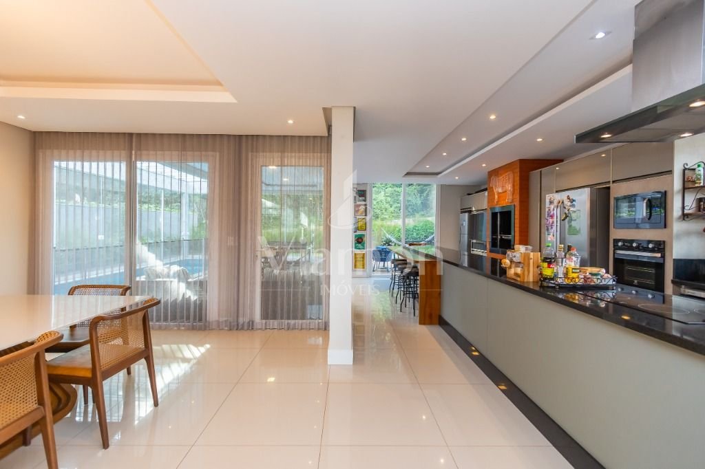 O pé direito da sala é muito elegante e imponente. A escada complementa o ambiente como se fosse uma obra de arte. Nesta casa a piscina Desjoyaux com tratamento sem cloro, é ideal para você!!! A cozinha, o espaço gourmet e a piscina tem uma integração perfeita!Outro diferencial desta casa é que os quartos tem piso aquecido para conforto térmico nos dias frios de Curitiba.
