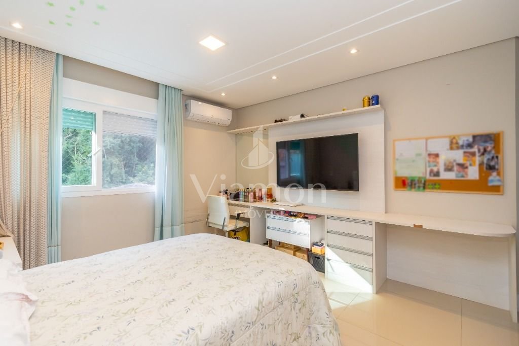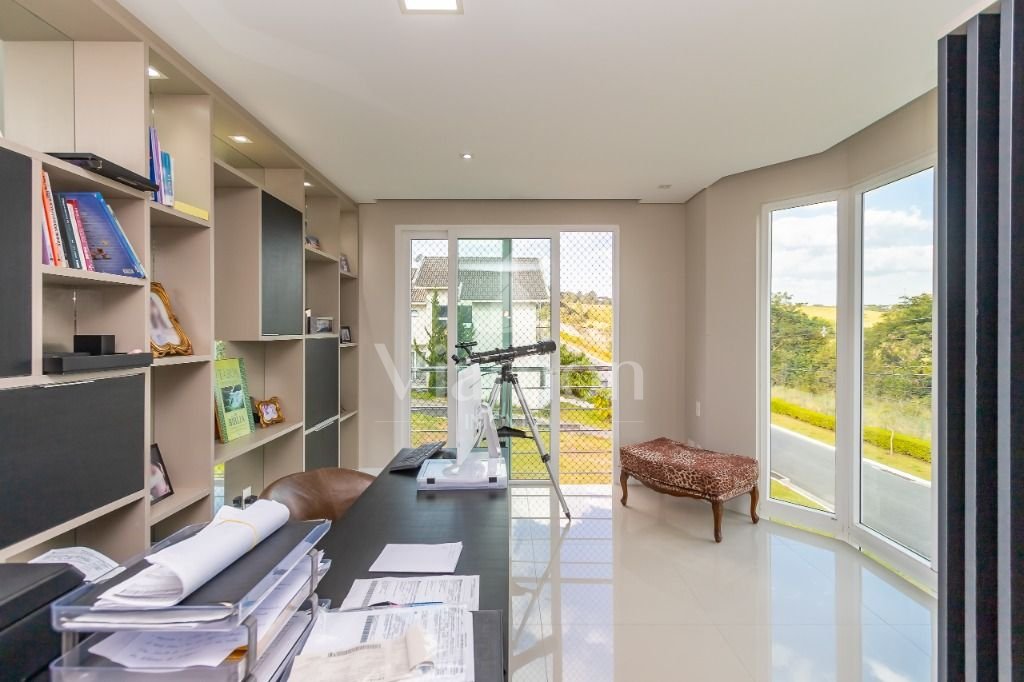 Piso superior:- 3 suítes e escritório, todas com piso aquecido. A suíte master conta com um lindo closet e hidromassagem. O terreno é diferenciado, pois faz fundo para o bosque interno do condomínio e fica de frente para a fazenda.A casa também conta com depósito, lavanderia ampla e dormitório de empregada com banheiro.