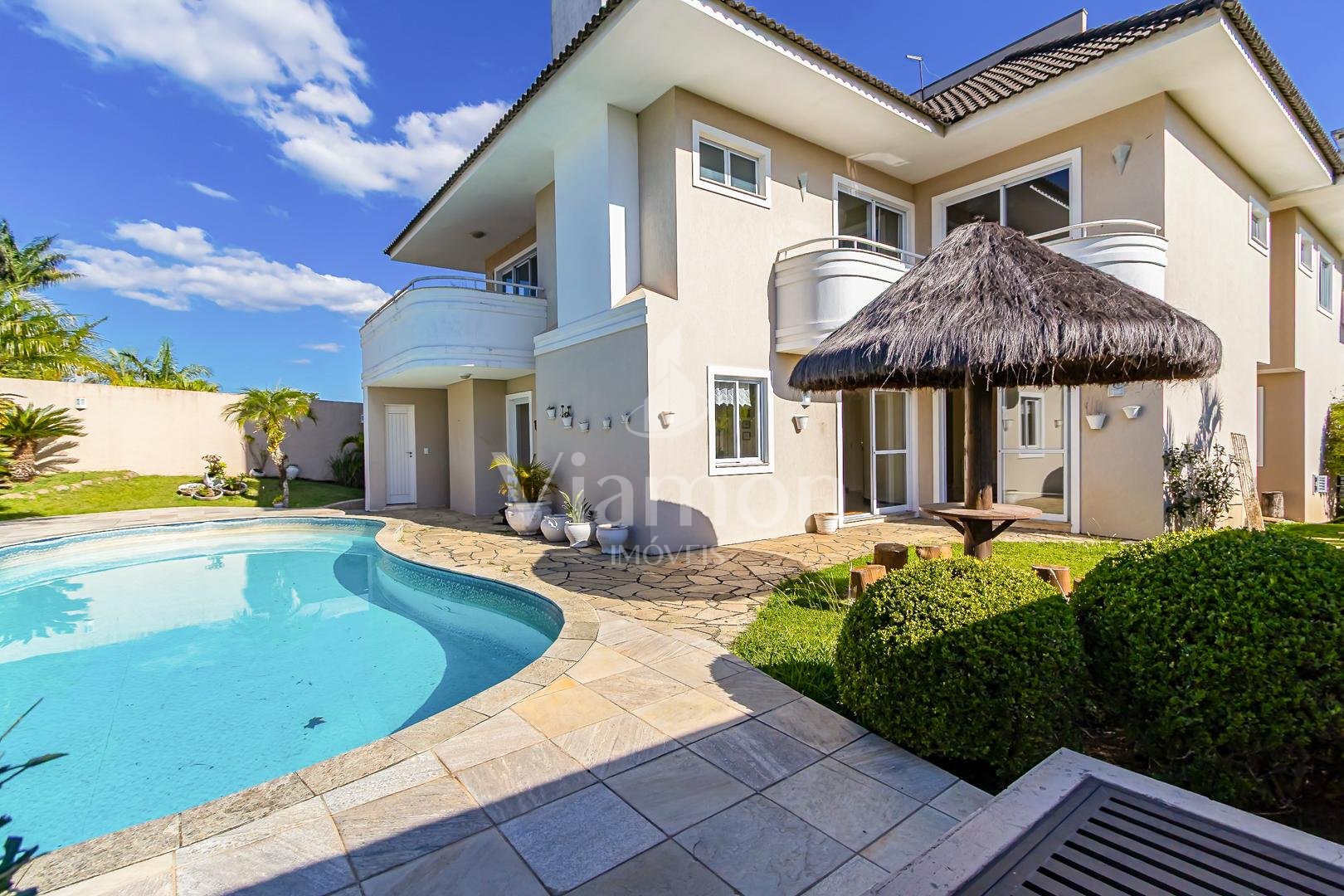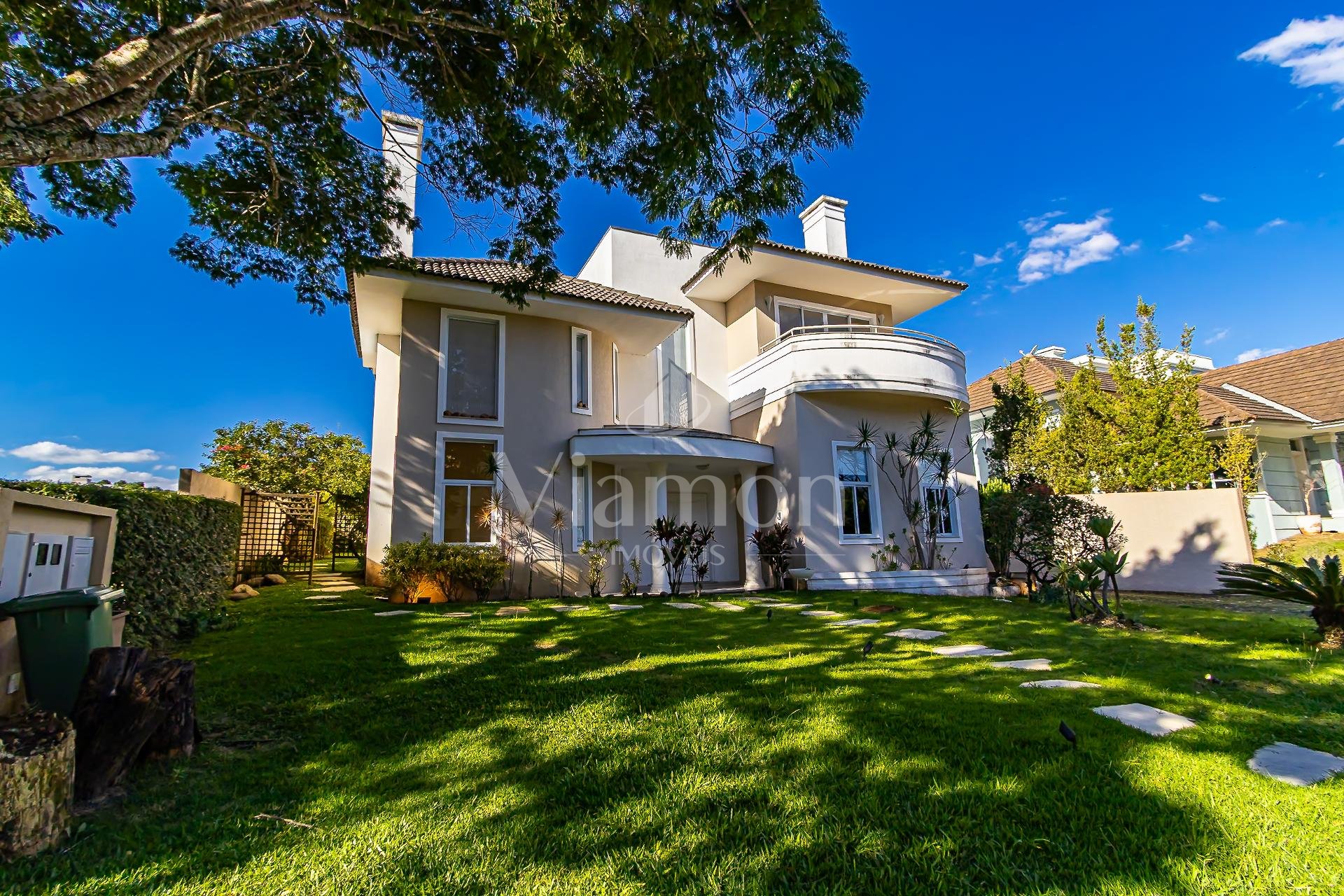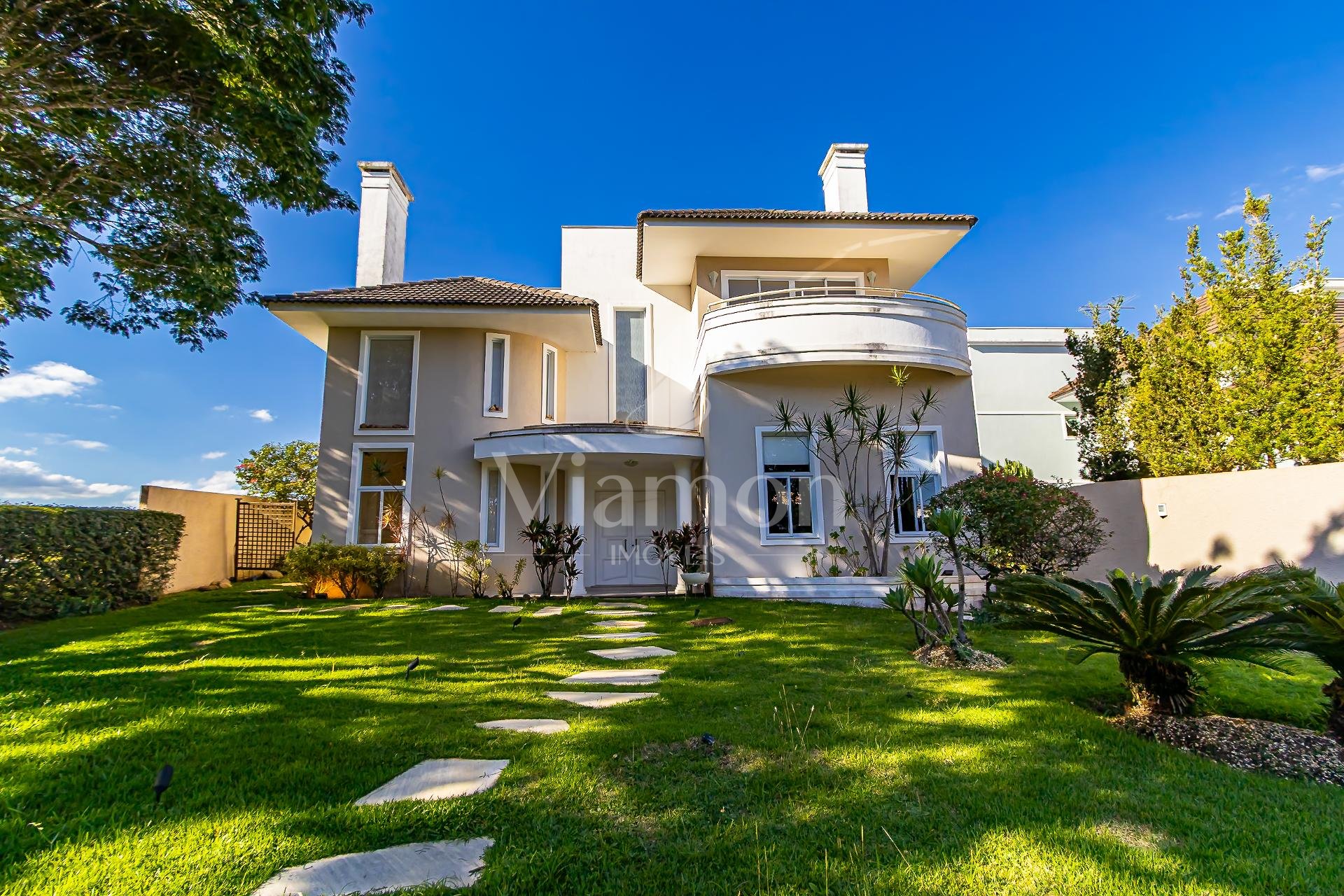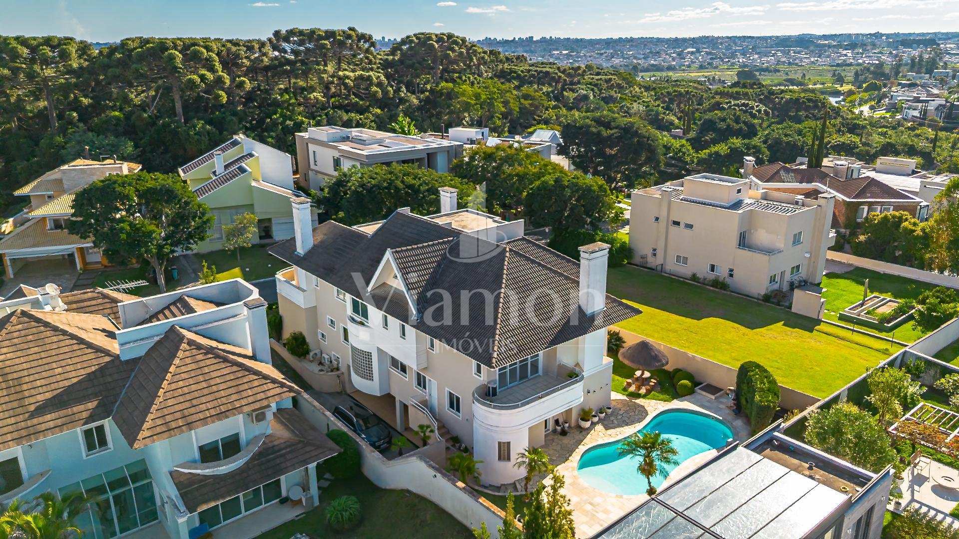 Residência imponente localizada em um dos pontos mais altos e reservados do Alphaville Graciosa, combinando arquitetura clássica, ambientes amplos e uma vista aberta que valoriza ainda mais a experiência de morar com exclusividade.