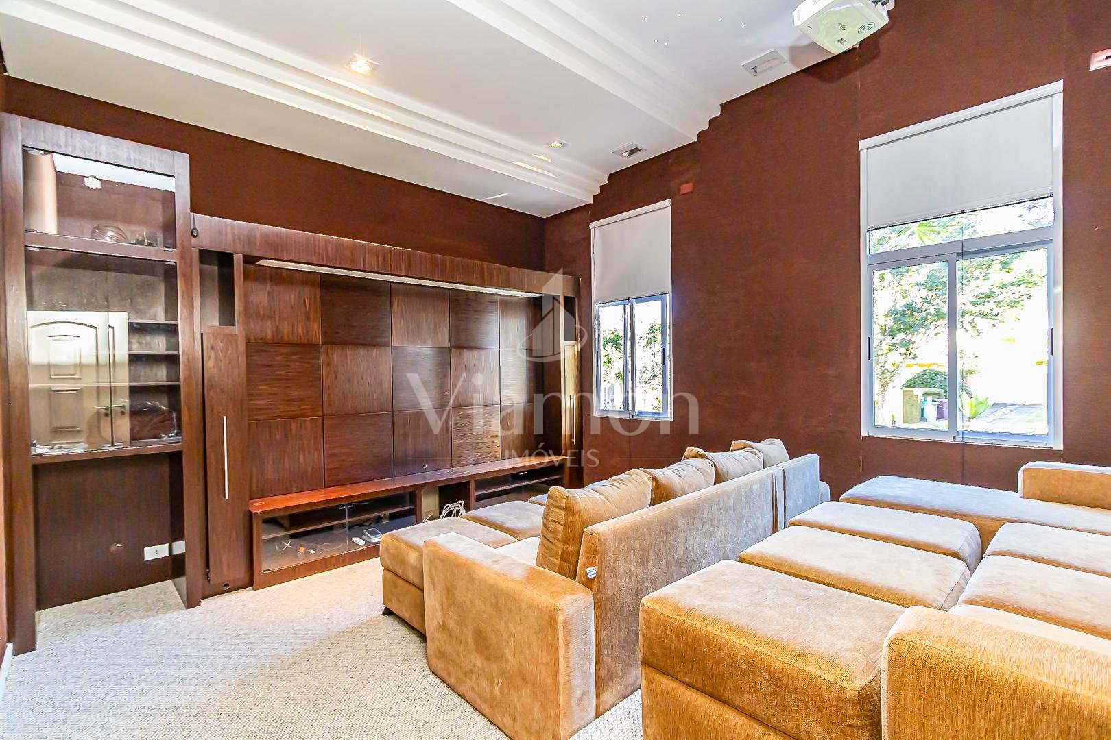 Sala de cinema equipada com marcenaria planejada