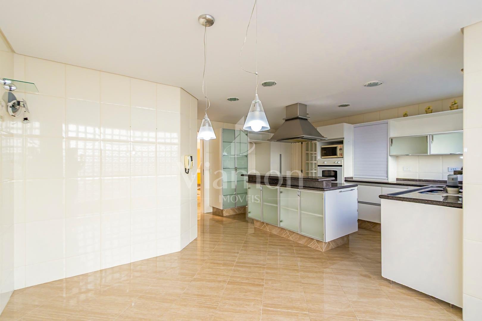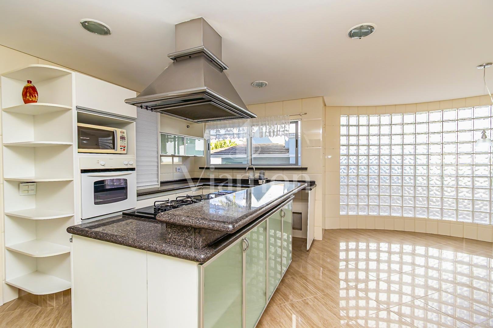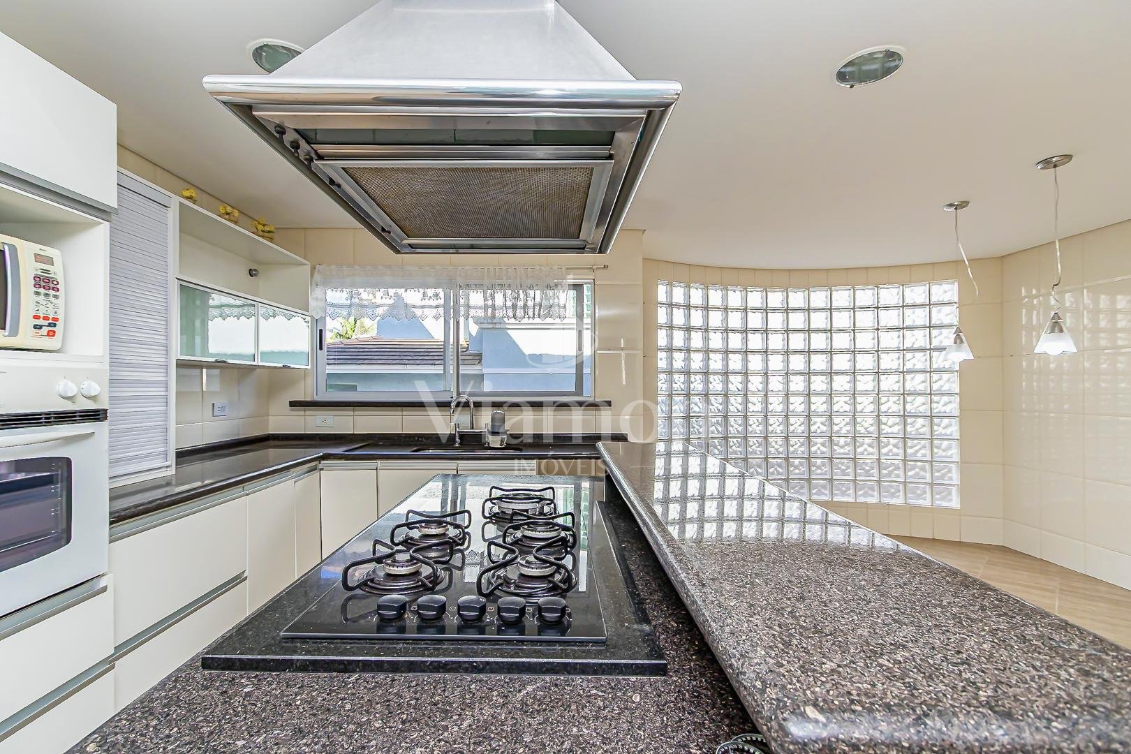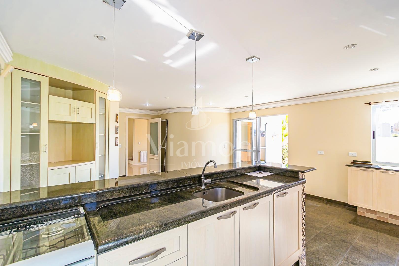 Cozinha ampla com espaço para copa iluminada e louceiro