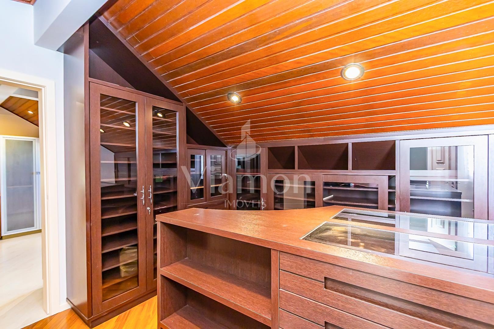 Escritório mobiliado com madeira de lei