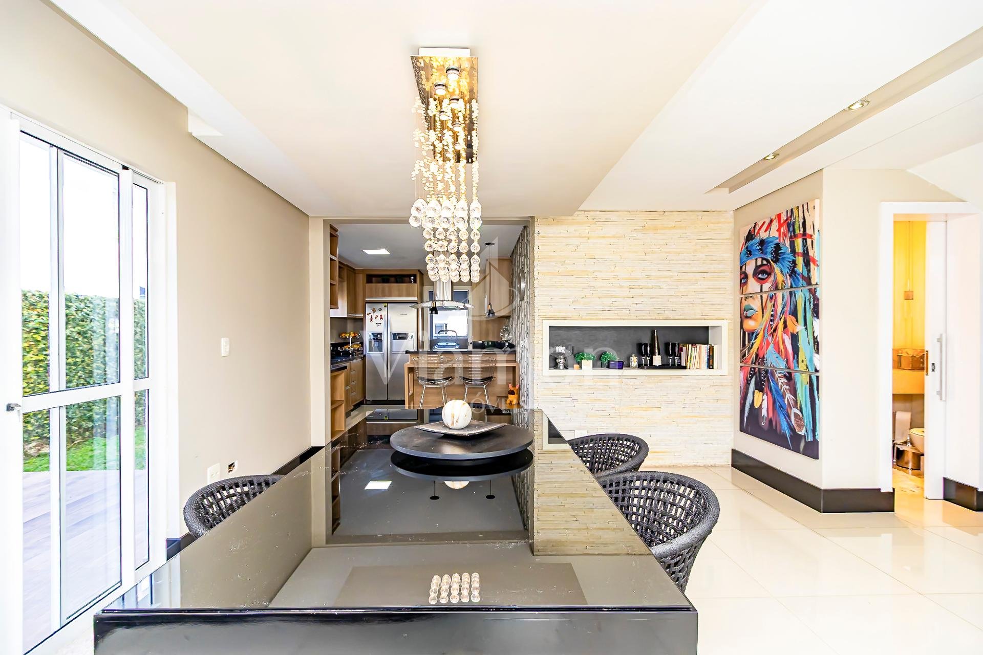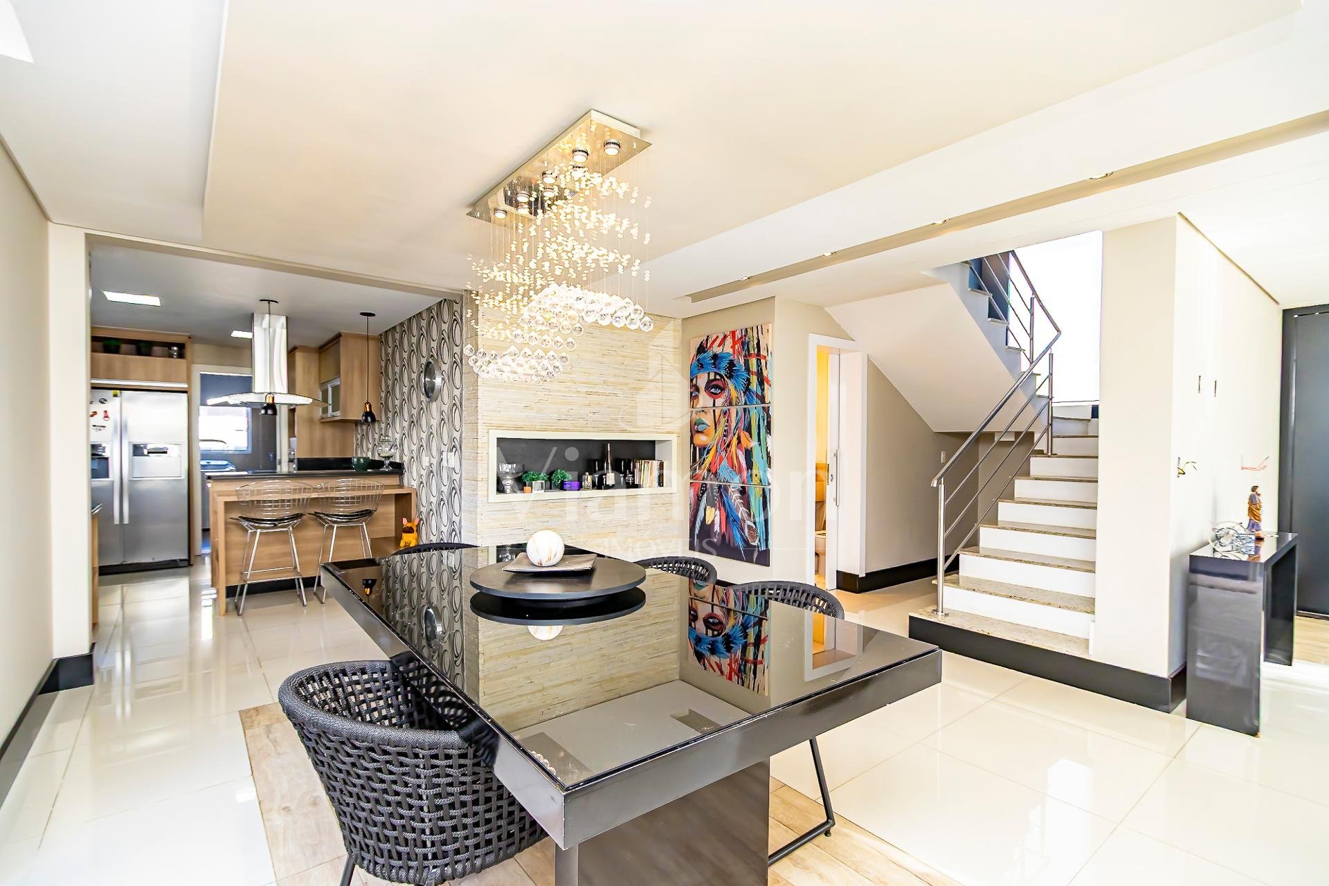 Amplitude: Pé direito alto (ou duplo) e ambientes totalmente integrados.