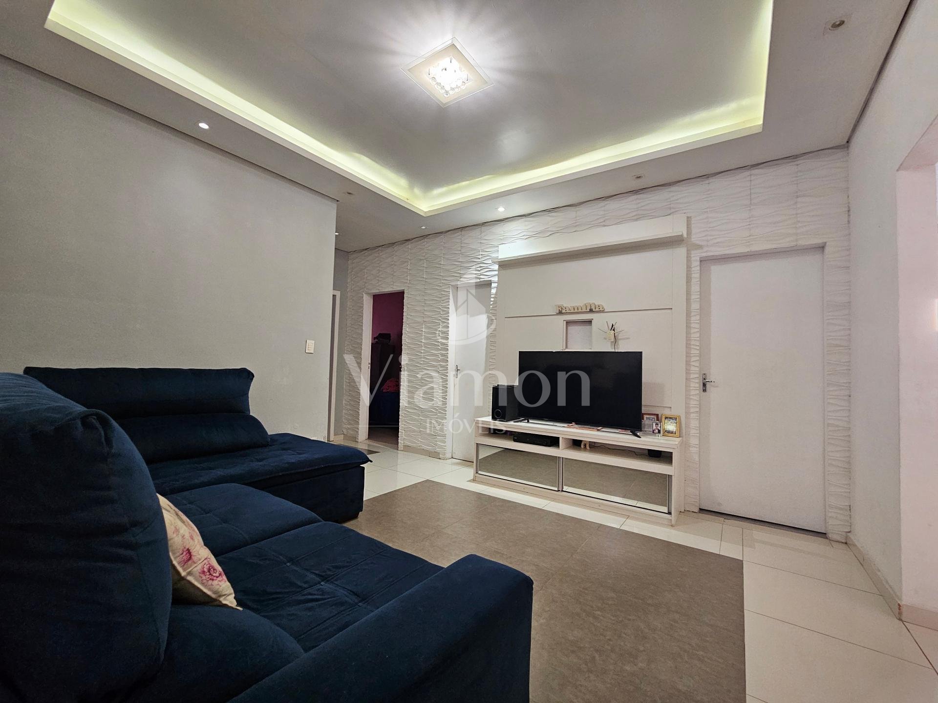 Sala ampla com teto rebaixado em gesso