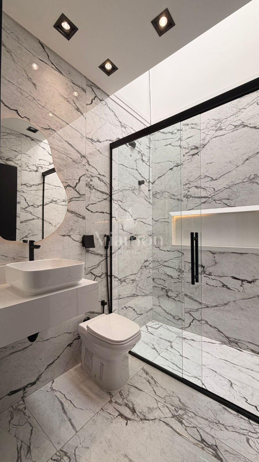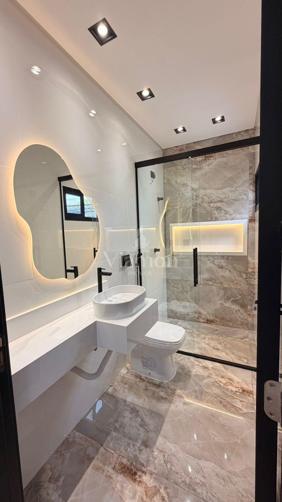Cada banheiro foi cuidadosamente pensado, com pia esculpida em porcelanato, nichos iluminados e acabamentos que elevam o padrão do imóvel.