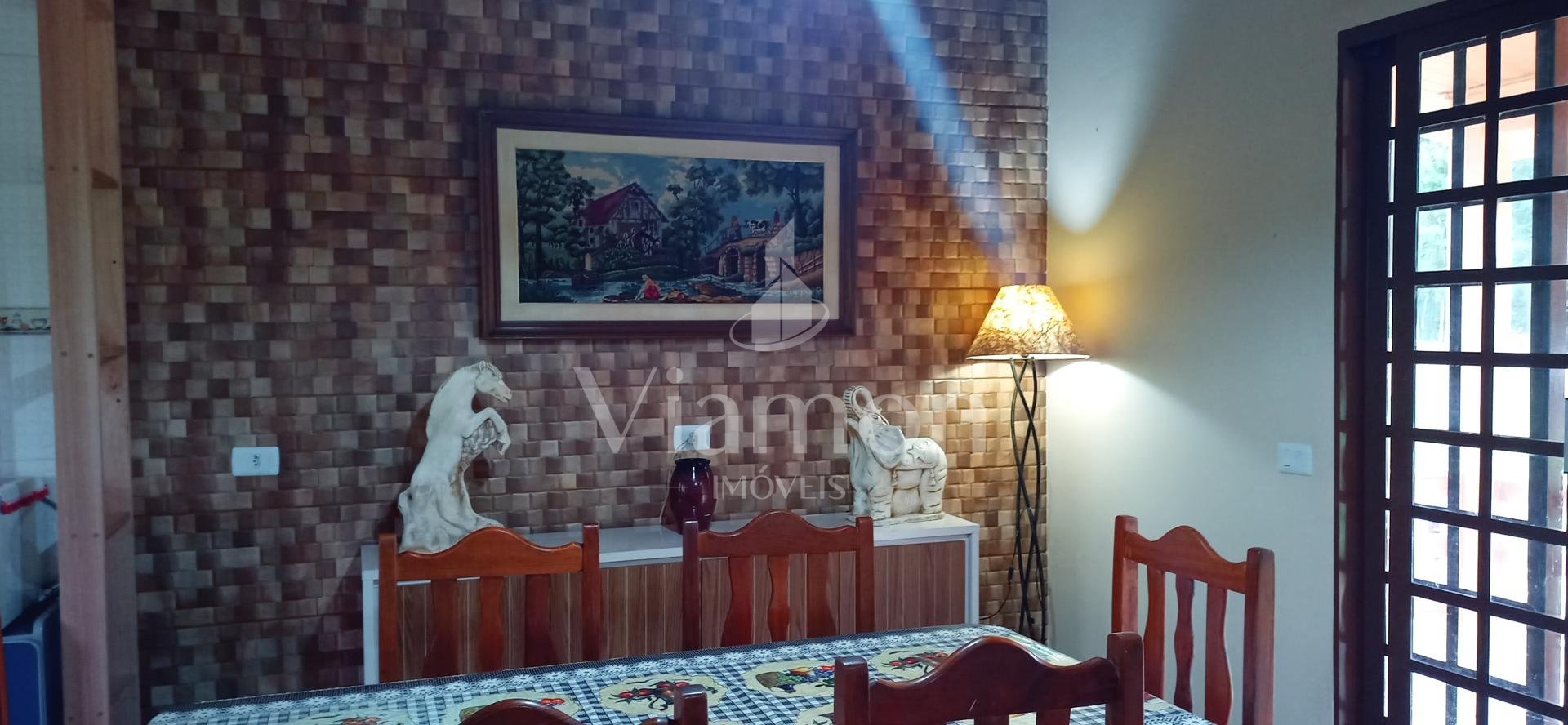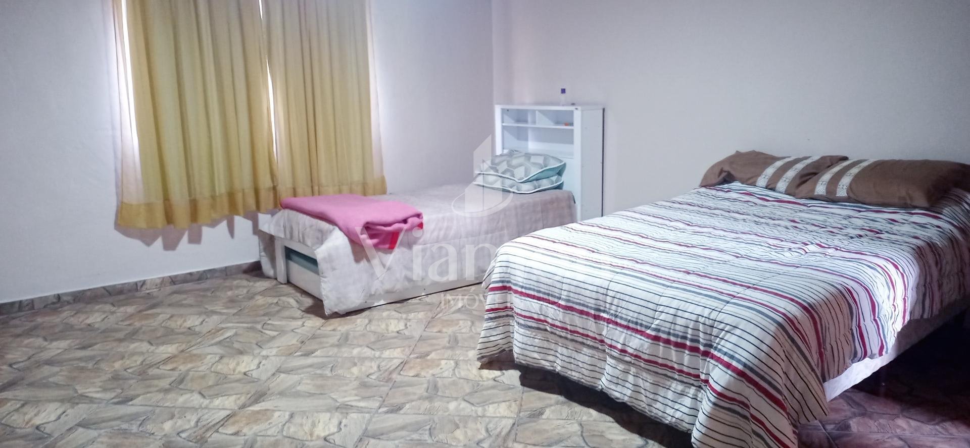 Casa principal: 115m², 2 quartos (sendo 1 suíte), sala, cozinha, banheiro social, varanda, garagem coberta para 2 carros e área de serviço.