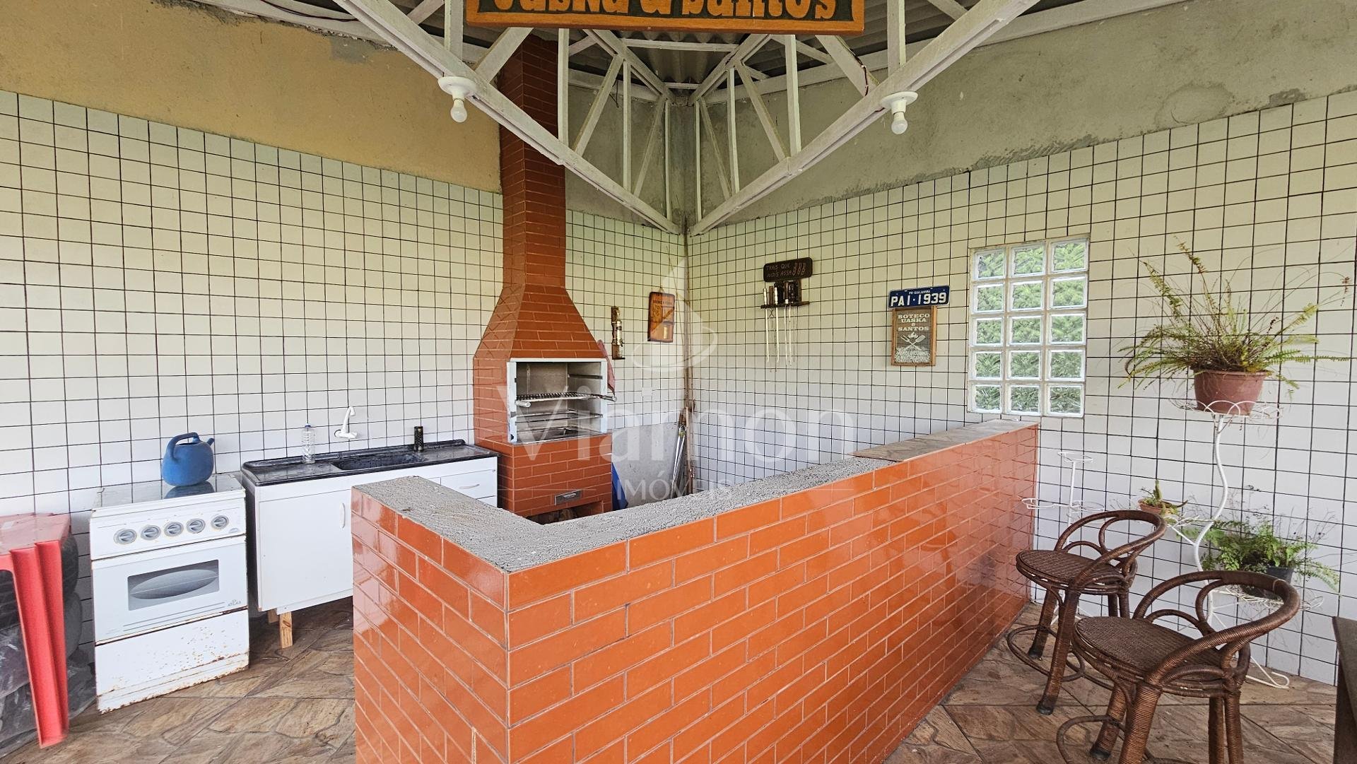 Quiosque: 49m², com churrasqueira e banheiro anexo.