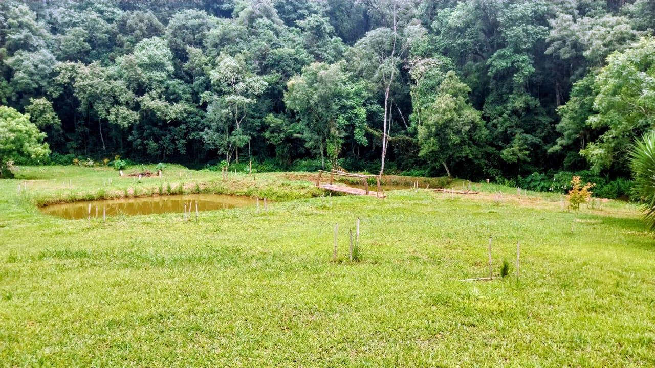 São 20.000m² de terreno, com grande parte limpa e uma reserva de mata natural contornada por um córrego que percorre grande extensão da propriedade, trazendo ar puro e frescor. Ainda conta com um tanque para peixes e área com nascente para formação de novos tanques.