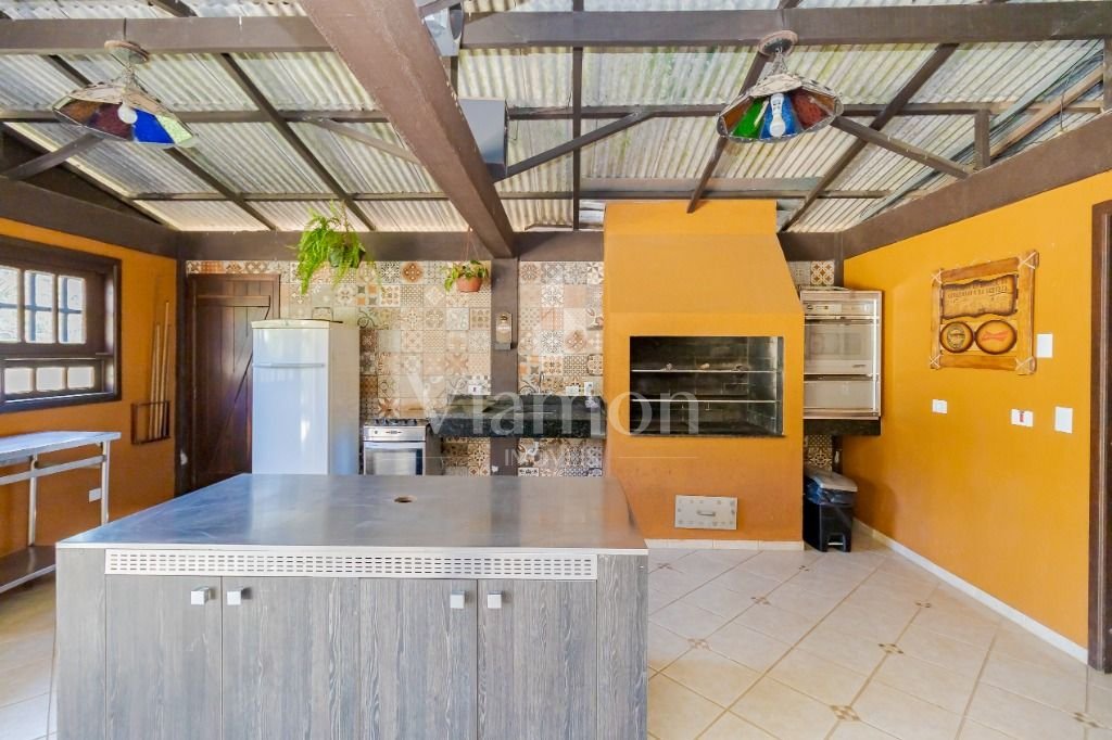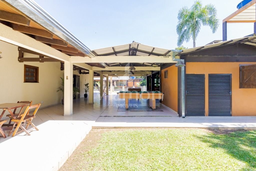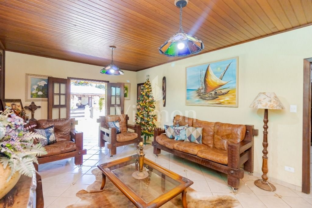 Com 480m², contendo sala ampla, cozinha, 4 banheiros, 4 quartos (sendo 1 suíte). 1 churrasqueira com área de serviço. Portas externas duplas e postas internas em madeira imbuia, coberturas da varanda com madeira itauba.