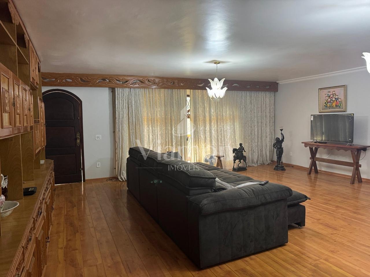 3 dormitórios amplos, sendo 1 suíte espaçosa com armários em madeira maciça estilo colonial