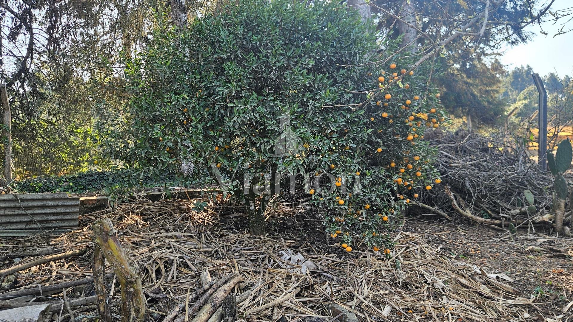Pomar produtivo com diversas frutas: uva, caqui, laranja, mexerica, limão, banana-maçã, pêssego, ameixa e muito mais.