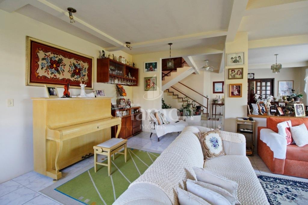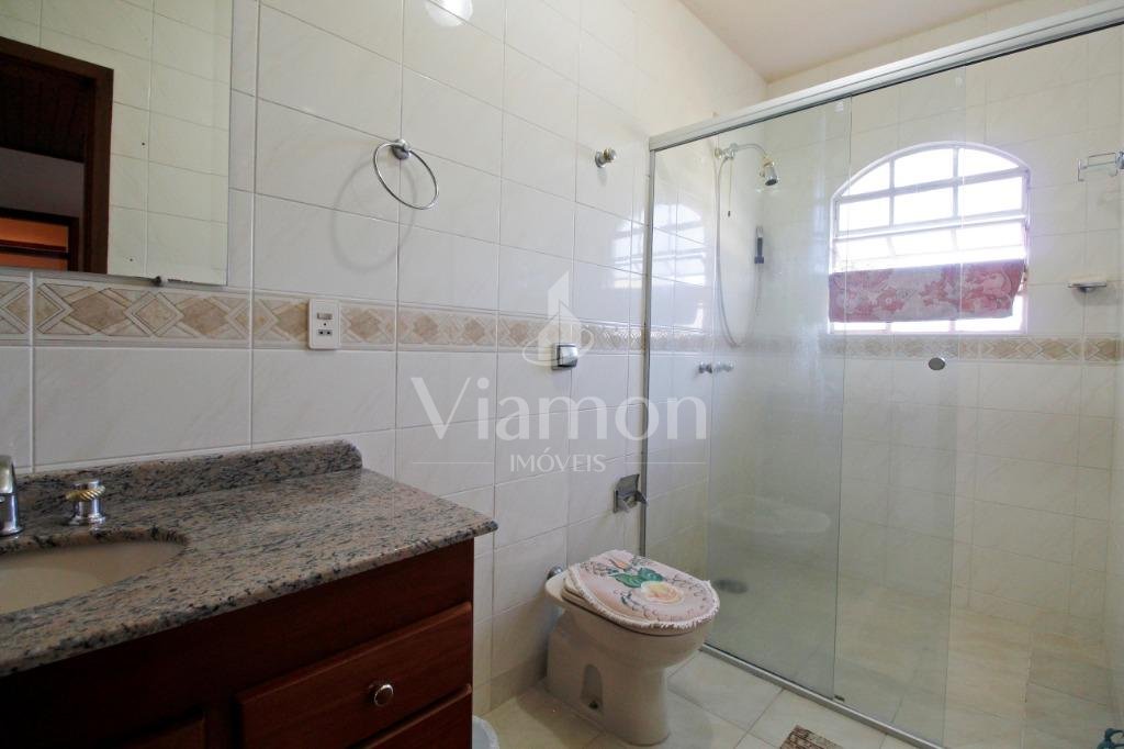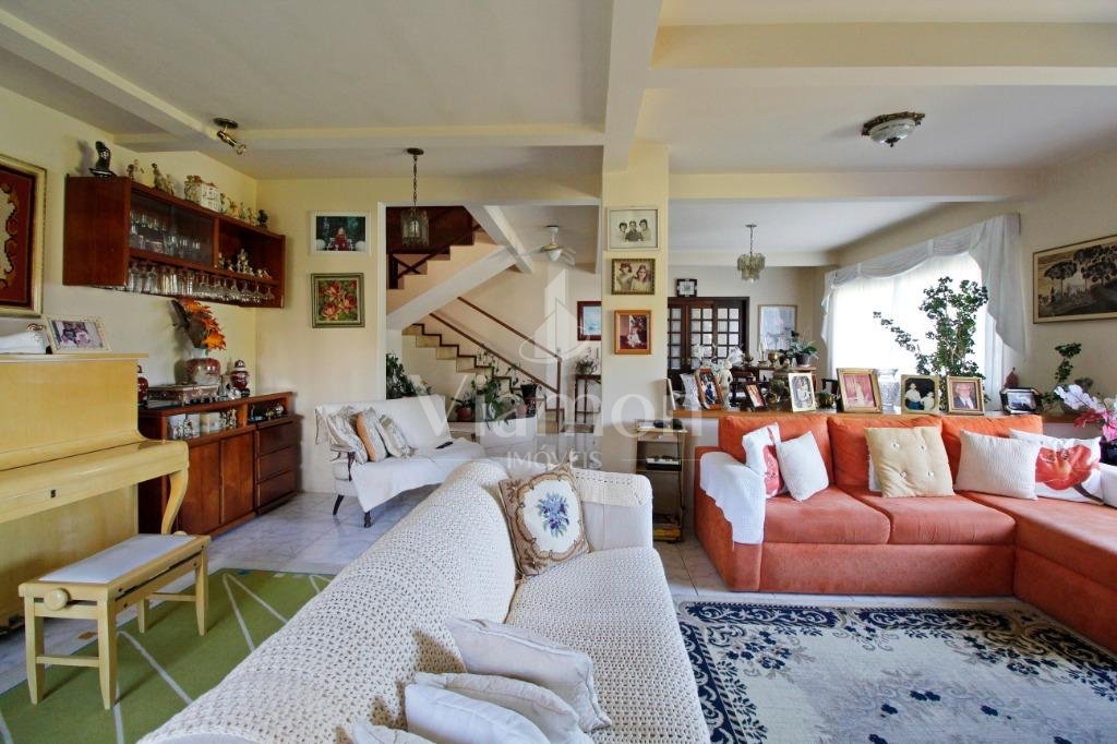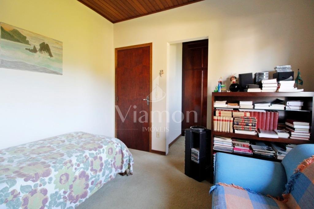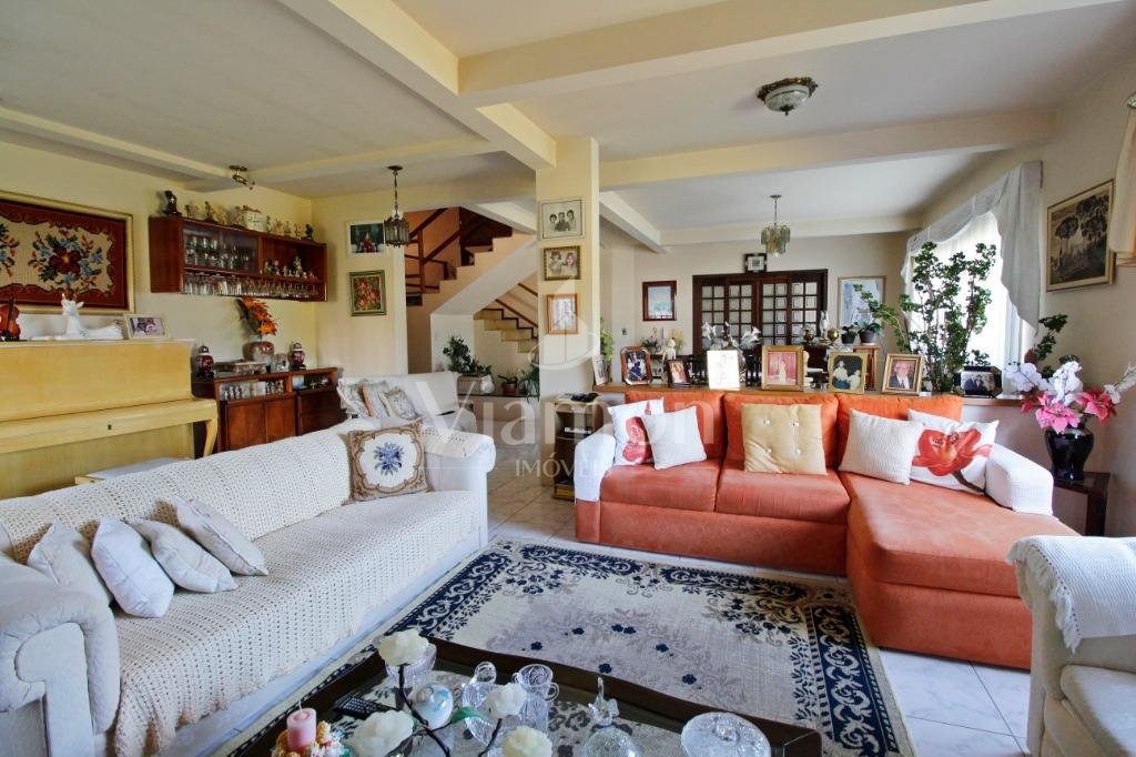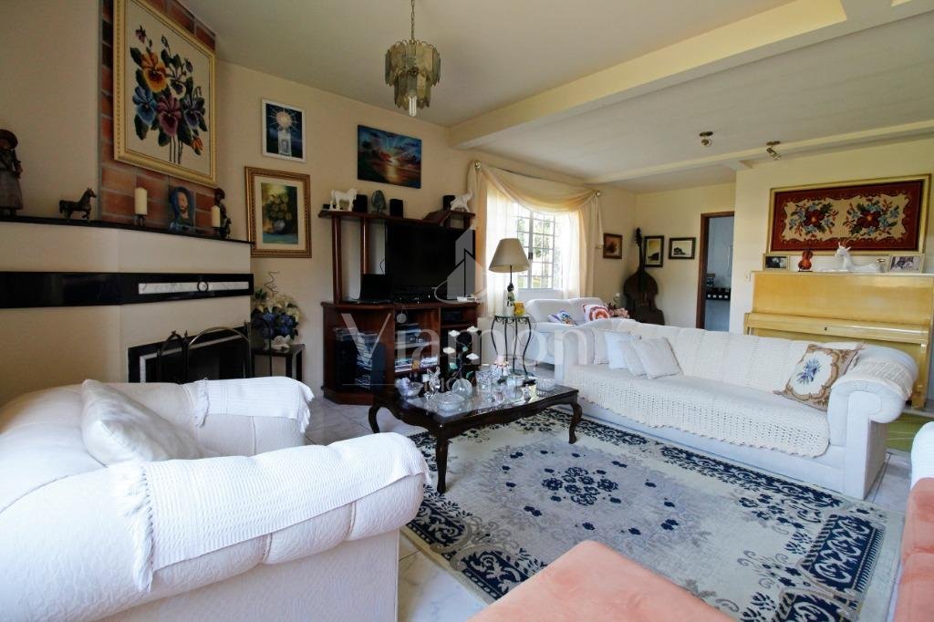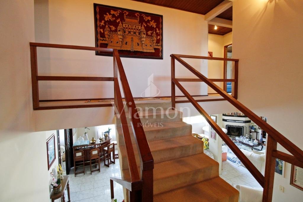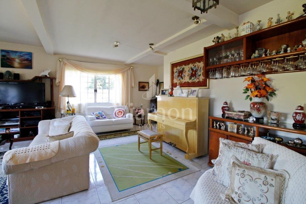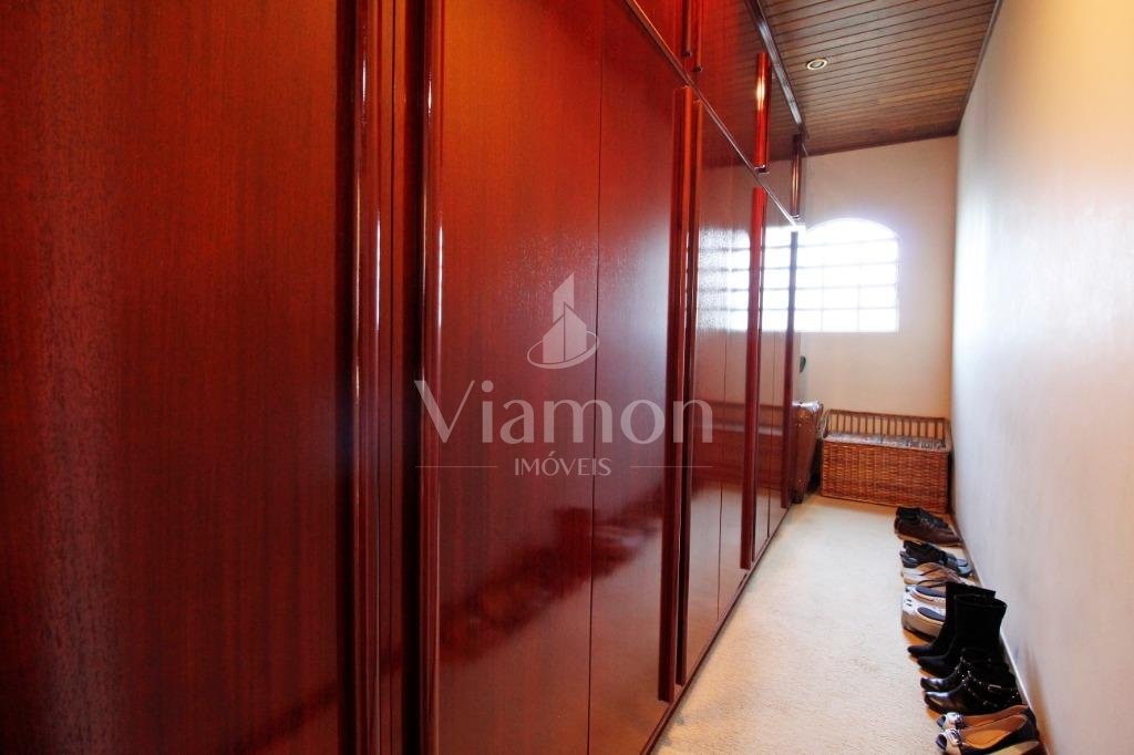 A casa tem aproximadamente 400 m2 e a construção tem 15 anos, sendo distribuída conforme segue.Piso térreo:- 1 Sala de jantar- 1 Sala de estar com lareira em granito- 1 sala de música- Hall de entrada- Escritório- Copa- Cozinha com armários embutidos- Despensa com armários- Lavabo com pia de granitoPiso superior:- 1 Suíte master com closet com armários embutidos,banheiro com box blindex,gabinete e banheira de hidromassagem - 1 Suíte com banheiro com box blindex e gabinete - 2 Quartos com closet com armários embutidos- Corredor com armário embutido- Banheiro social com gabinete e box blindexPiso inferior:- Lavanderia com aquecimento central a gás - Garagem- Quarto de emprega- Banheiro de empregadaTerreno:- 6000m2 todo murado, com portão de entrada eletrônico e interfone- Campo de futebol com iluminação- Mini quadra de basquete- Piscina 11X 4 X 1,5m , com iluminação interna e externaCanil- Bosque com árvores frutíferas e nativas de aprox.2000m2- Belo jardim frontal de aprox.1000m2- Poço com eletrificação para a casa- Porão para utensílios de jardim