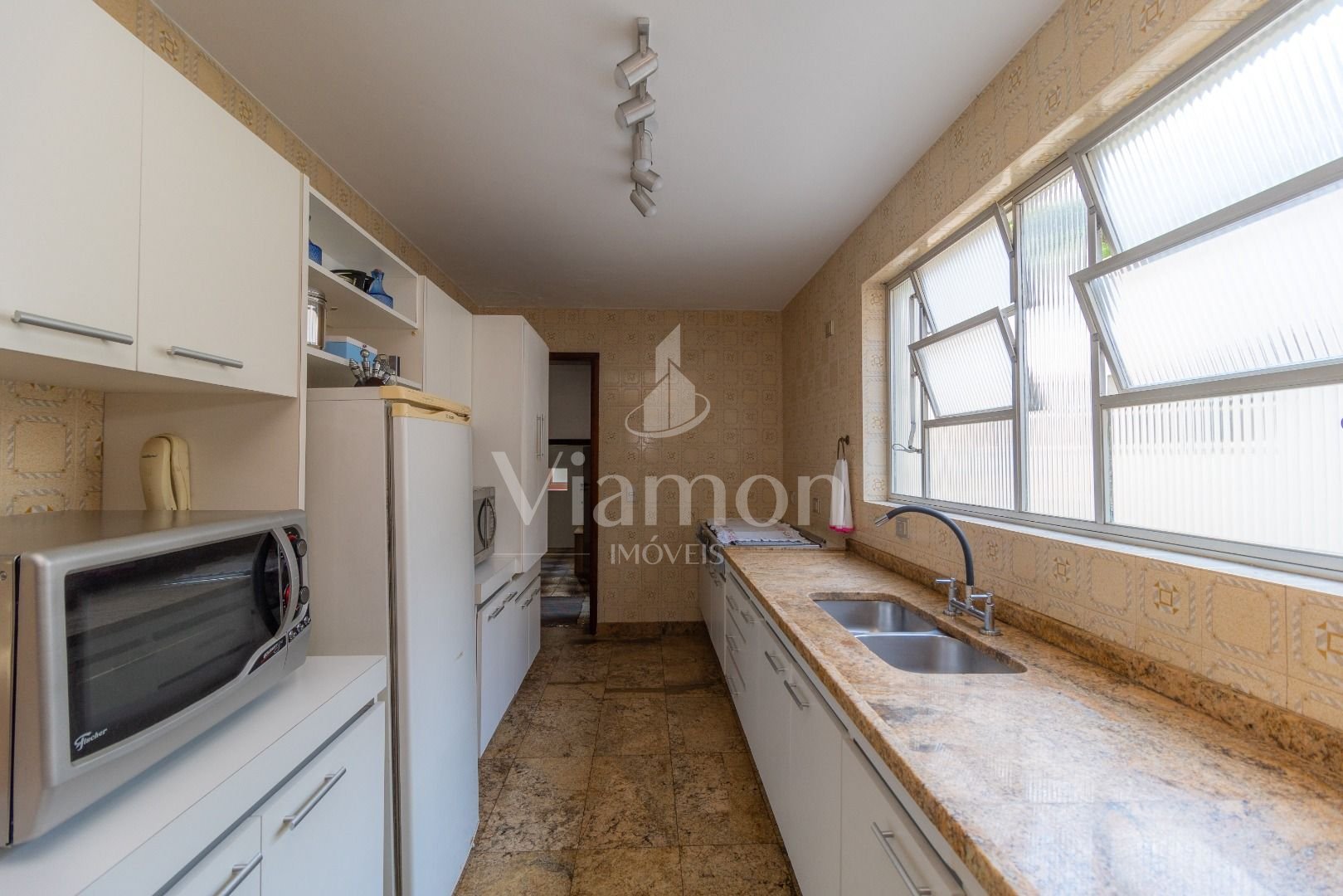 Cozinha ampla e lavanderia com ventilação cruzada e ótima iluminação natural.
